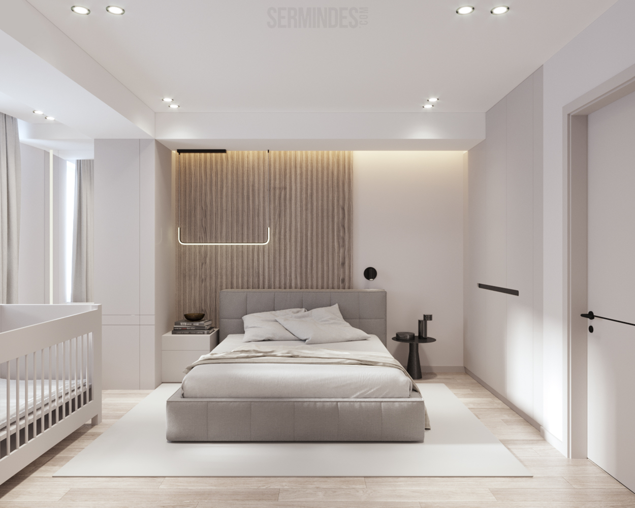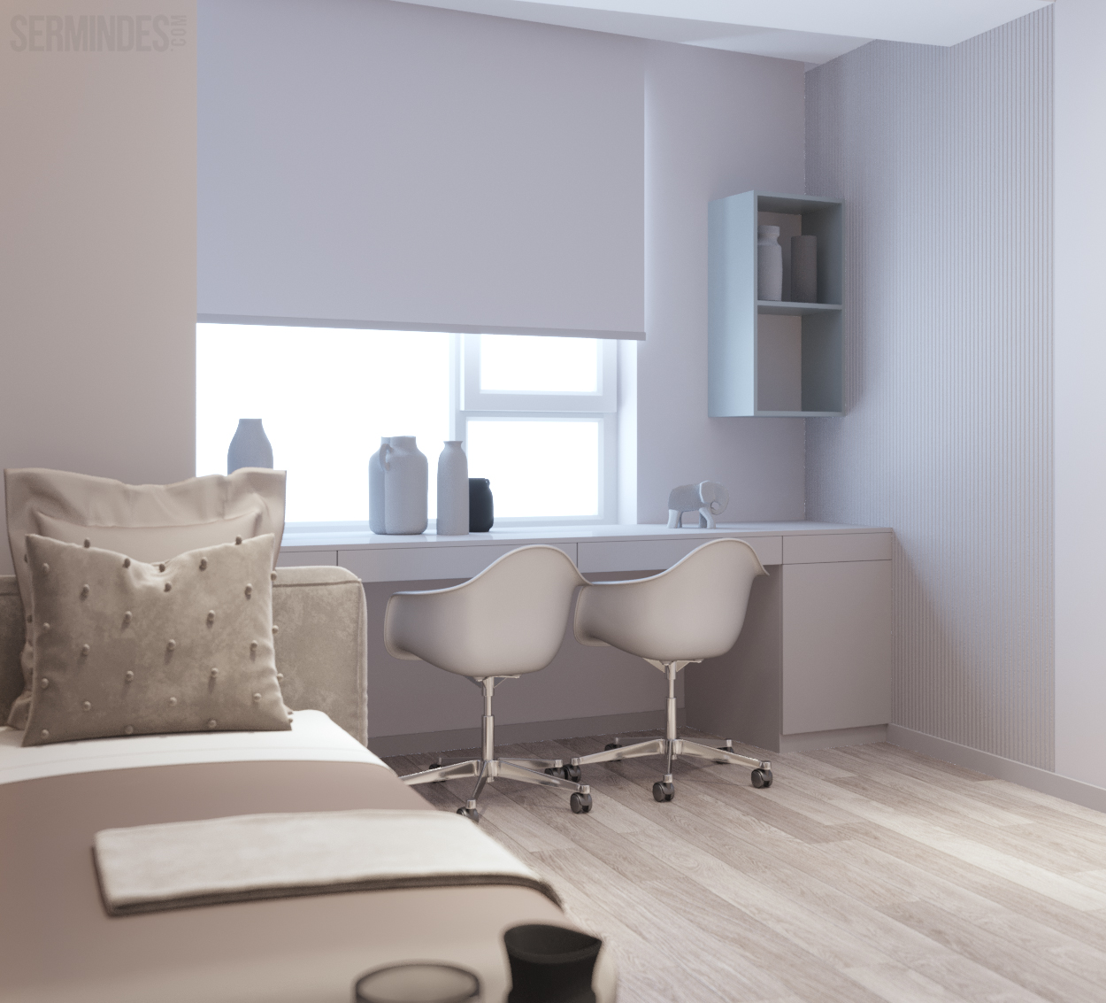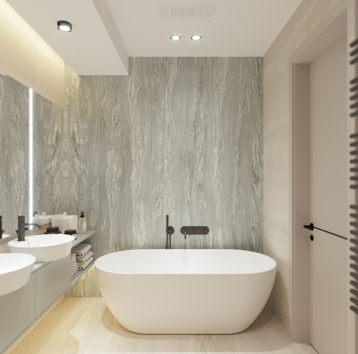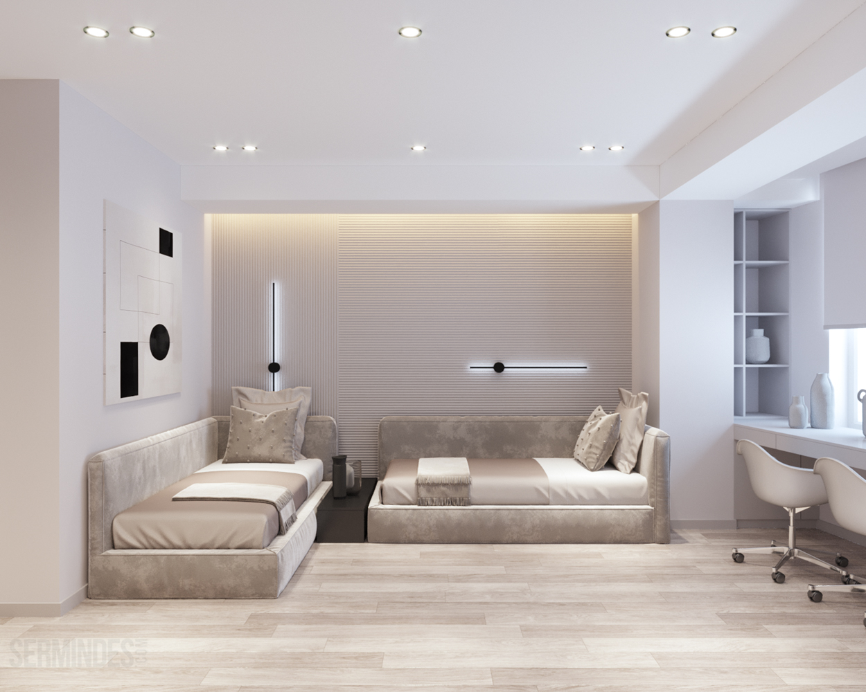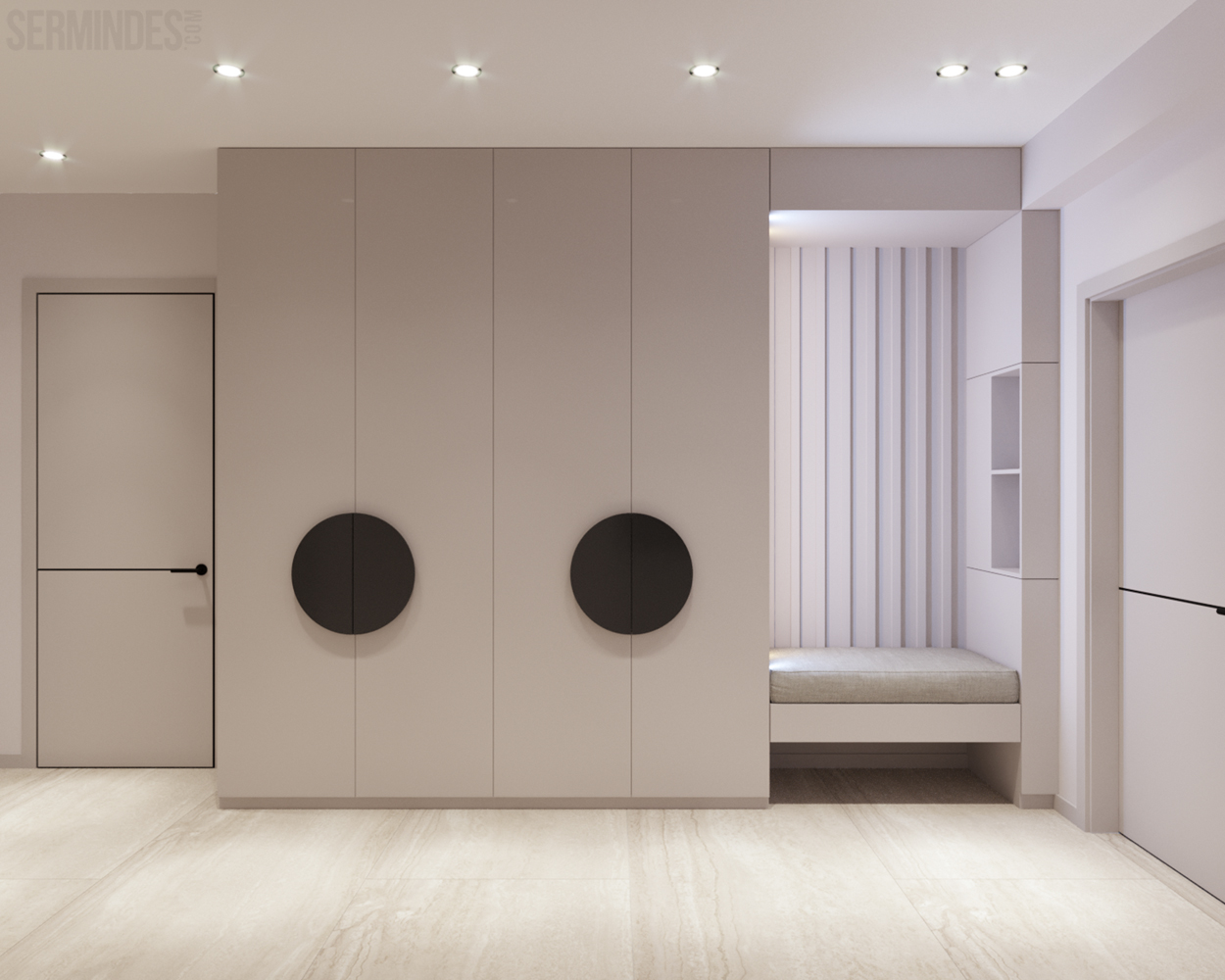 Interior design of an apartment, located in Chisinau, in the residential complex "OASIS". The apartment has an area of 100 square meters of floor space. The implementation of the project takes place in 2022. The contemporary-minimalist style was chosen. The color range in this project has the function of highlighting the travertine on the floor and supporting the open interior ambiance, but also a small contour-contrast is found in small areas with the function of accentuating and contouring.