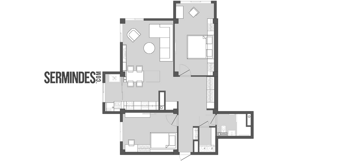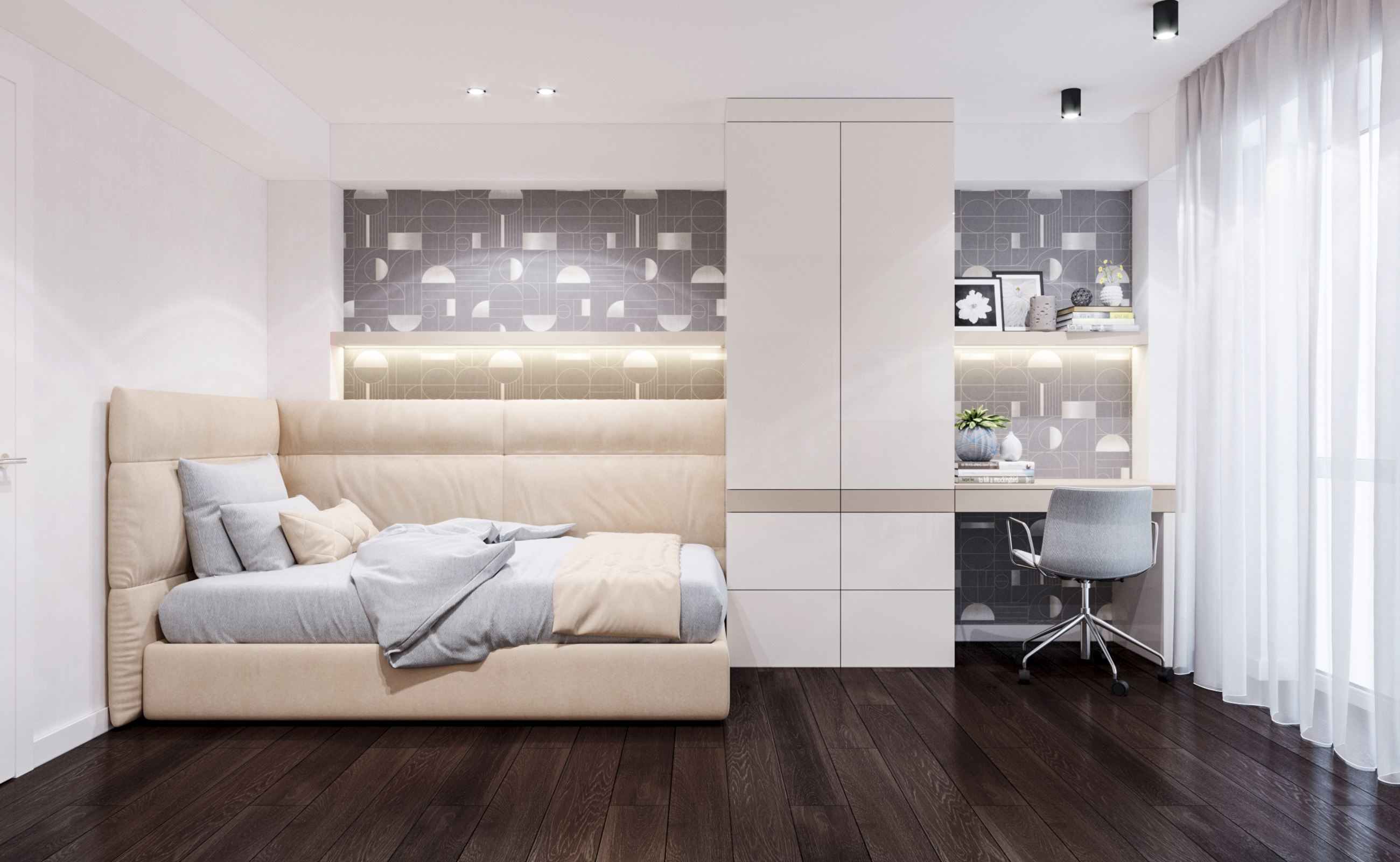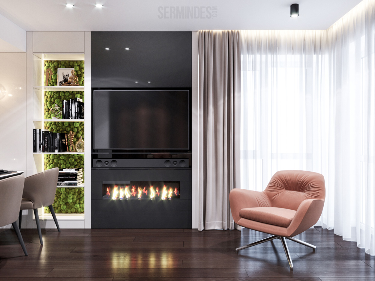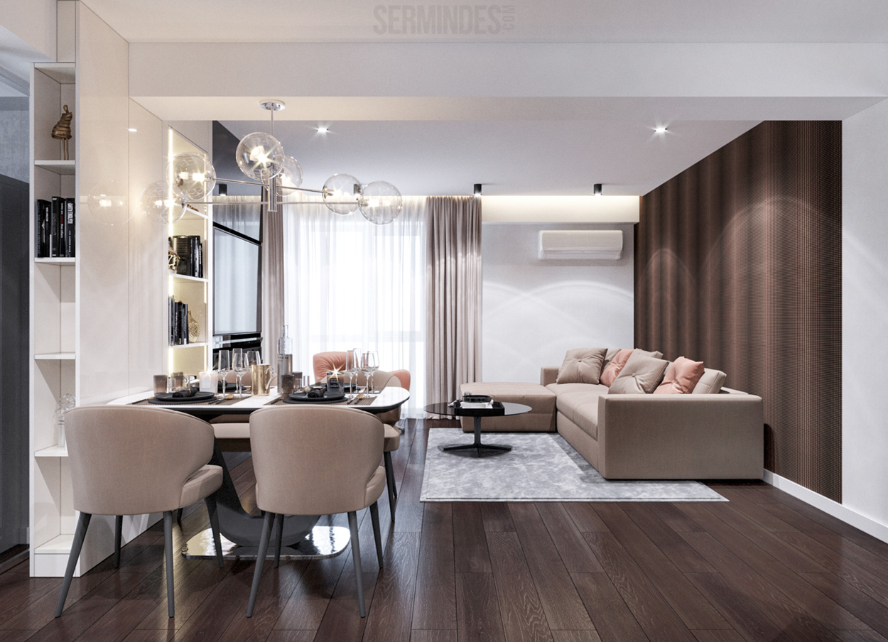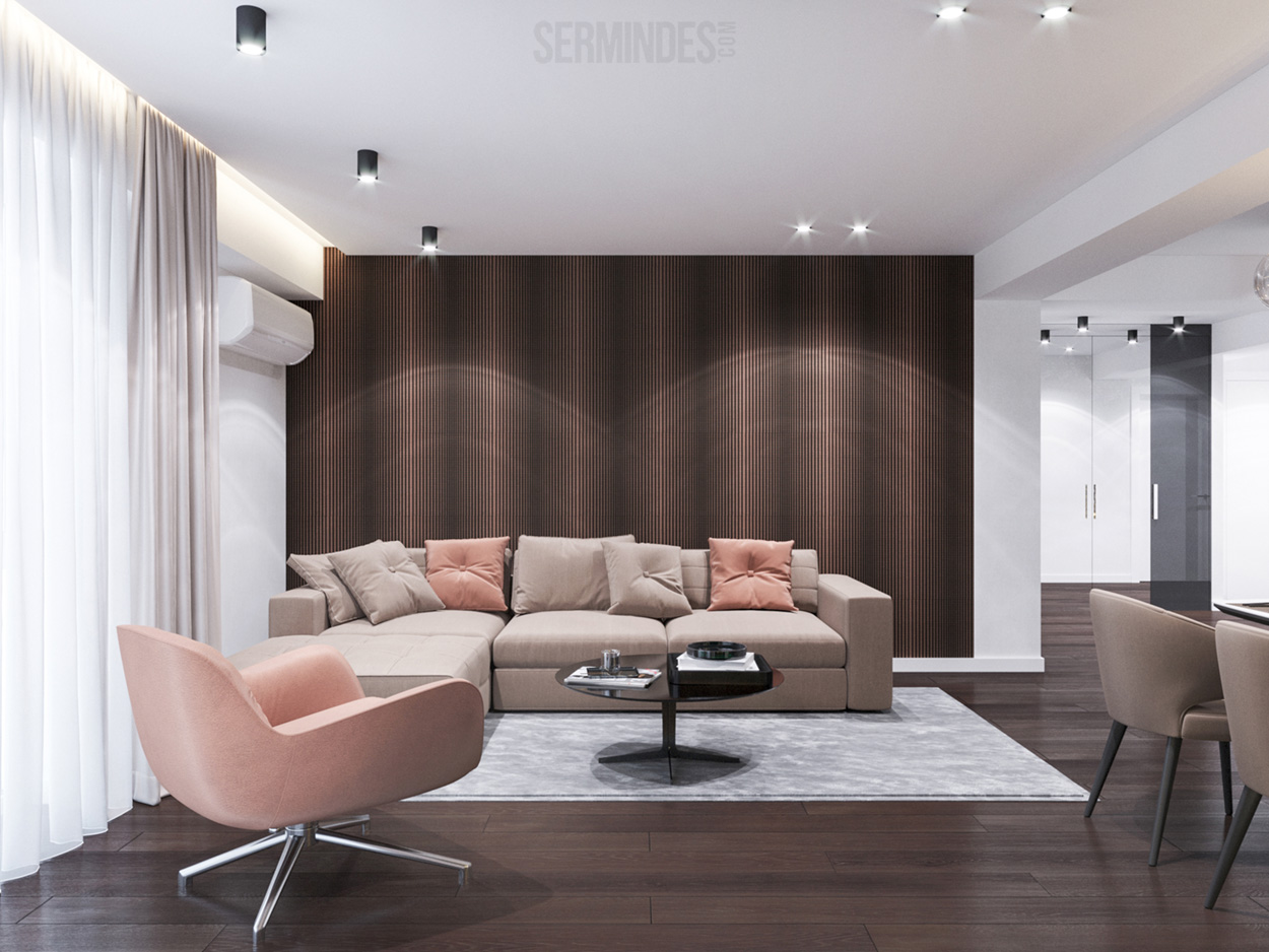 Apartment located in Chisinau, with an area of 89 m.p. Designed in a contemporary style, with a contrasting color effect. The project was developed in 2020.