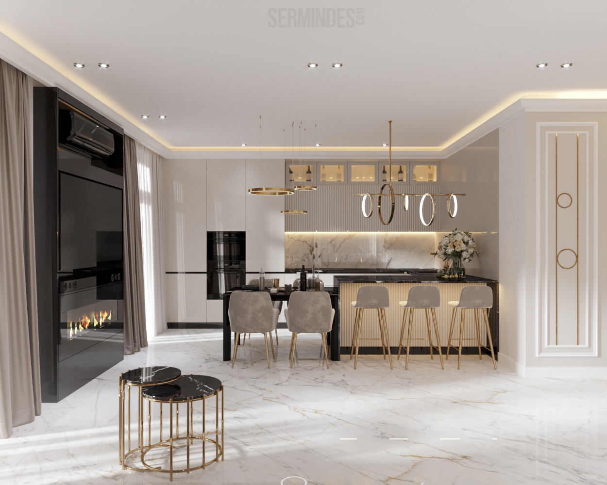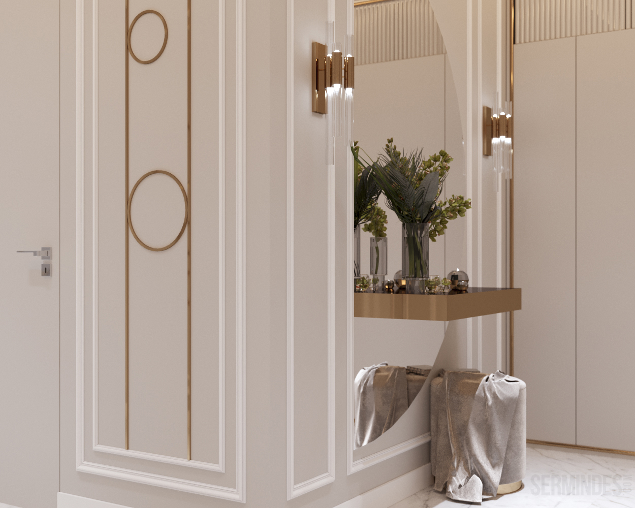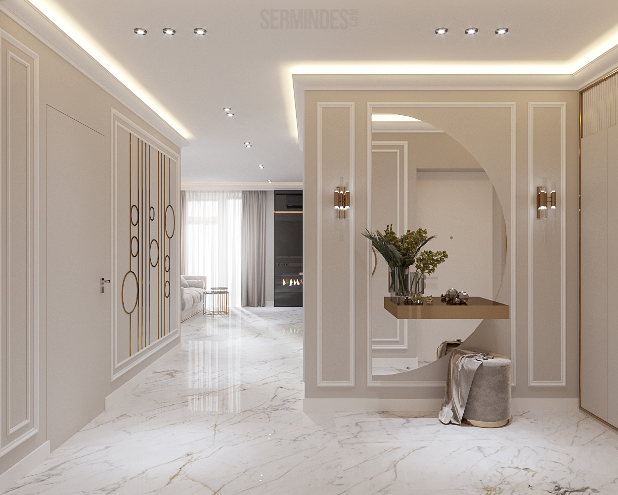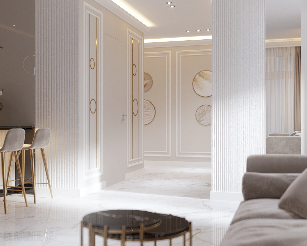 Interior design of an apartment, located in Chisinau, Republic of Moldova, in the residential complex "Clock tower". The apartment has an area of 64 square meters. The implementation of the project takes place in 2022. The neoclassical-contemporary style was chosen. The color range in this project is pastel, with a golden accent in places.