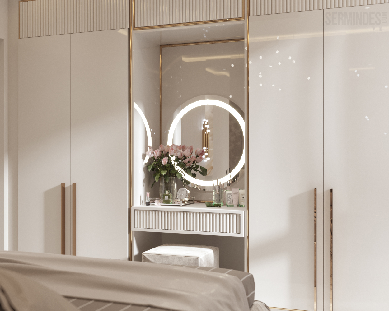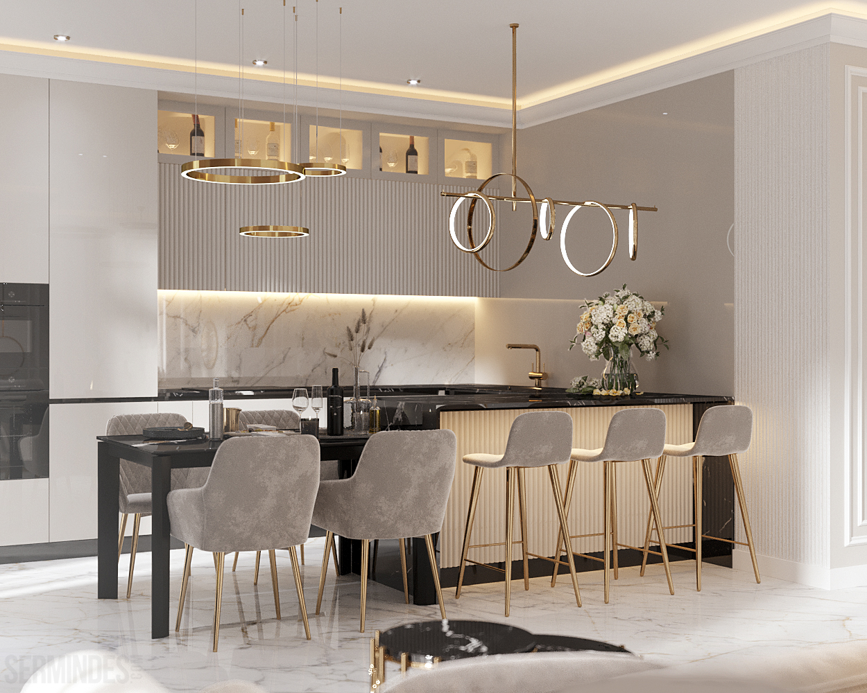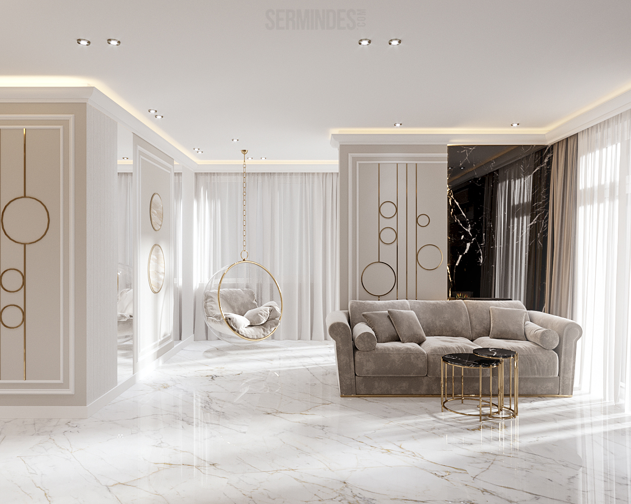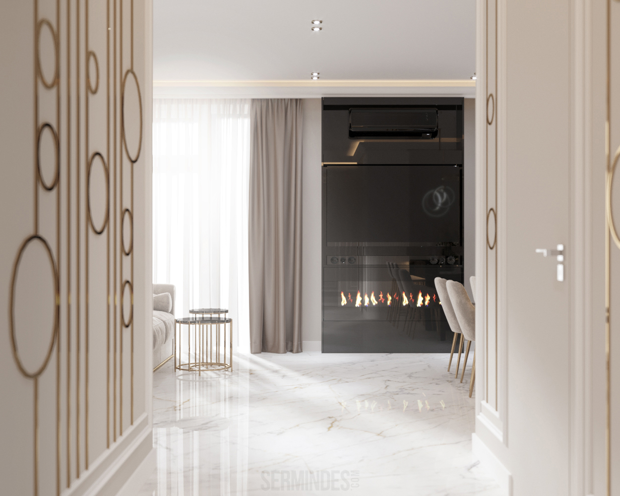 Interior design of an apartment, located in Chisinau, Republic of Moldova, in the residential complex "Clock tower". The apartment has an area of 64 square meters. The implementation of the project takes place in 2022. The neoclassical-contemporary style was chosen. The color range in this project is pastel, with a golden accent in places.