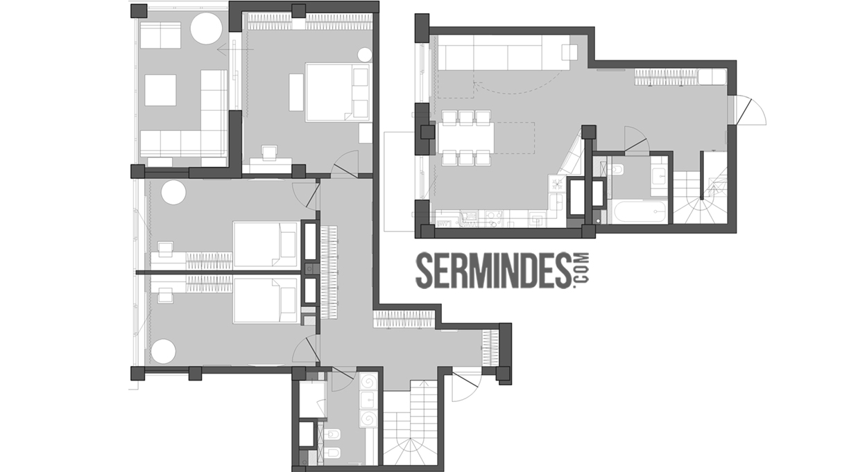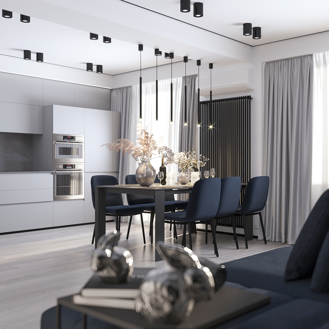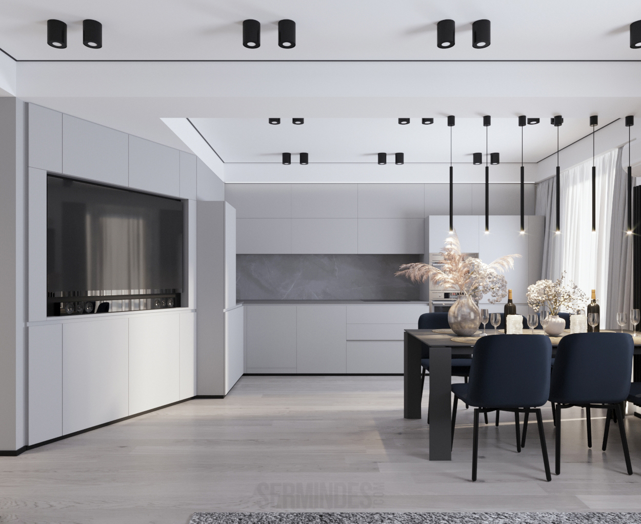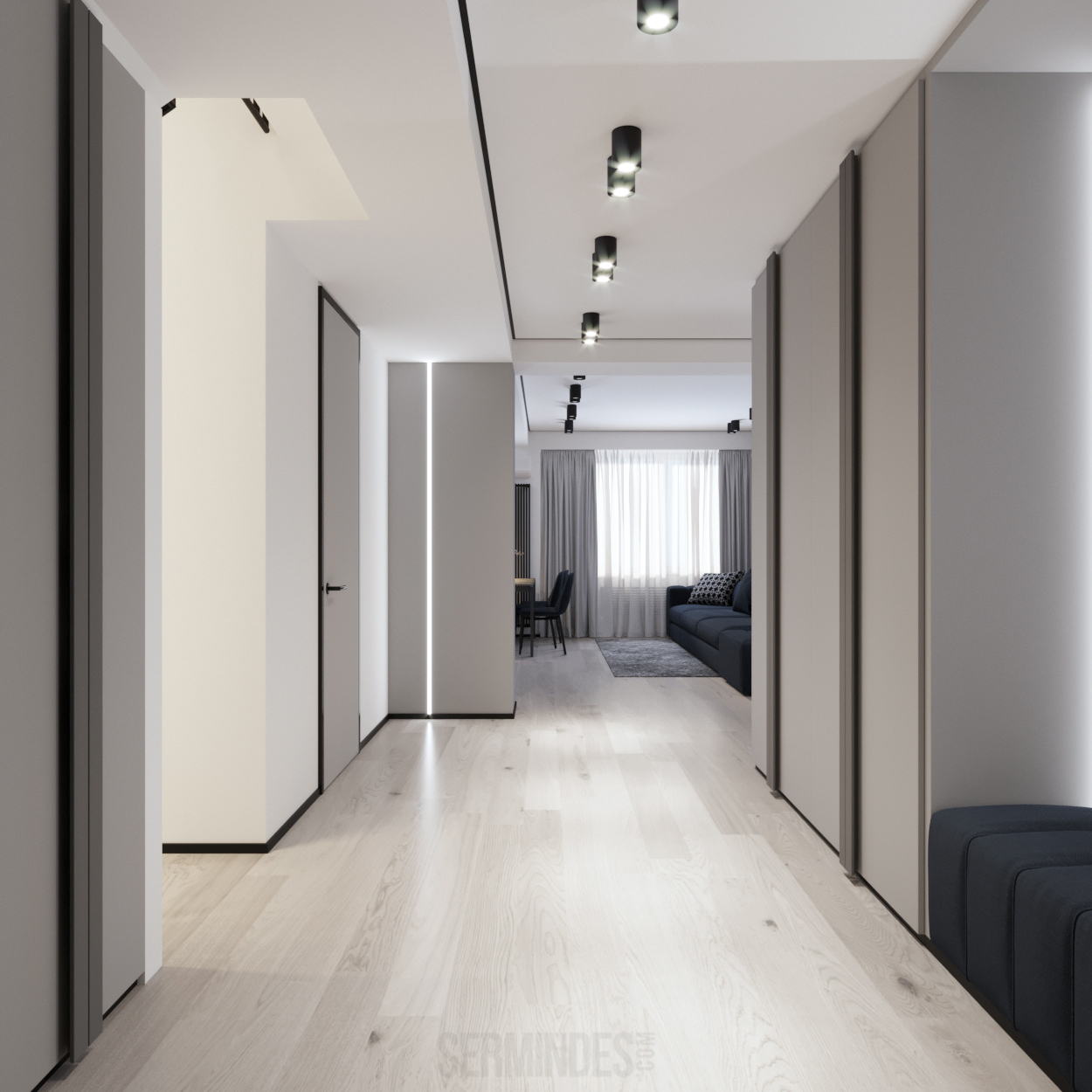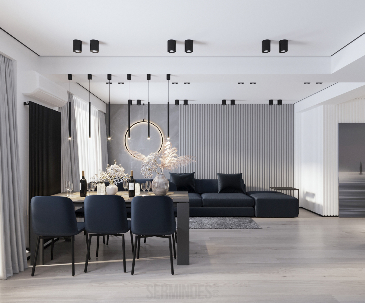 Interior design of a two-level apartment, with a total area of 115 sq.m., the penthouse is located in Chisinau, Botanica sector.