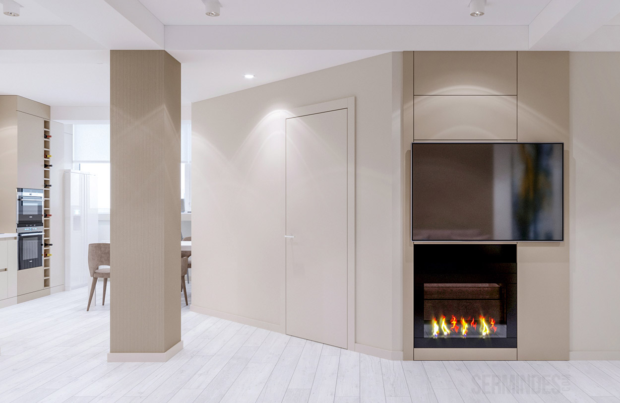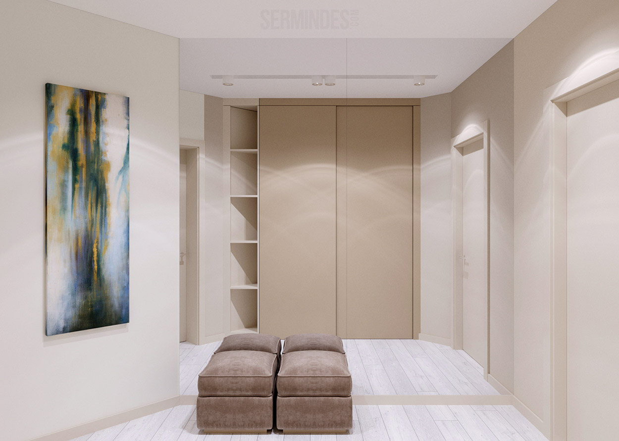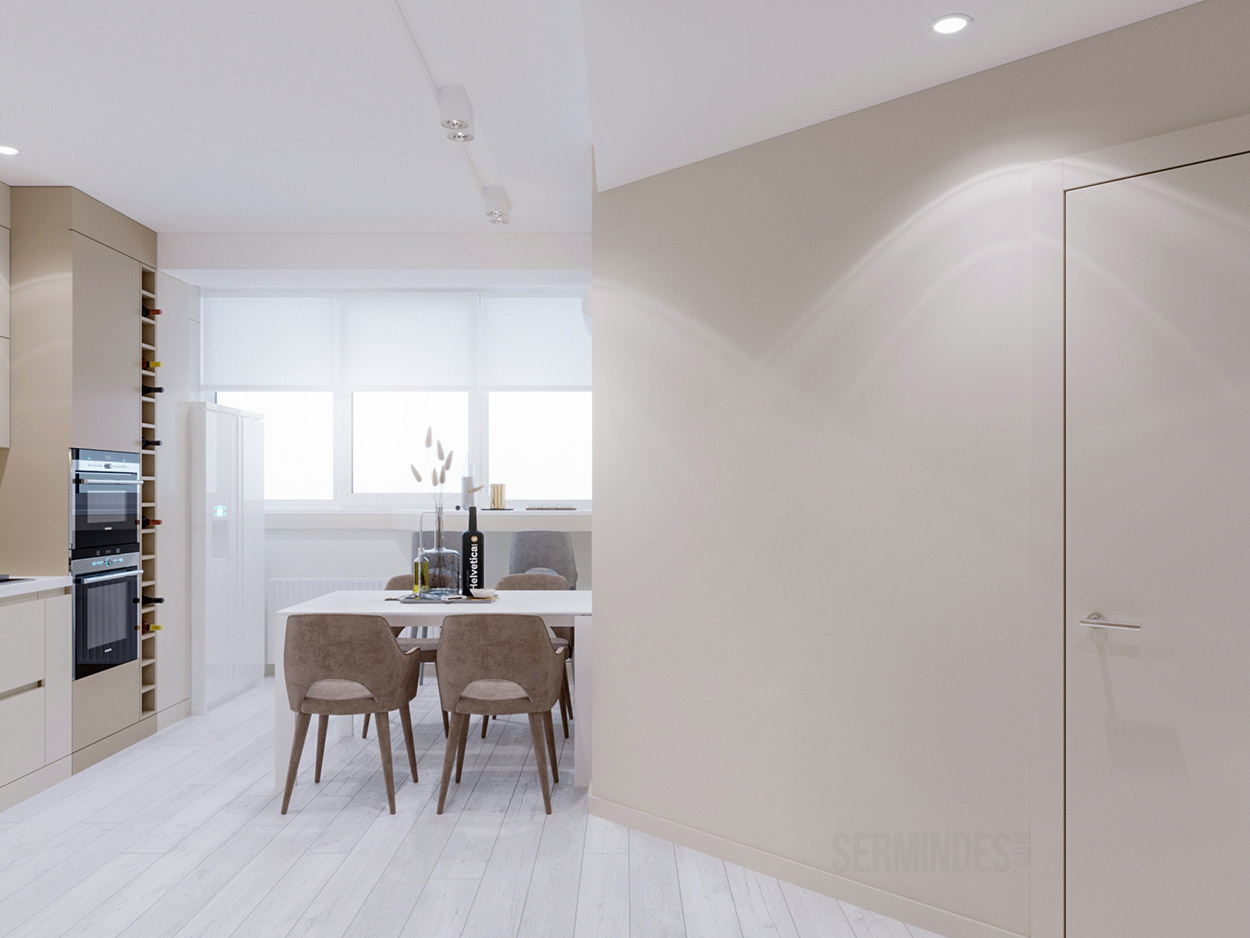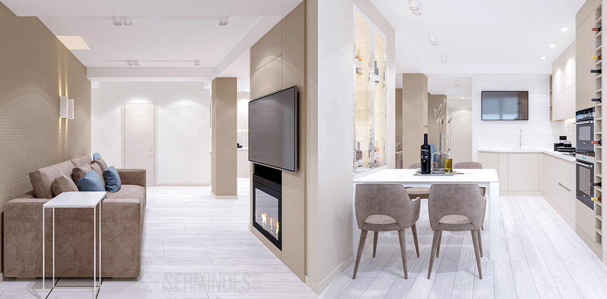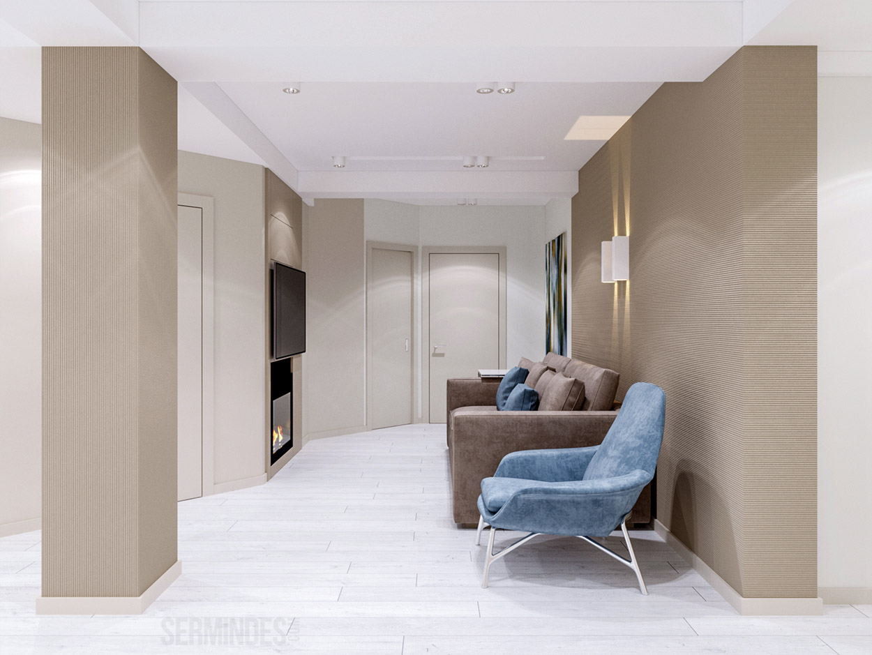 Interior design of a two-bedroom apartment. The layout is designed in a contemporary style. The total area is 82 square meters.