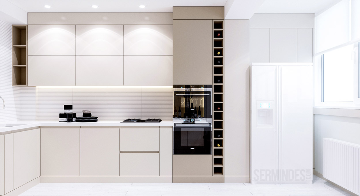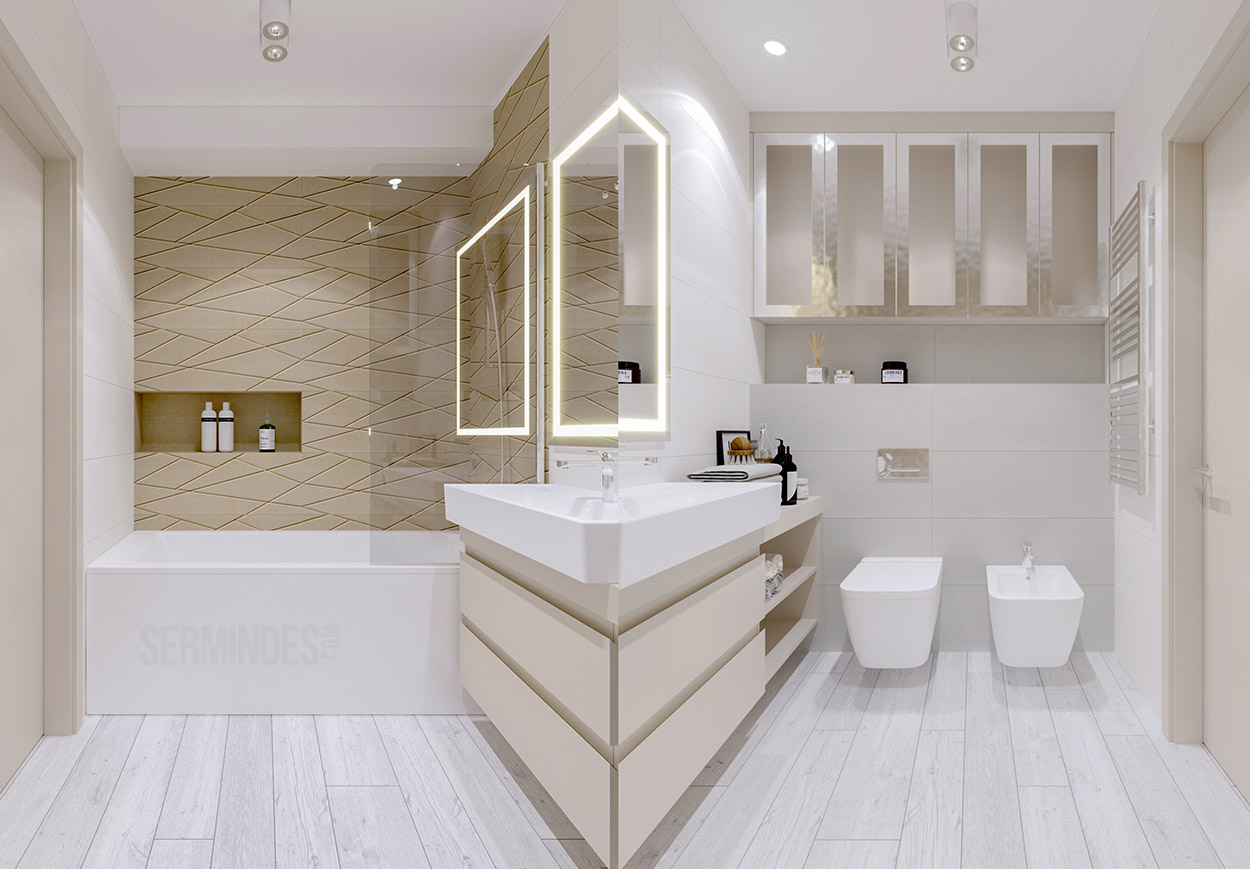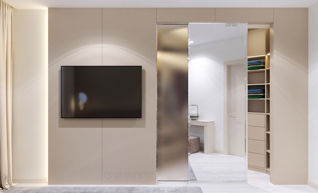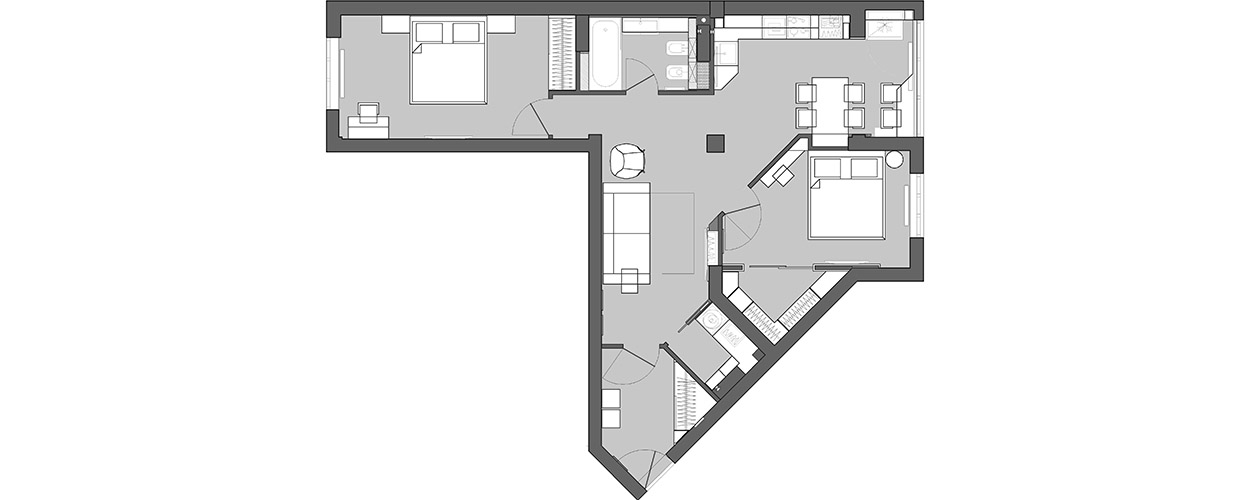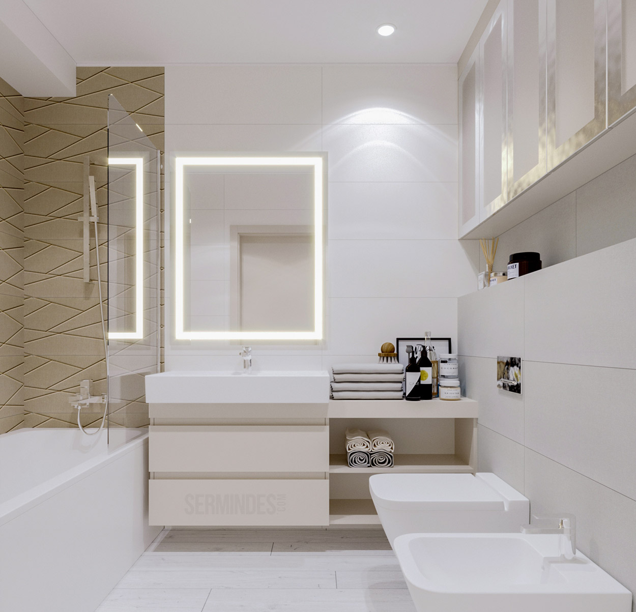 Interior design of a two-bedroom apartment. The layout is designed in a contemporary style. The total area is 82 square meters.