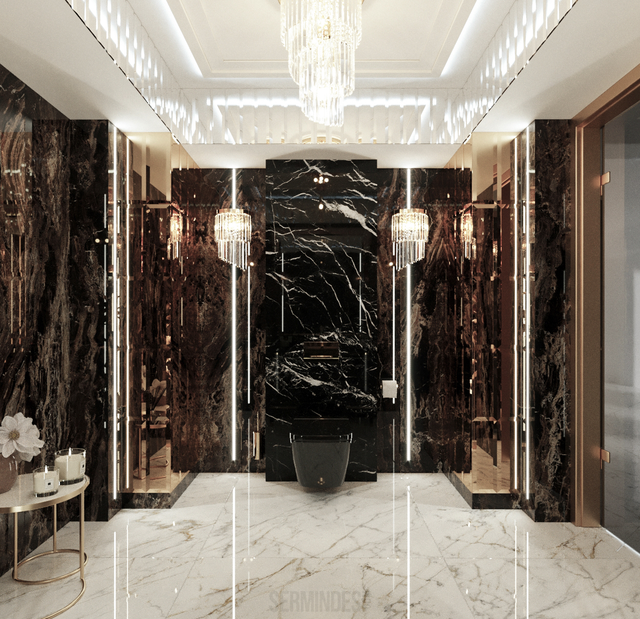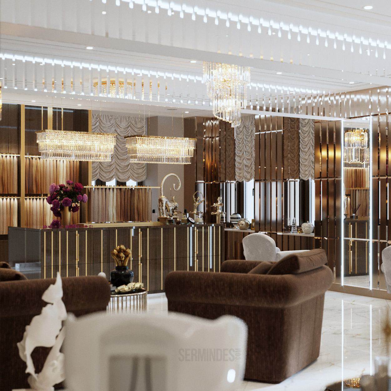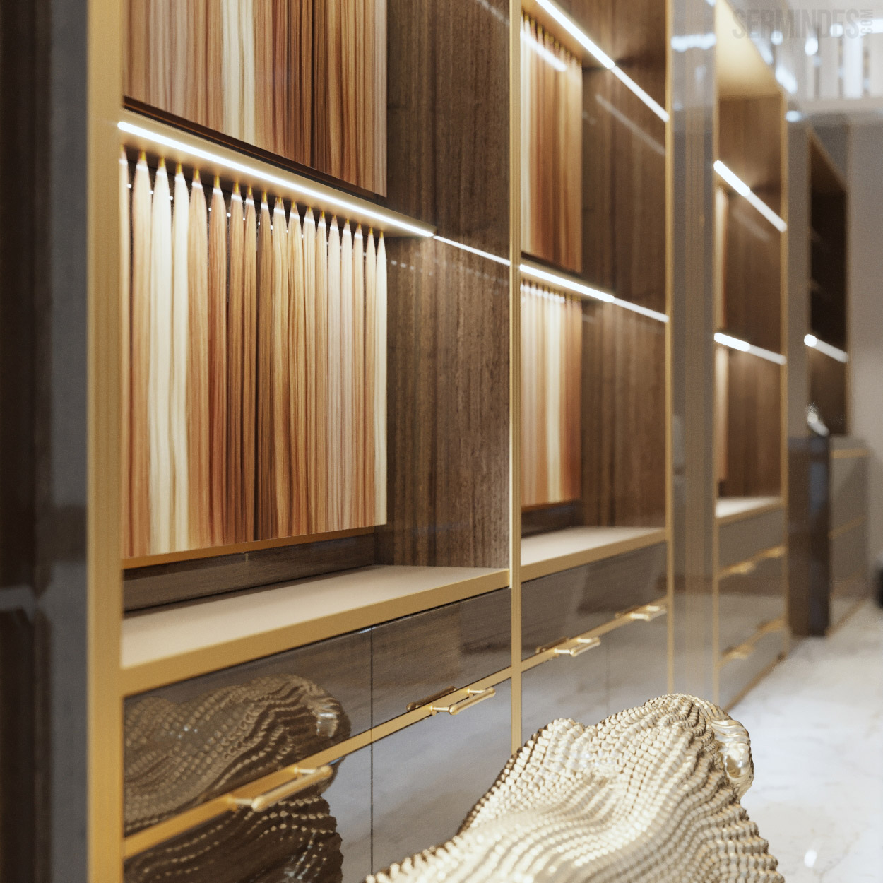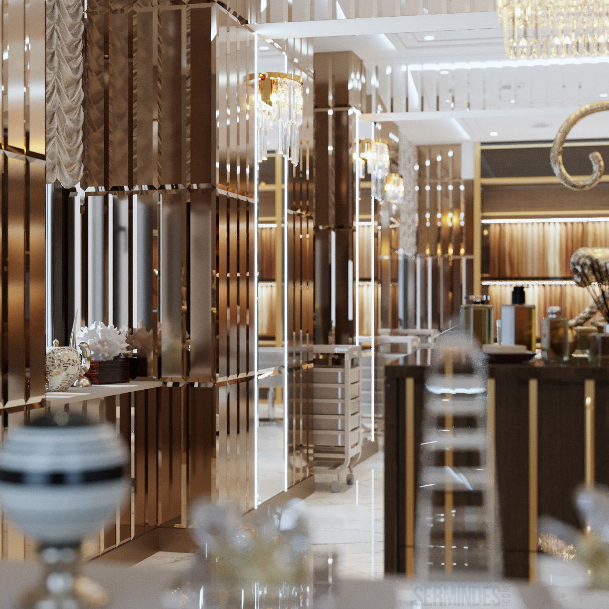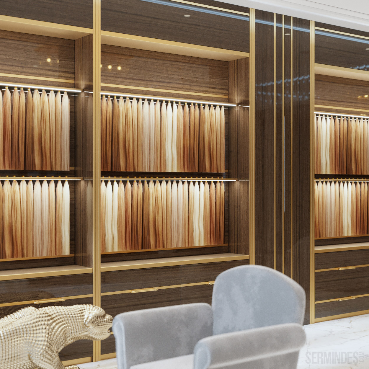 Interior design in Bucharest, of a beauty salon, with an area of 128 m.p. A contemporary style was chosen for the design of this salon, borrowing art-deco influences. HAIR TOUCH salon offers beauty services, hairdresser, sale of band extensions.
