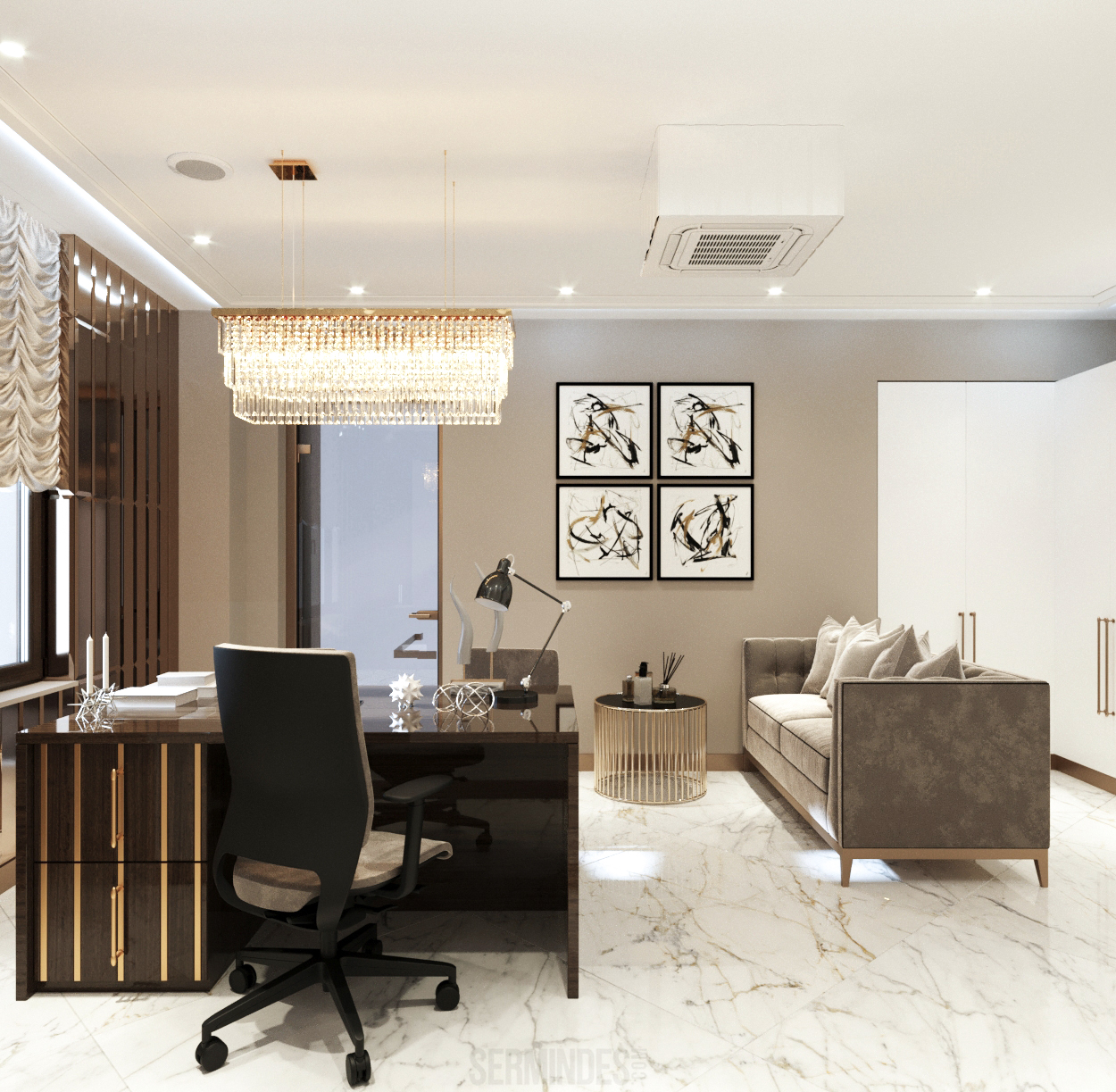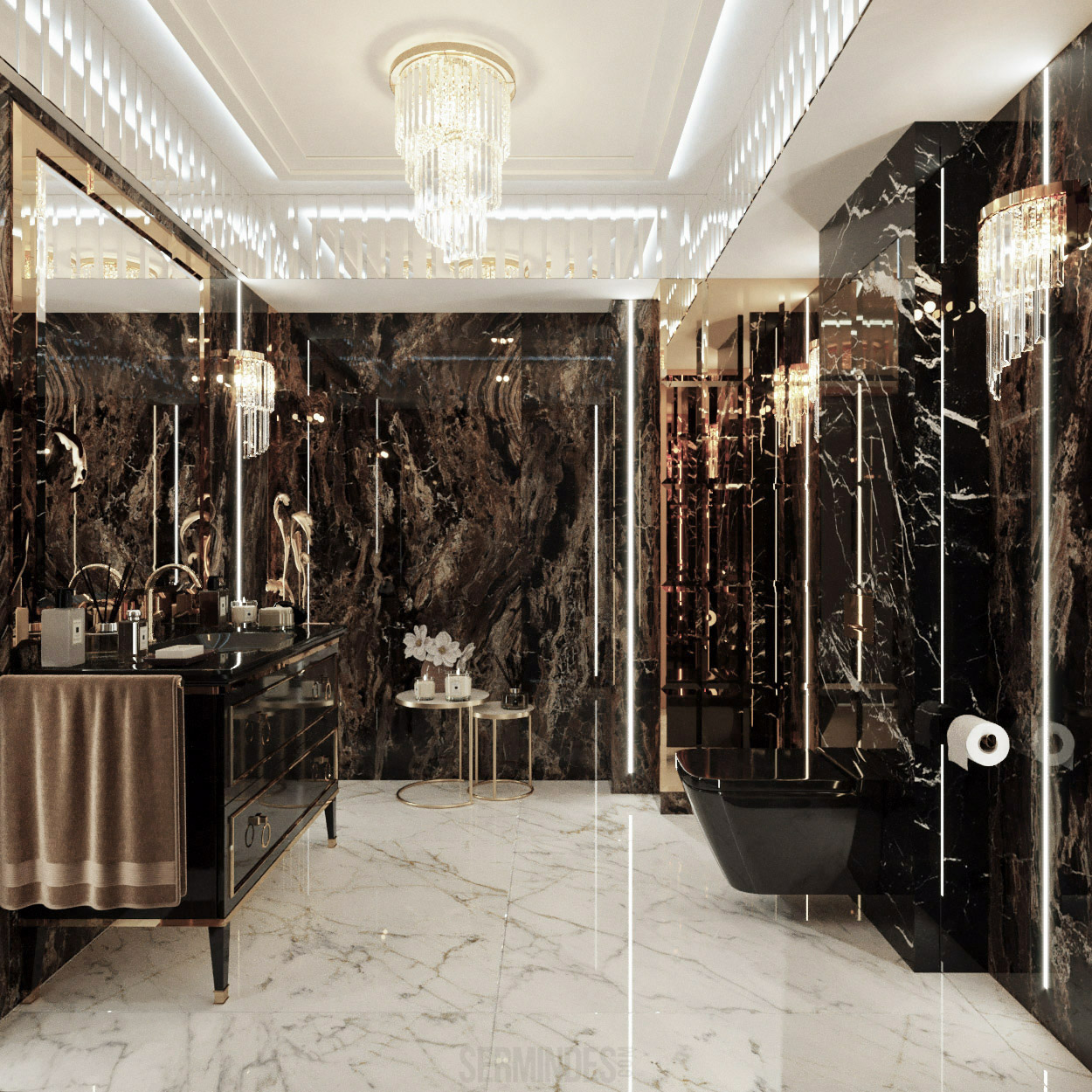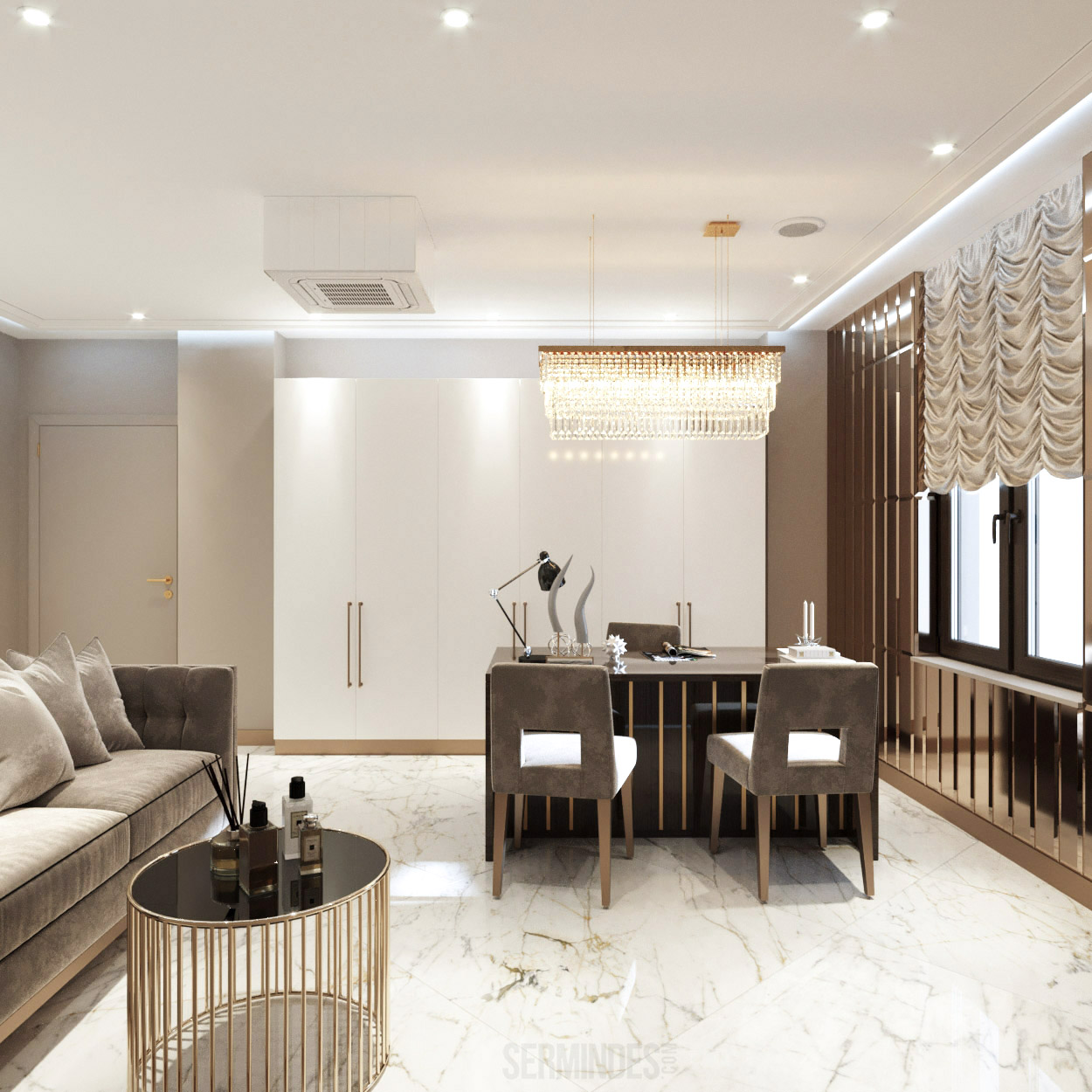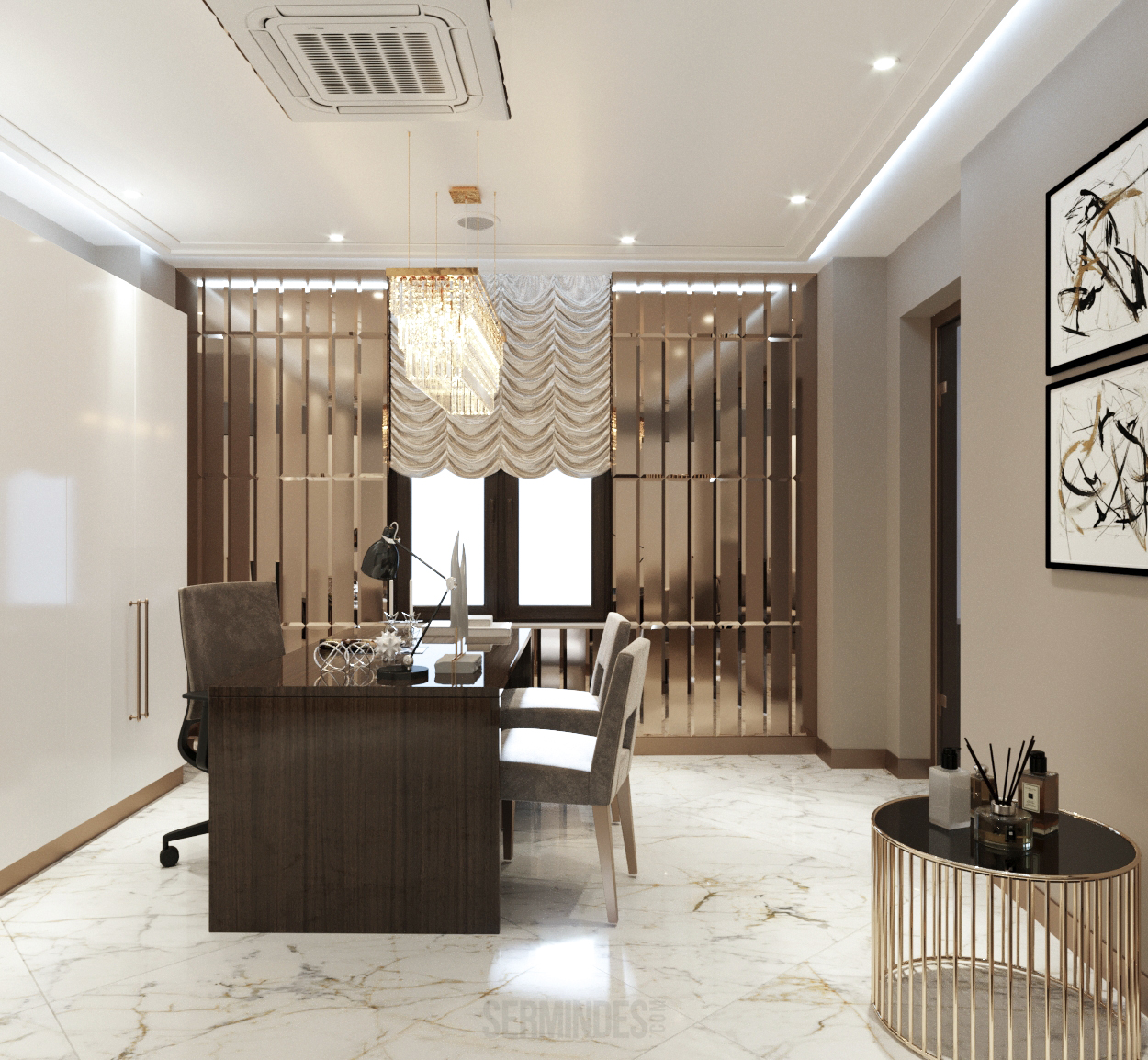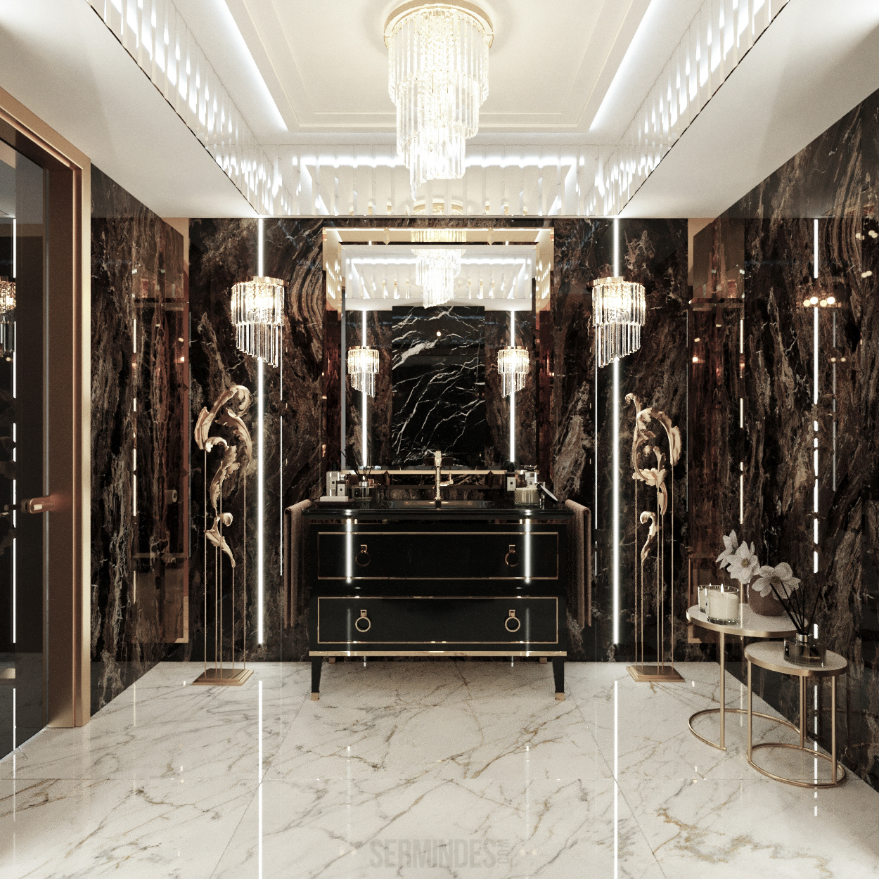 Interior design in Bucharest, of a beauty salon, with an area of 128 m.p. A contemporary style was chosen for the design of this salon, borrowing art-deco influences. HAIR TOUCH salon offers beauty services, hairdresser, sale of band extensions.