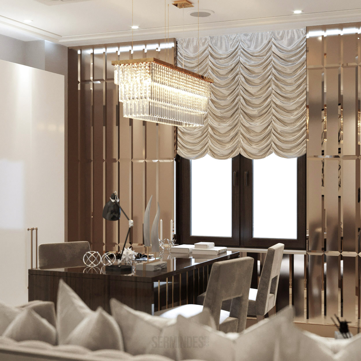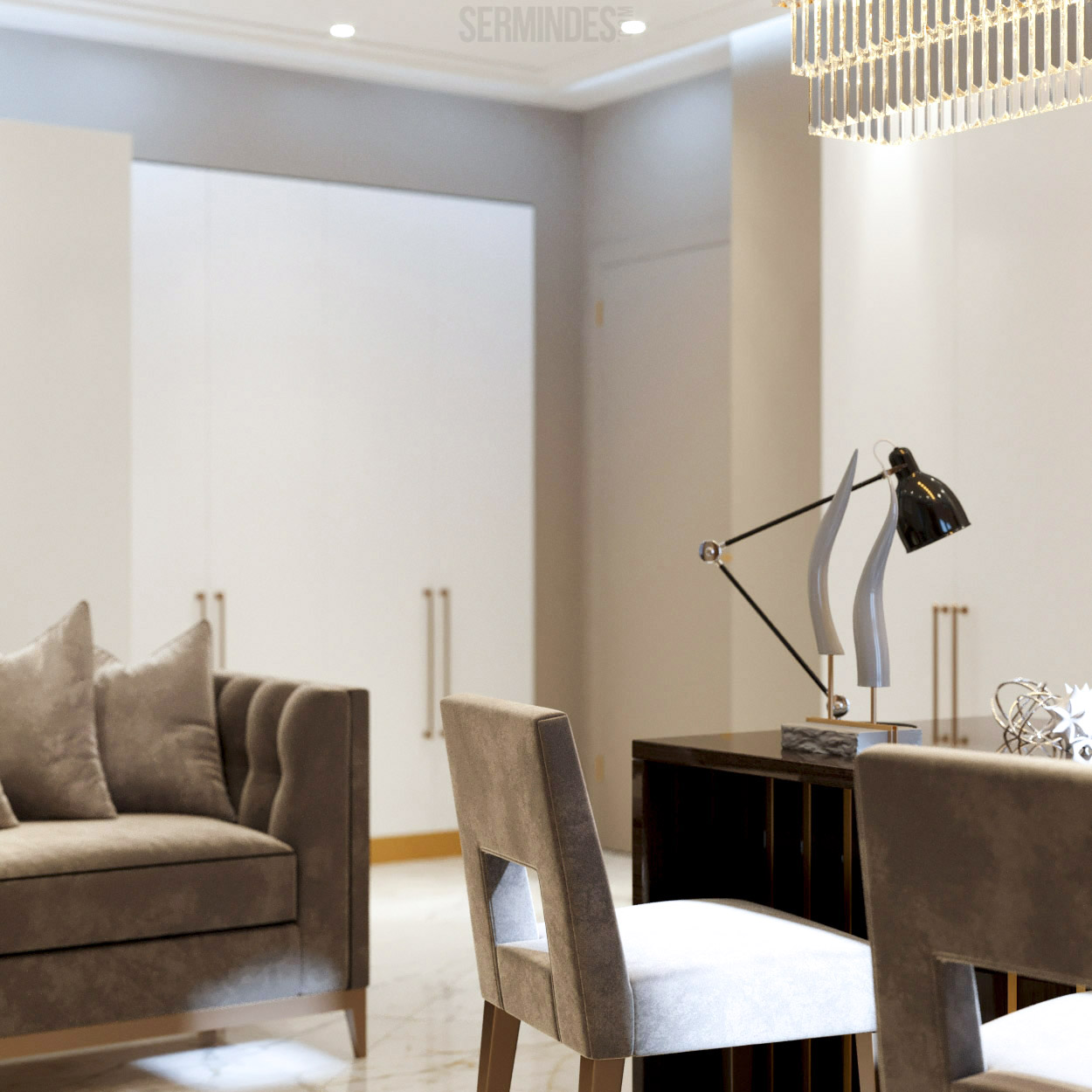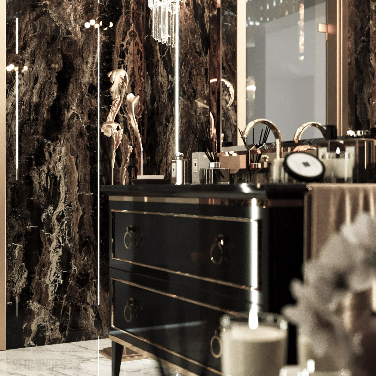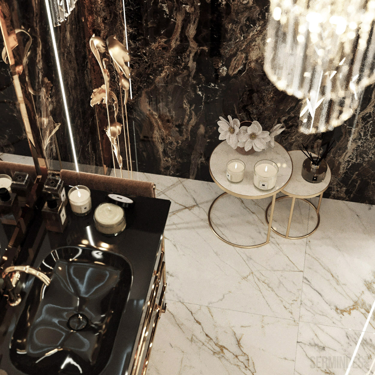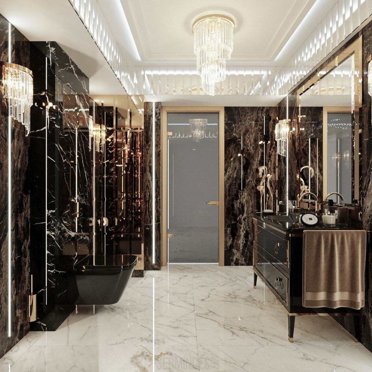 Interior design in Bucharest, of a beauty salon, with an area of 128 m.p. A contemporary style was chosen for the design of this salon, borrowing art-deco influences. HAIR TOUCH salon offers beauty services, hairdresser, sale of band extensions.