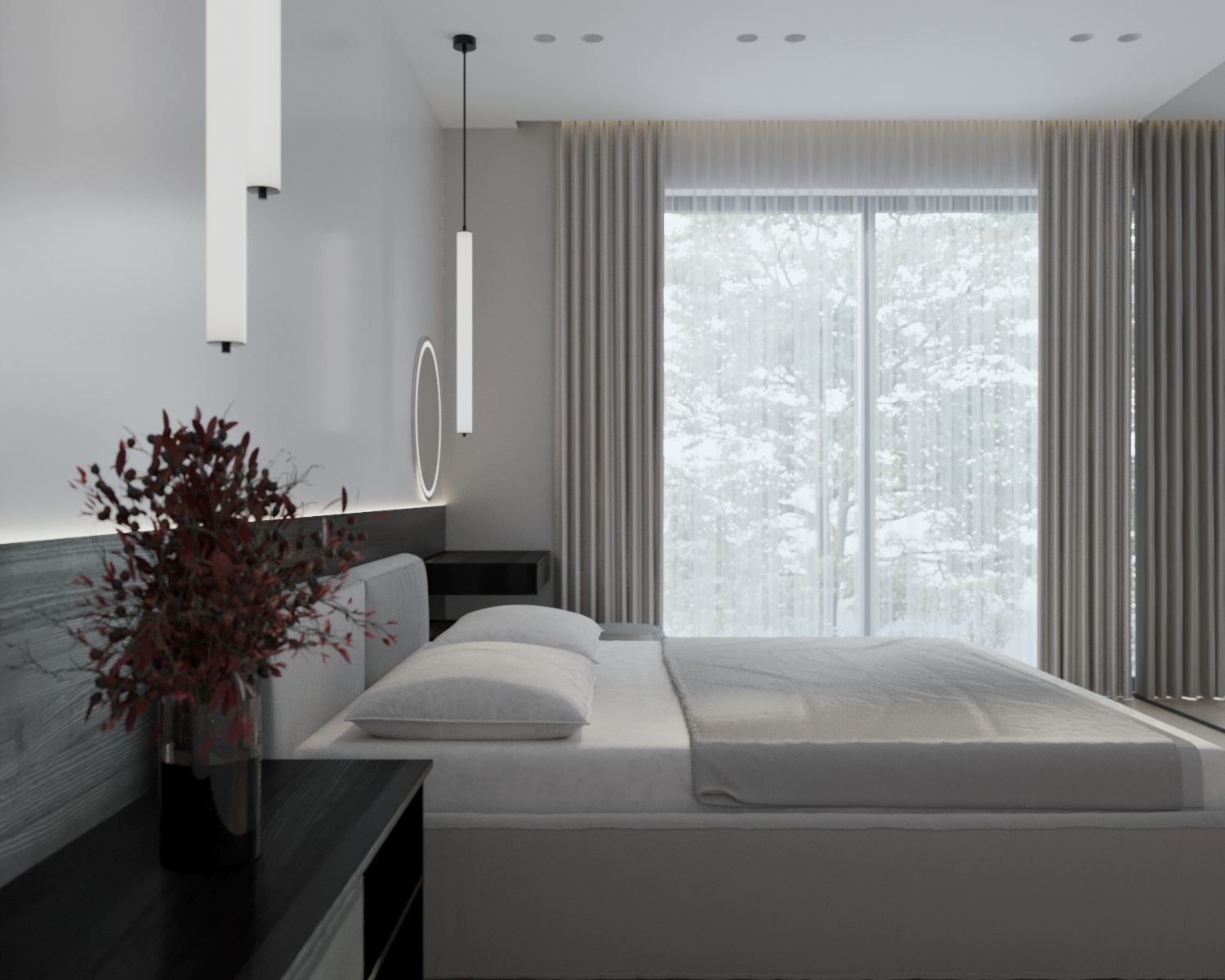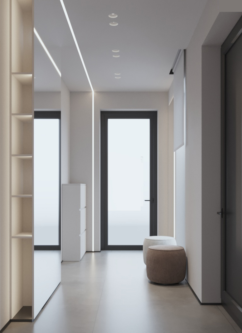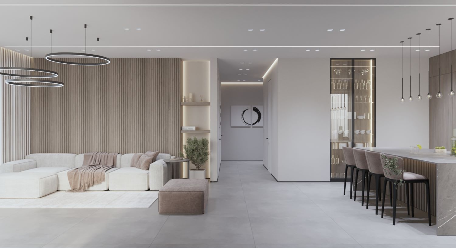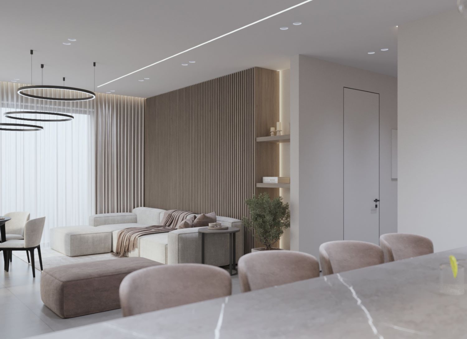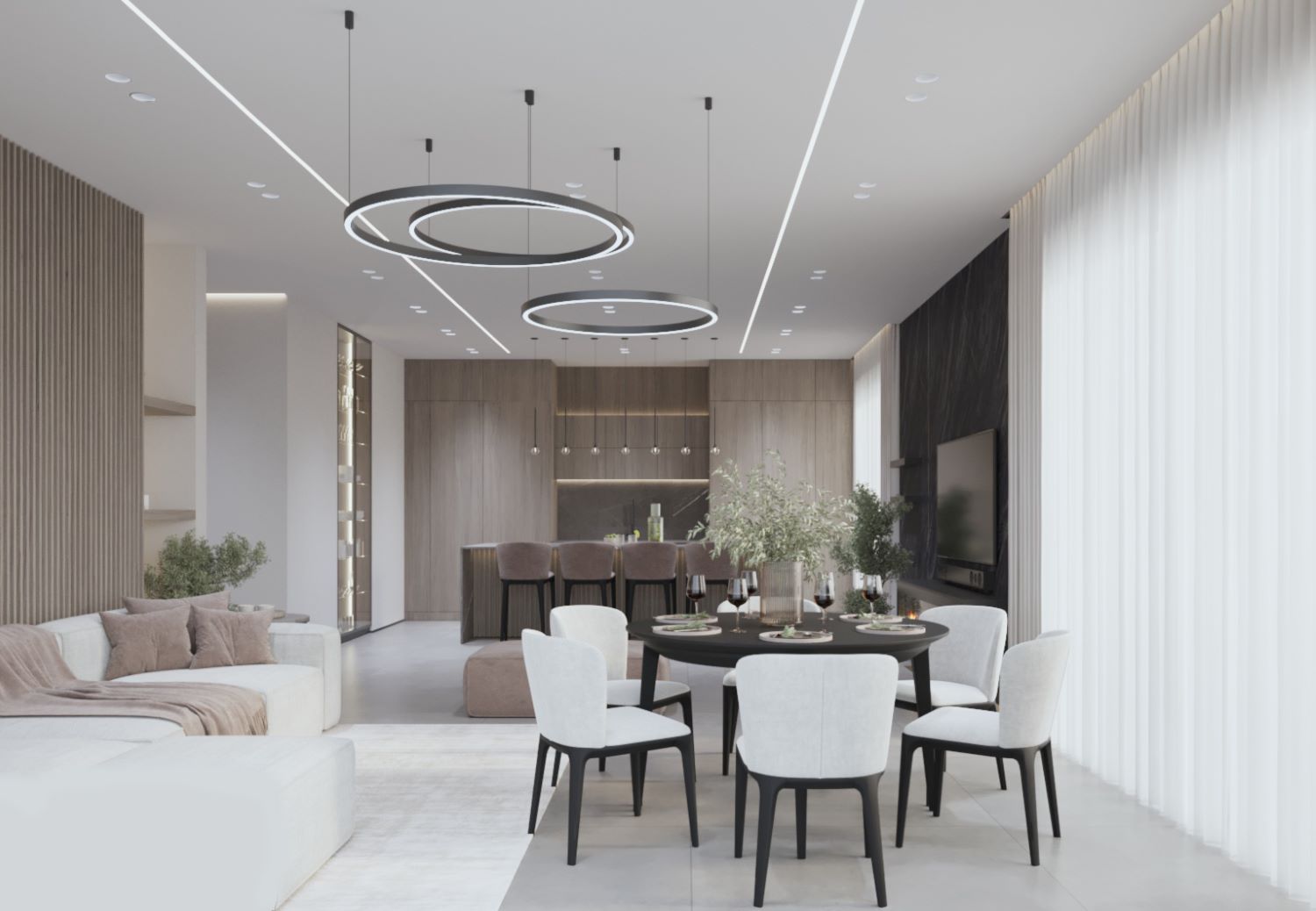 Interior design of a residential house, located in Truseni. Interior design in minimalist-contemporary style.