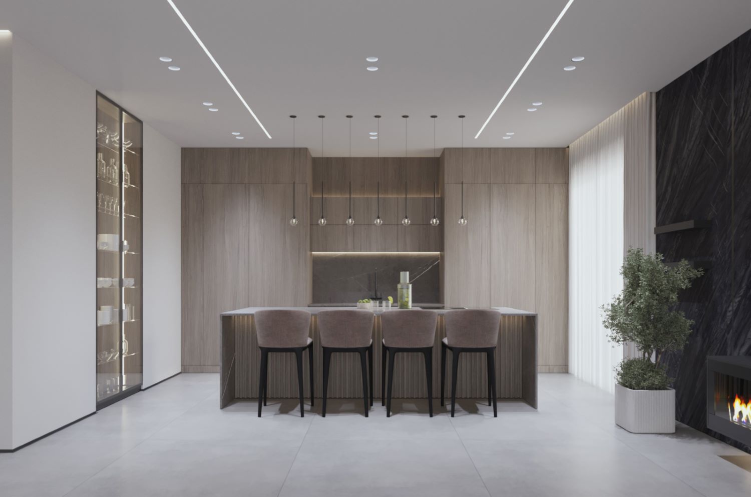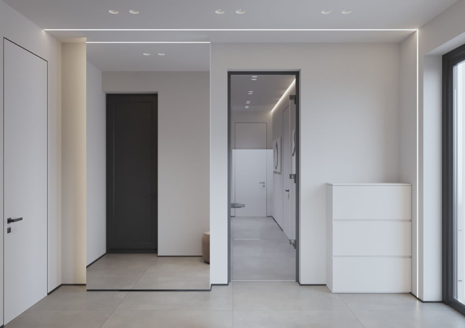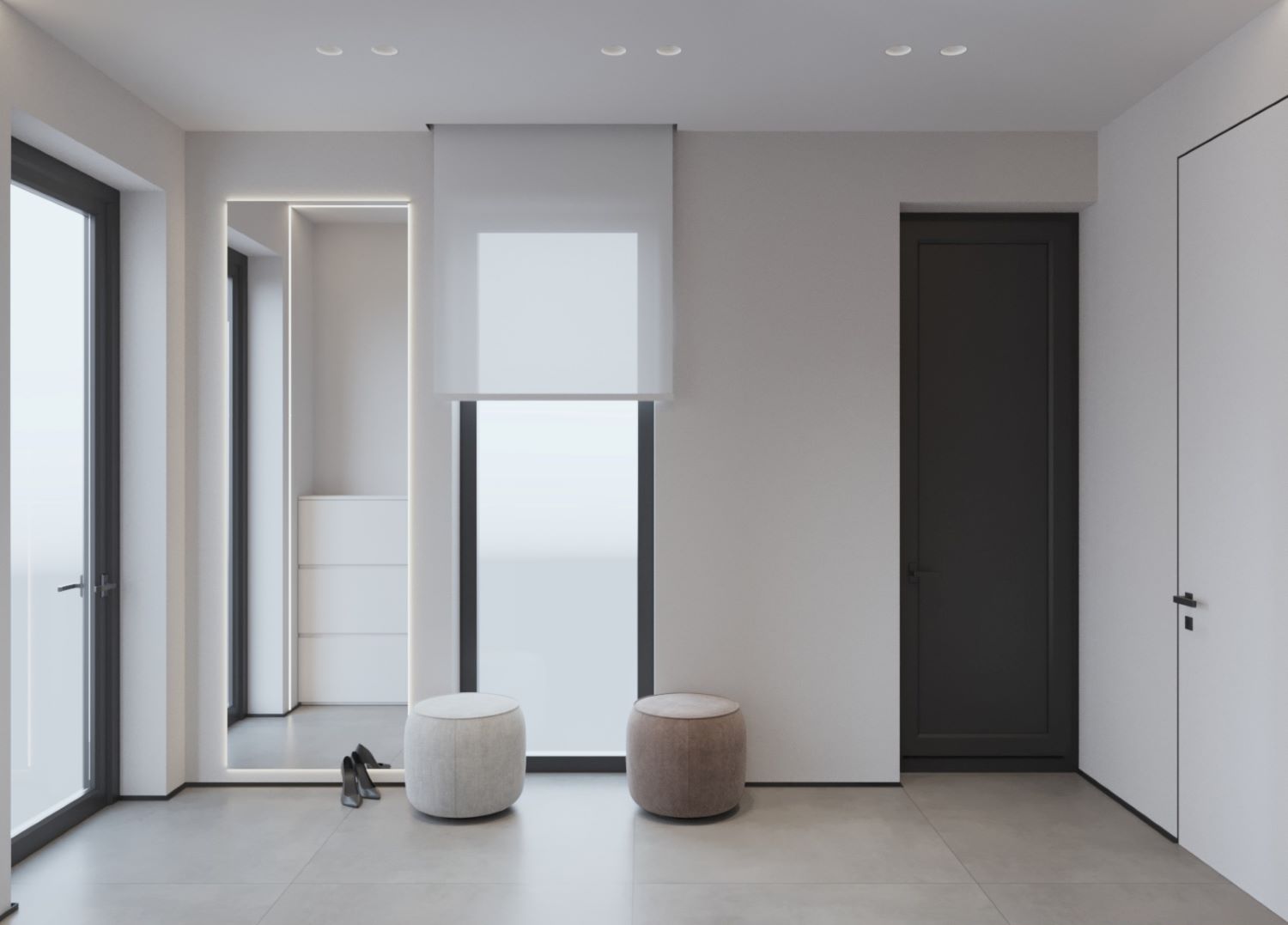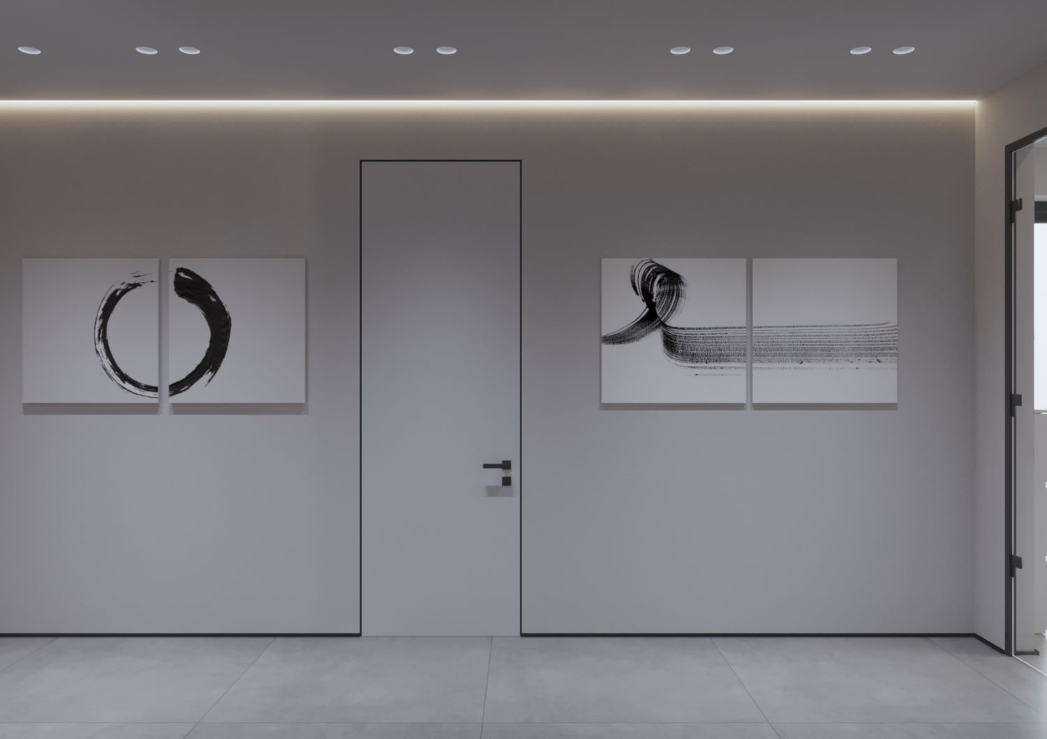 Interior design of a residential house, located in Truseni. Interior design in minimalist-contemporary style.