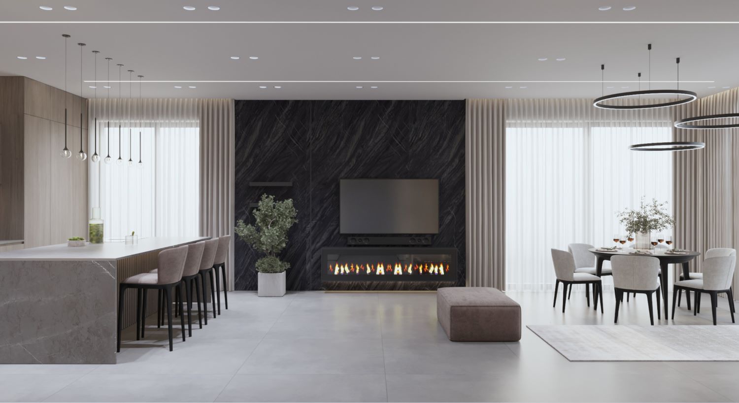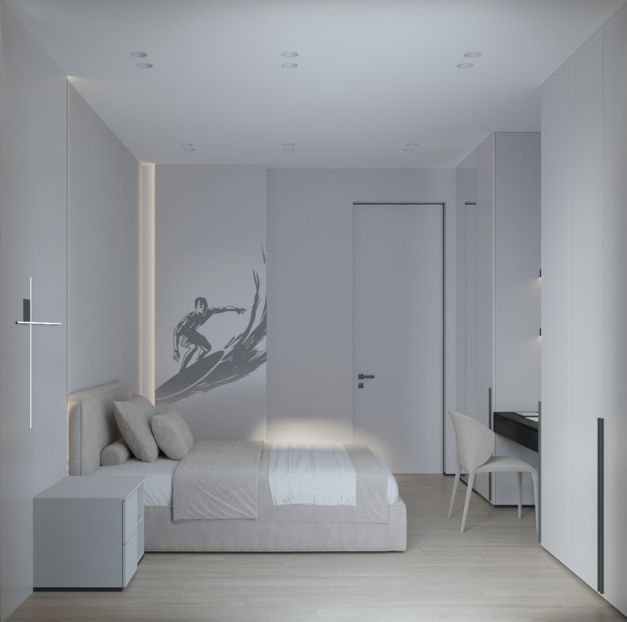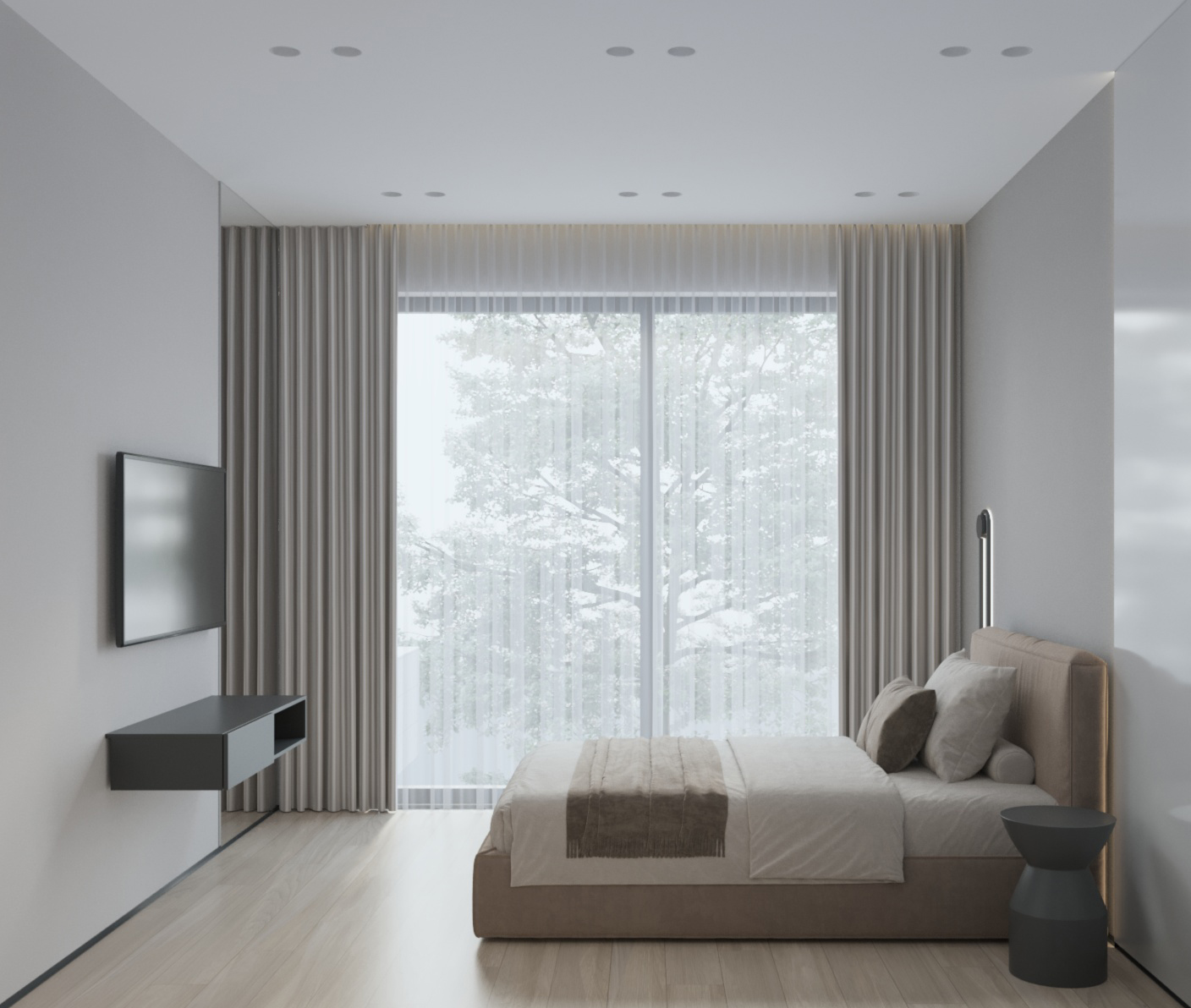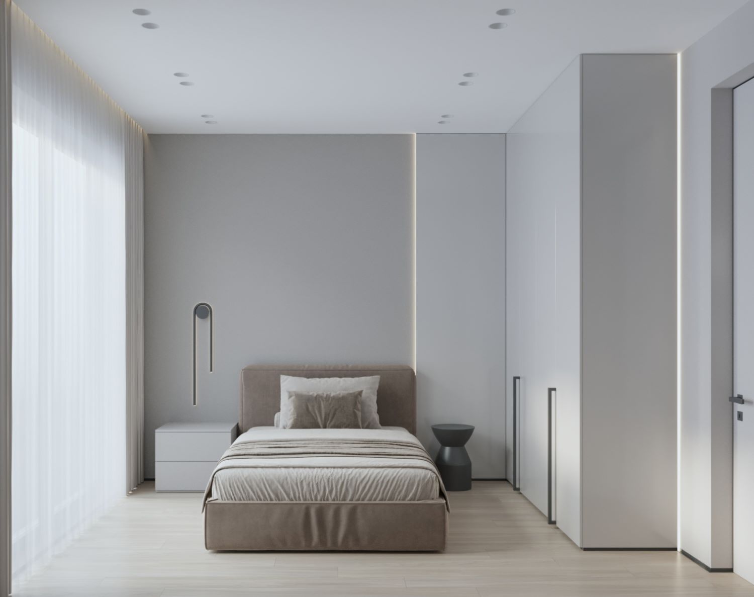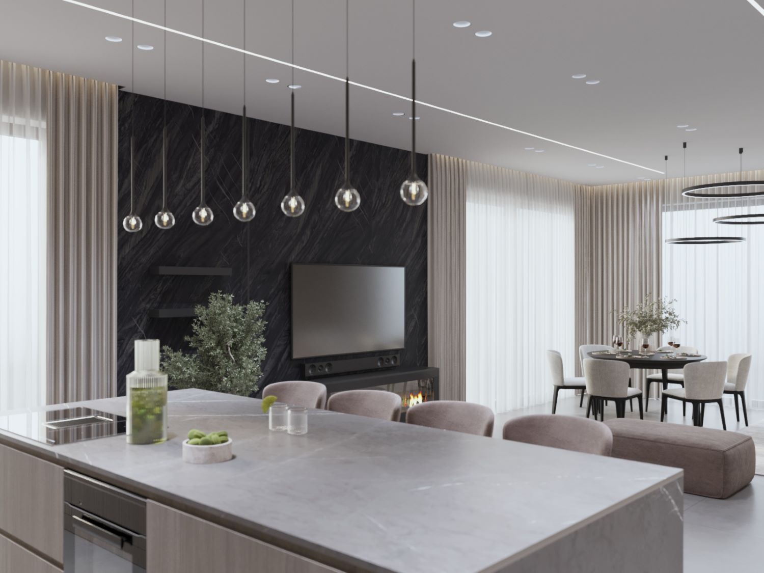Interior design of a residential house, located in Truseni. Interior design in minimalist-contemporary style.
