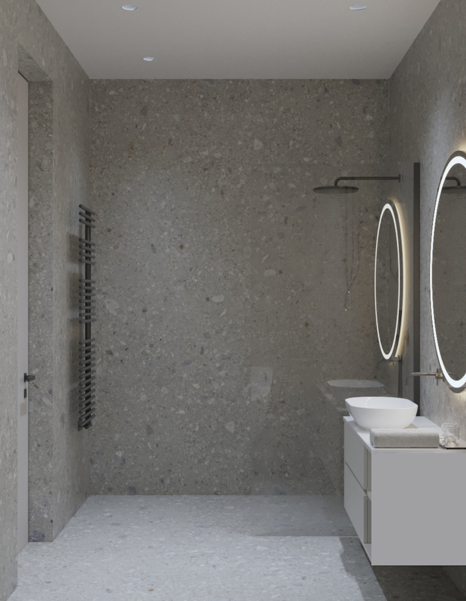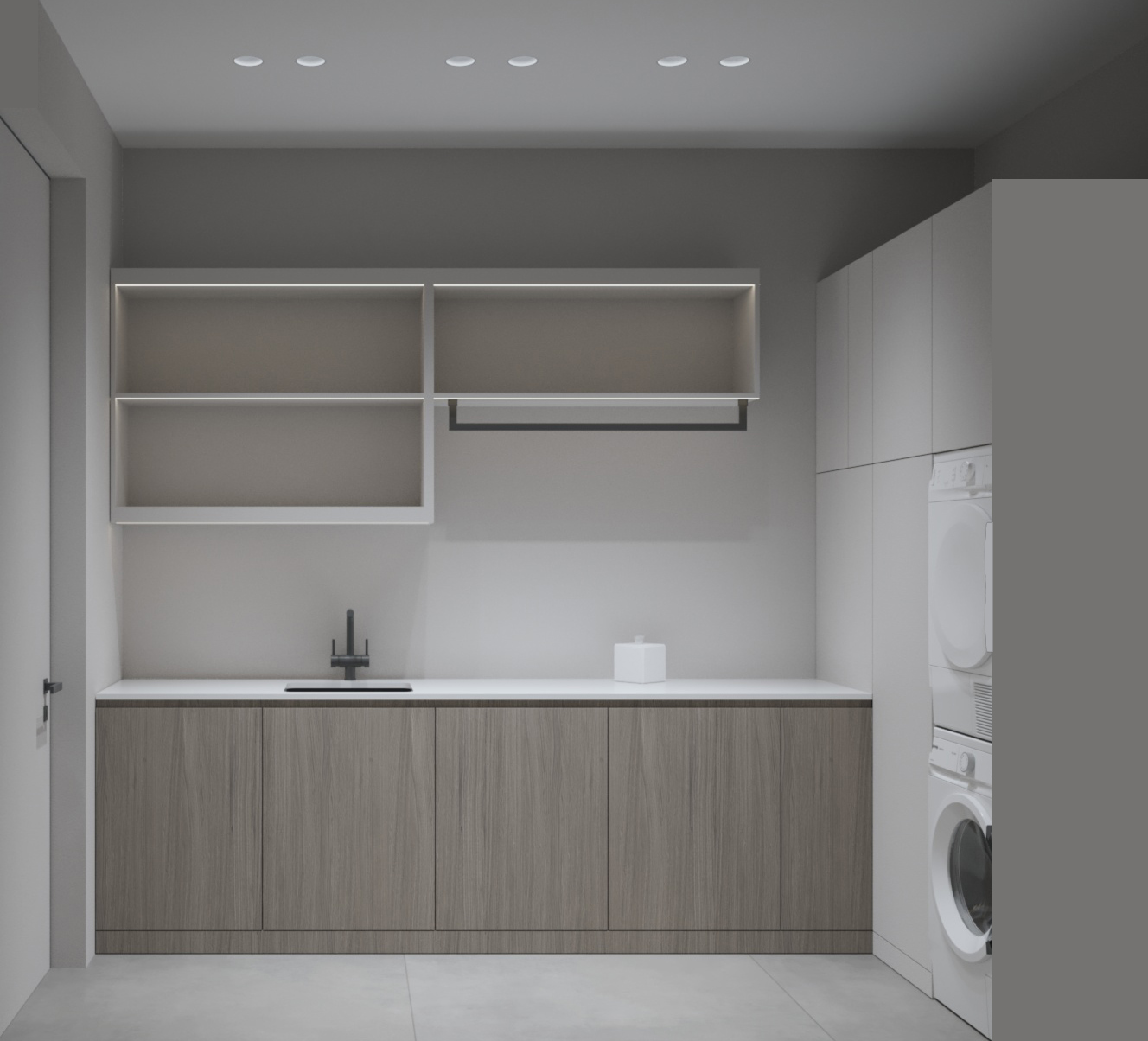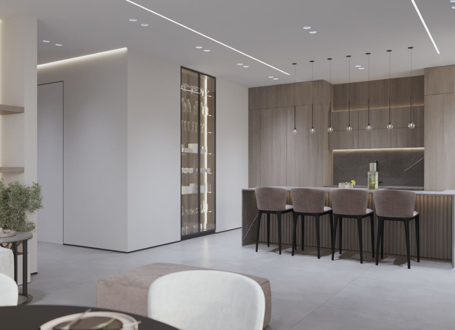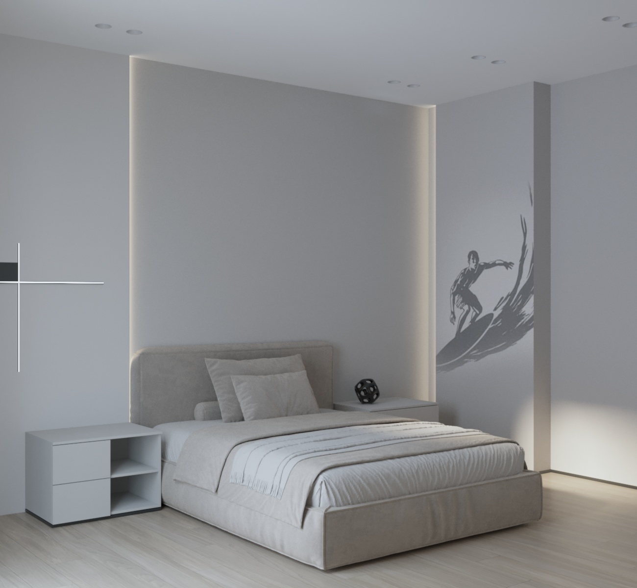 Interior design of a residential house, located in Truseni. Interior design in minimalist-contemporary style.