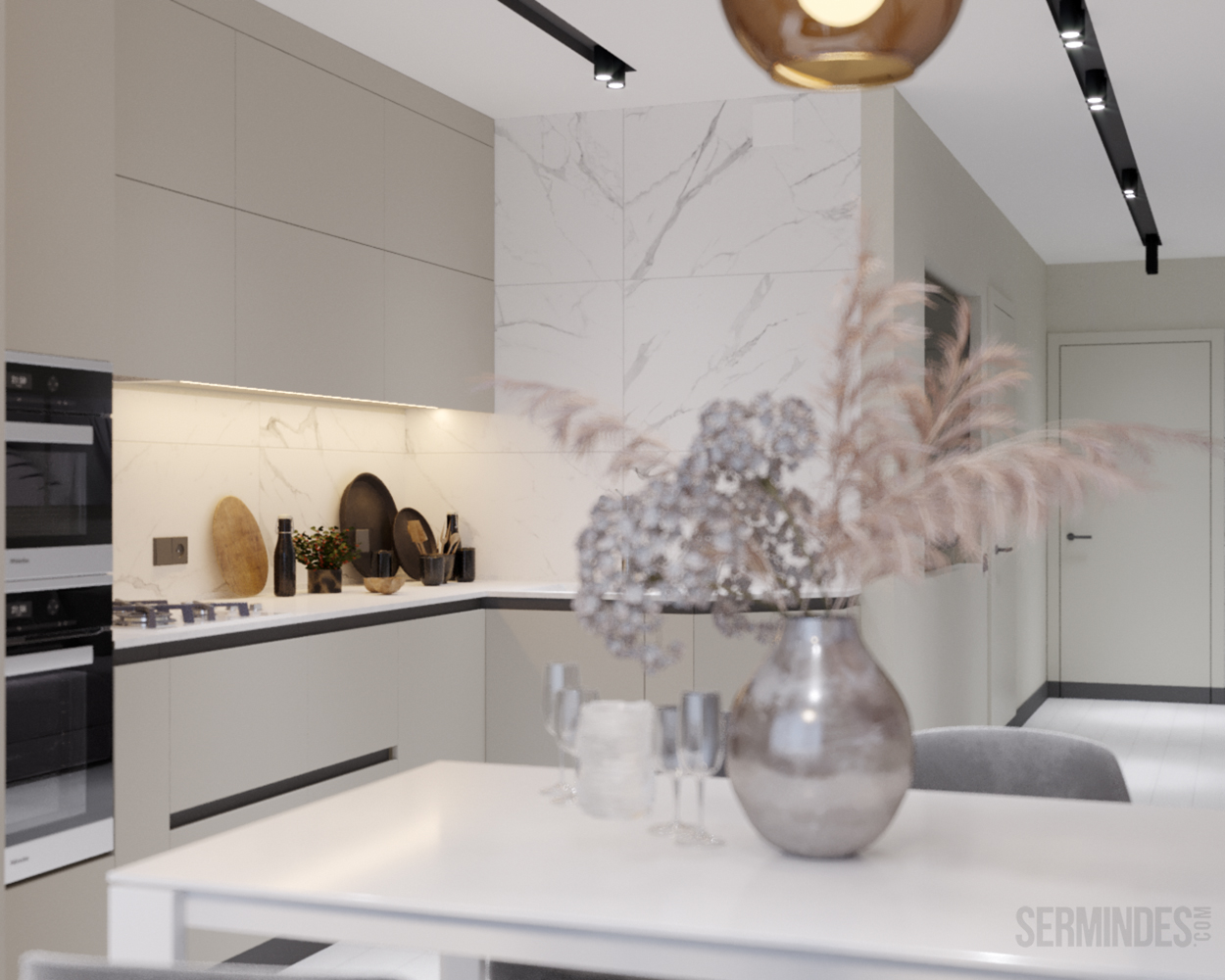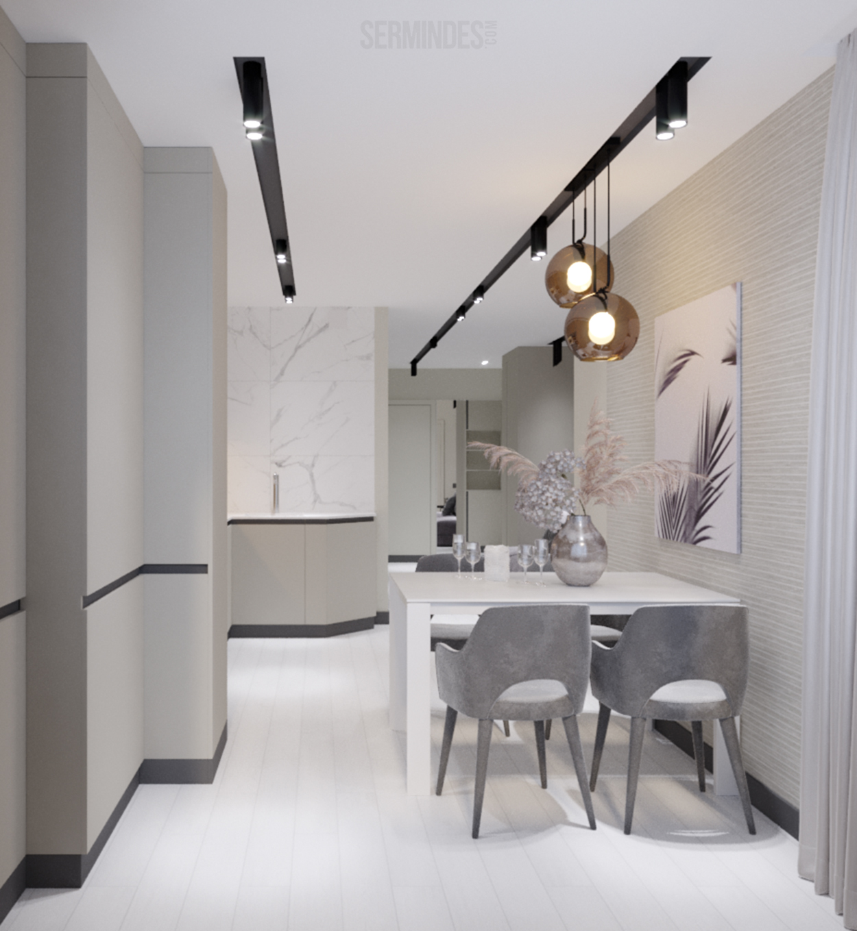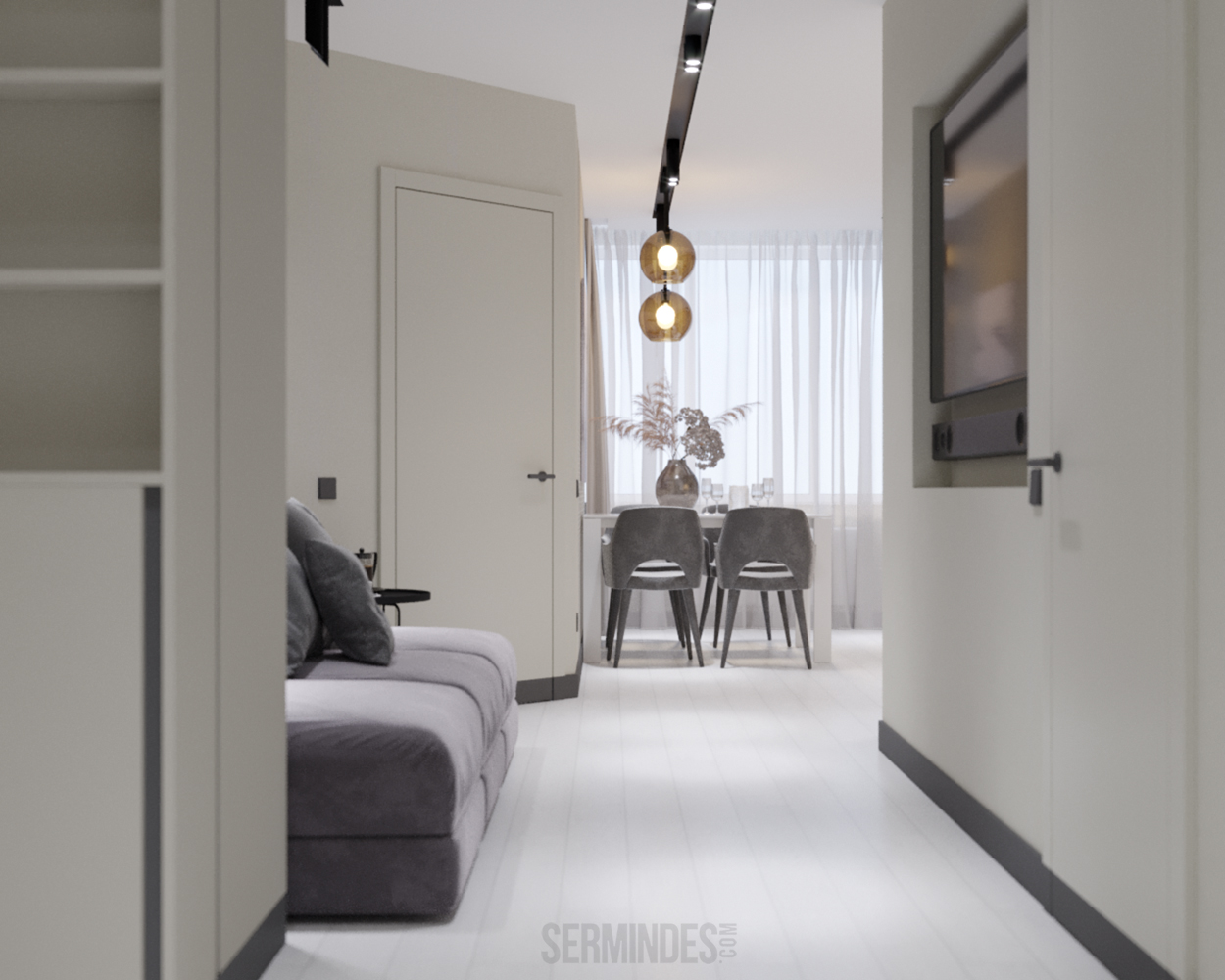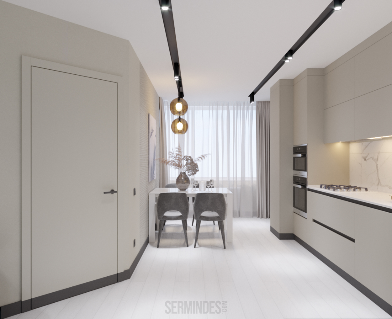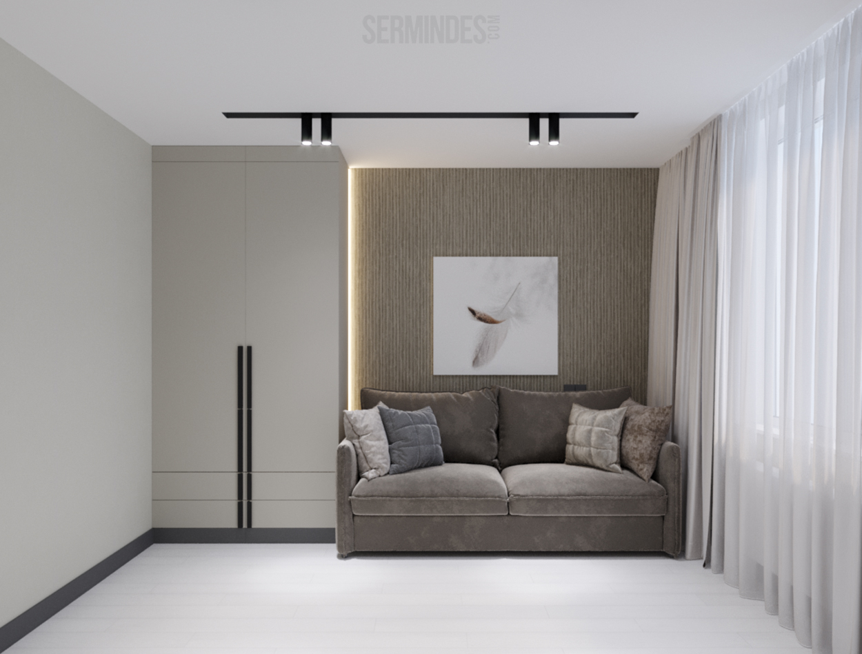 Interior design of an apartment with an area of 59 m.p. This apartment is designed in a contemporary style, with finishing materials with a natural-exotic look. The apartment is located in Chisinau.