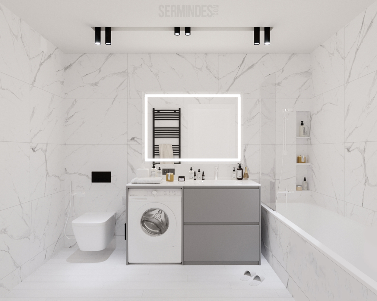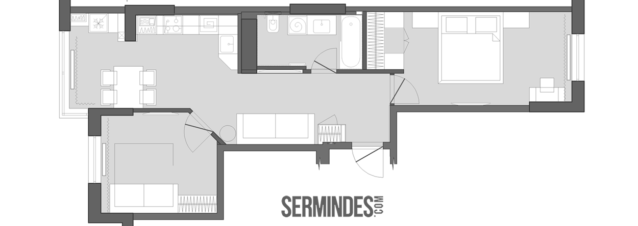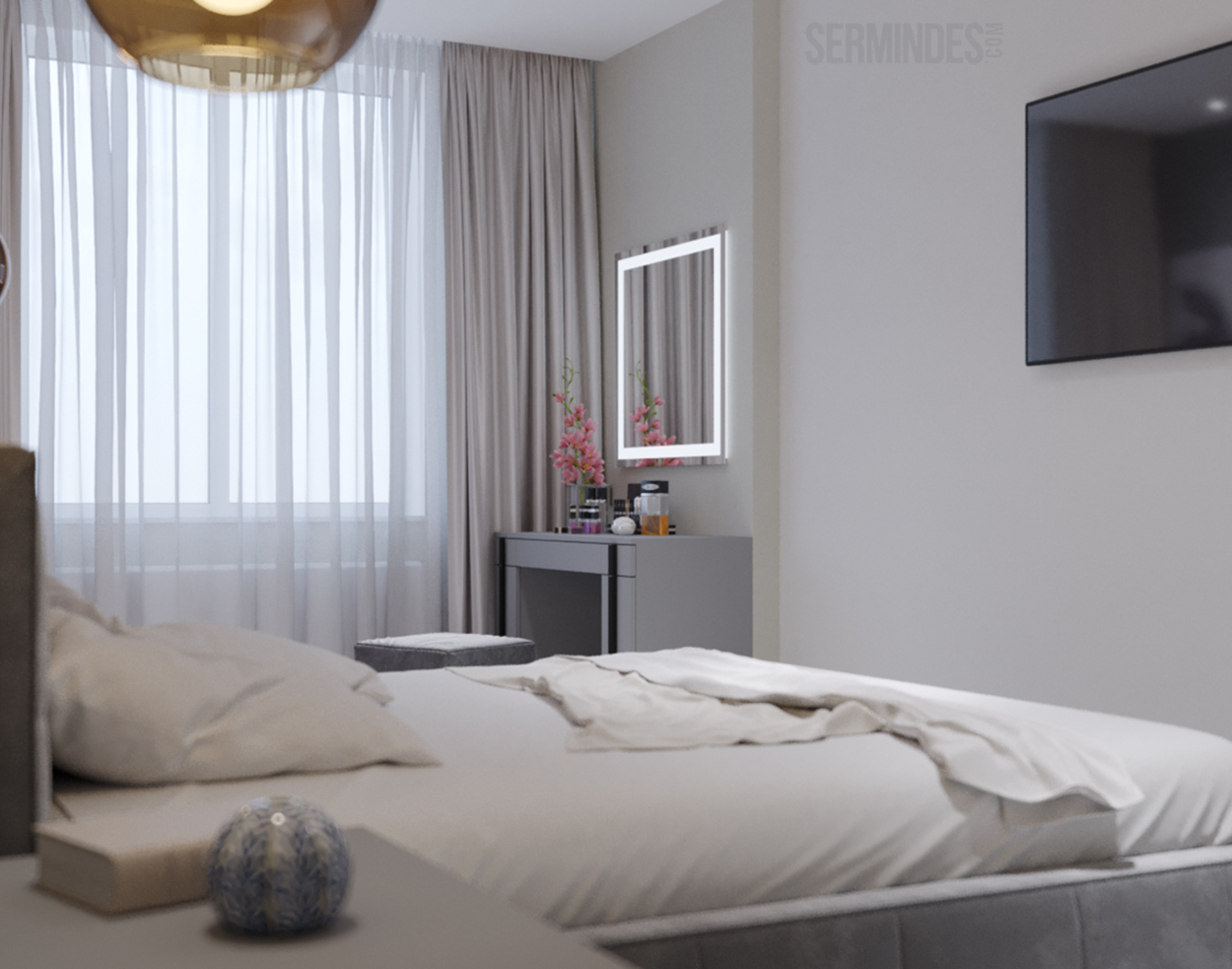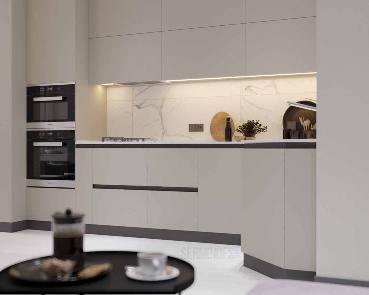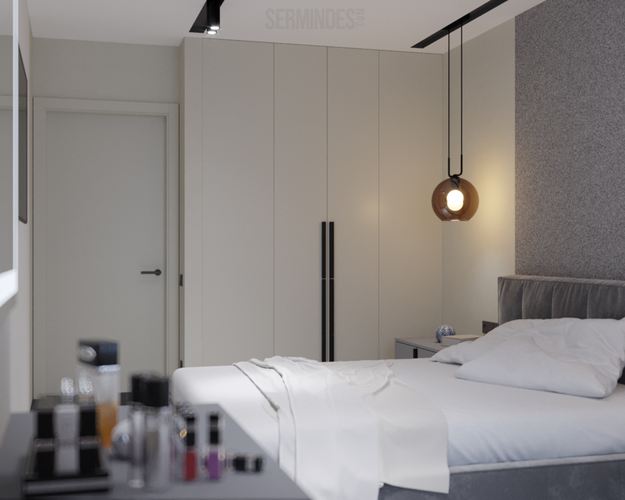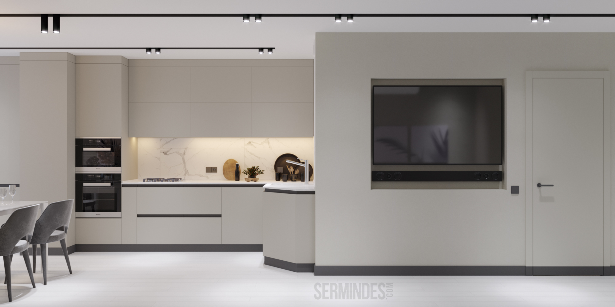 Interior design of an apartment with an area of 59 m.p. This apartment is designed in a contemporary style, with finishing materials with a natural-exotic look. The apartment is located in Chisinau.