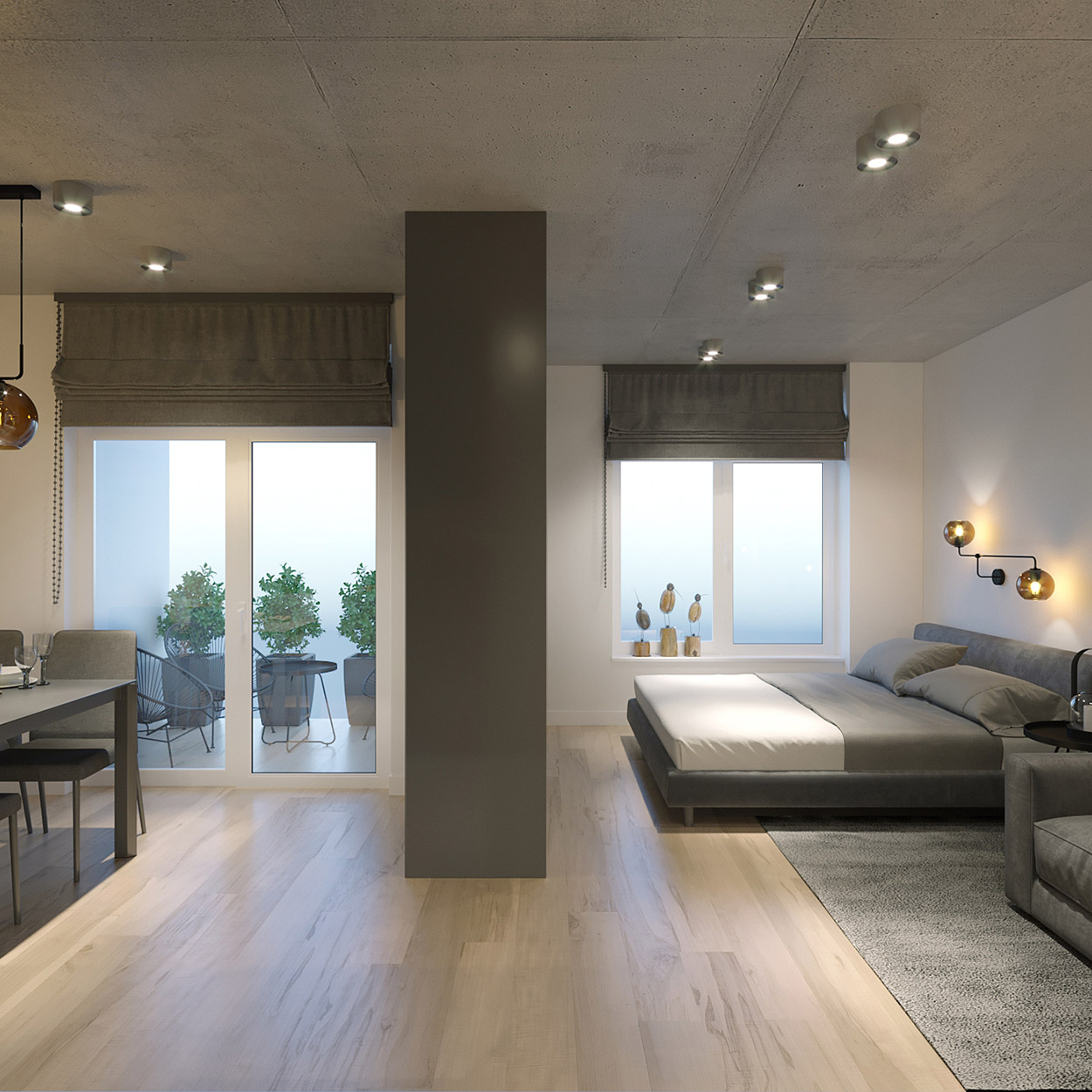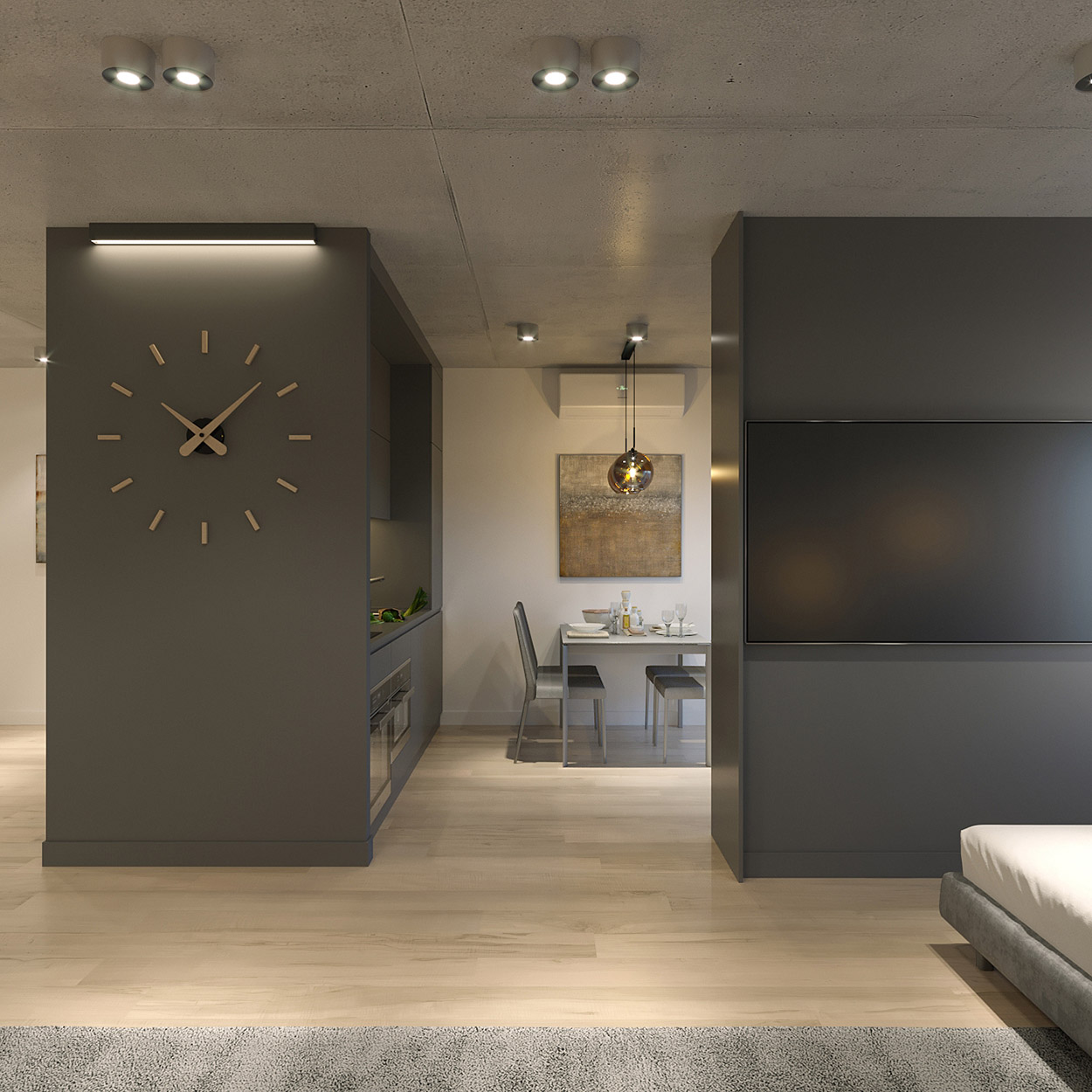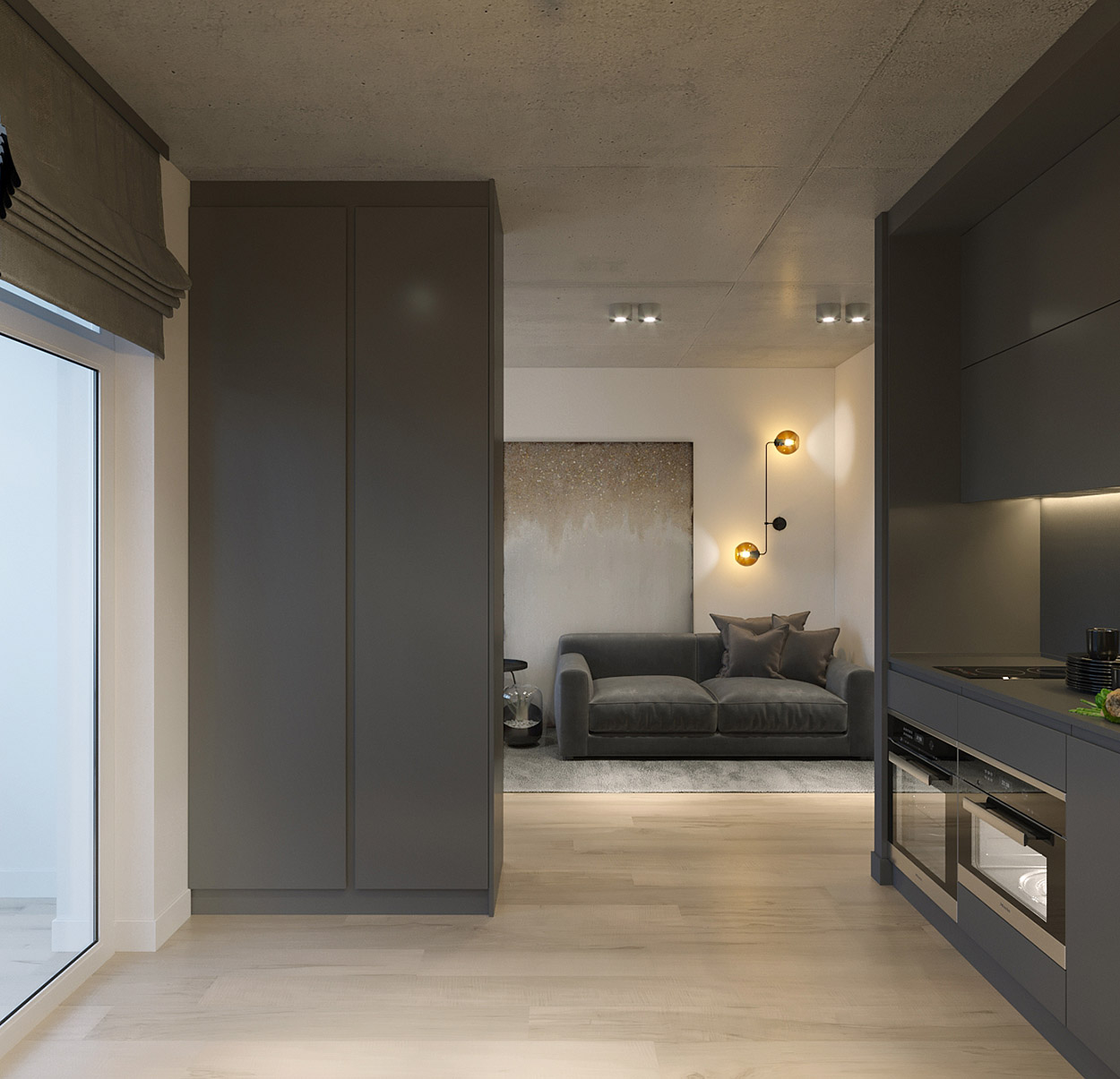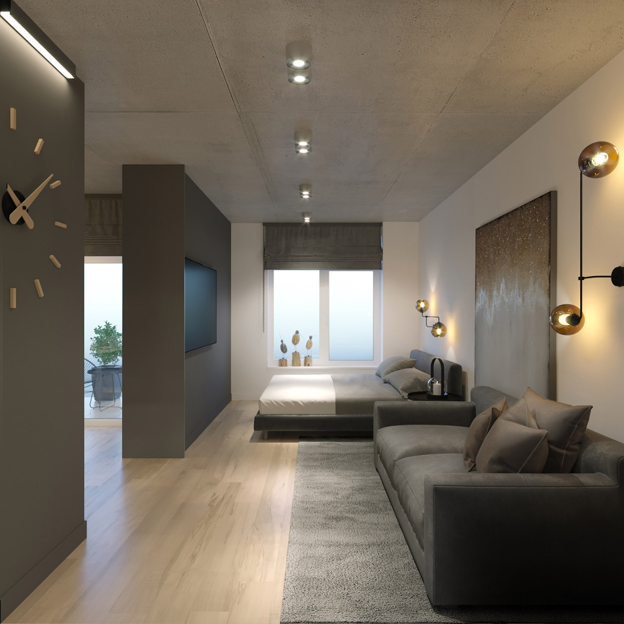 Interior design of a studio apartment, located in Chisinau, Republic of Moldova.