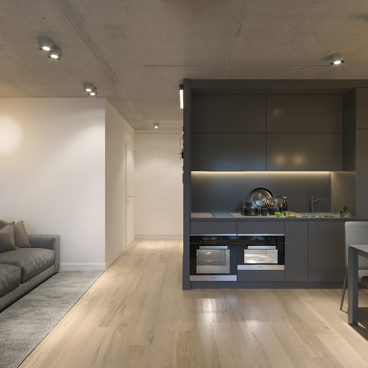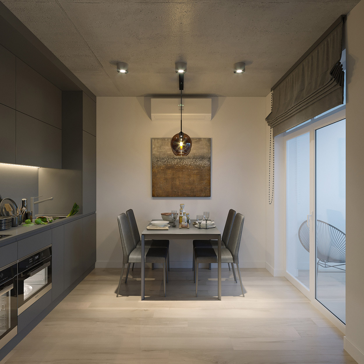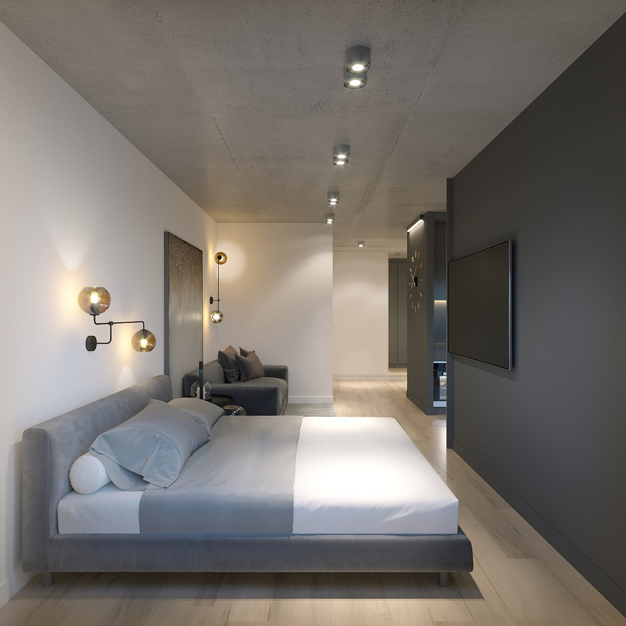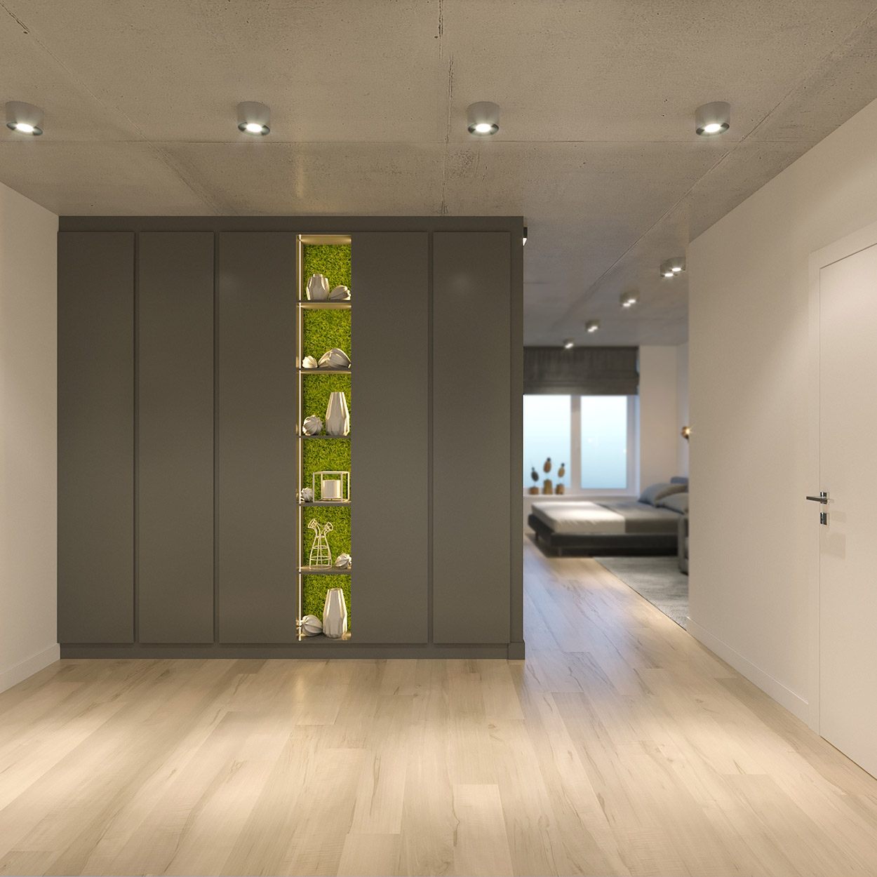 Interior design of a studio apartment, located in Chisinau, Republic of Moldova.