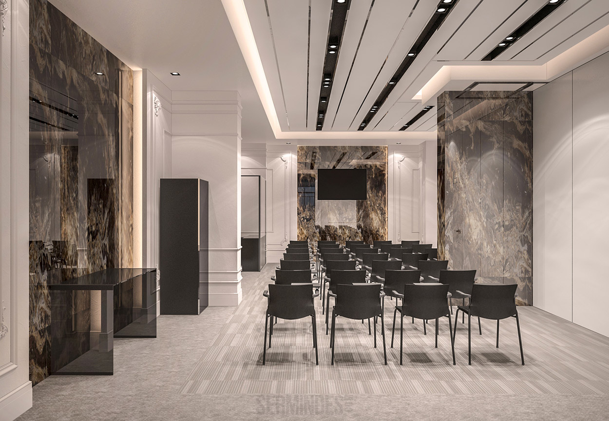 Interior design of a conference room with an area of 140 square meters in the city of Chisinau.