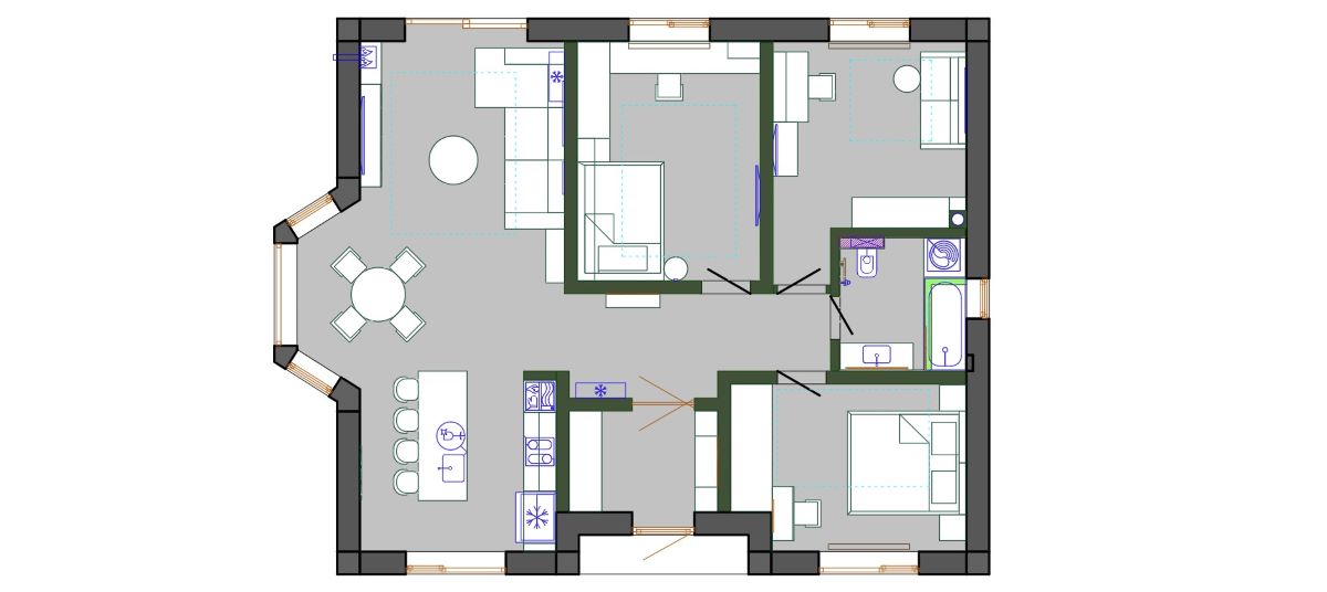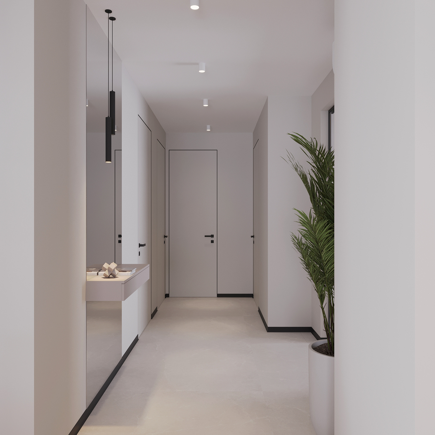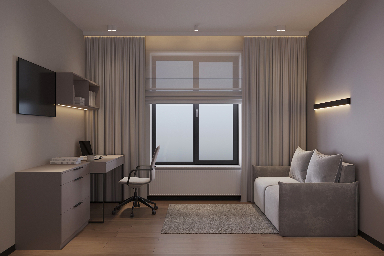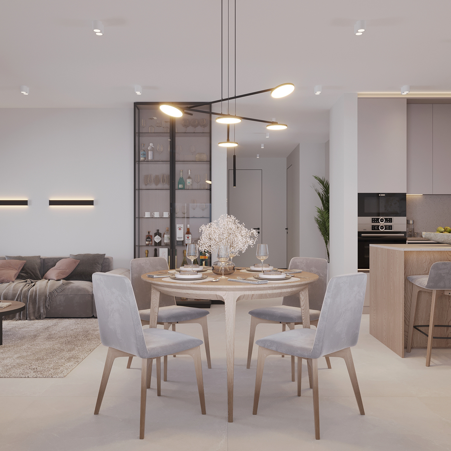 Interior Design of a residential house in Suruceni, Republic of Moldova. The house consists of one level. The interior design is developed in a contemporary style.