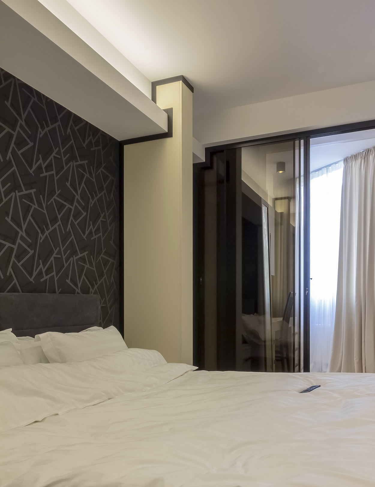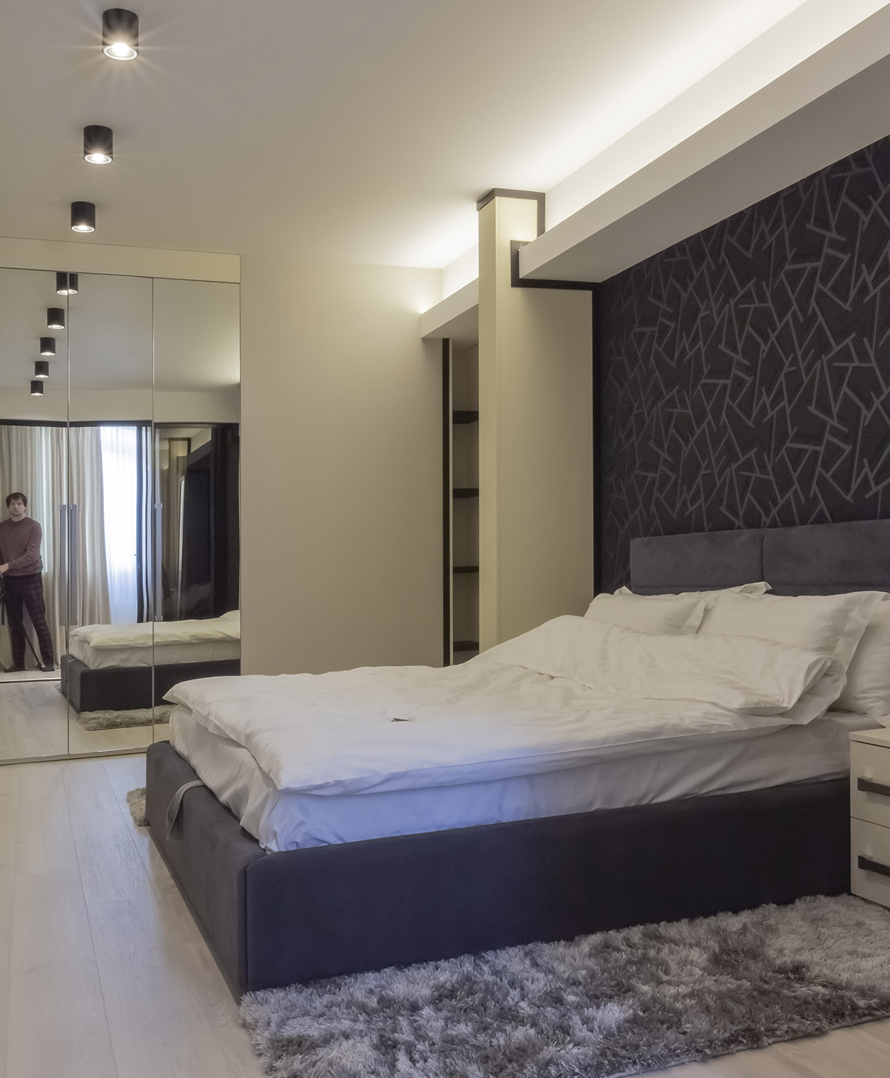 Bedroom 2 differs in lighter tones. The mirror wall of the closet visually enhances (enlarges) the space.