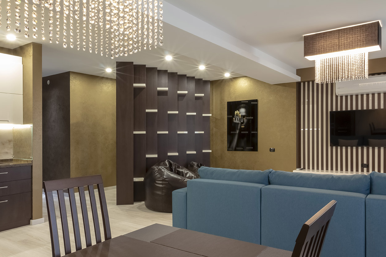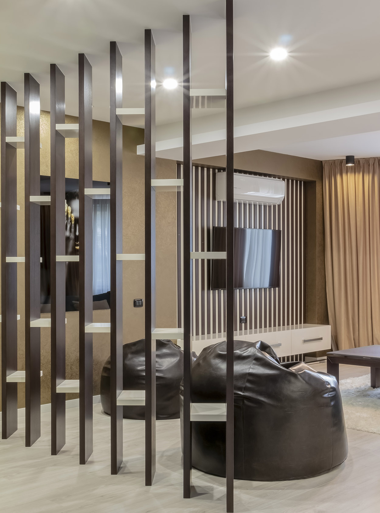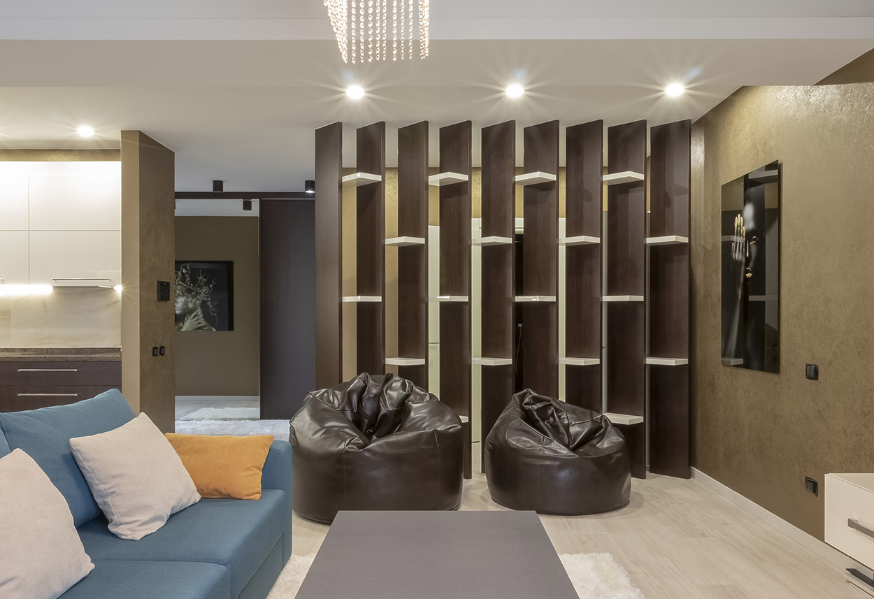 Also, the modern approach to organizing the space was influenced by the well-established lighting of the room.
