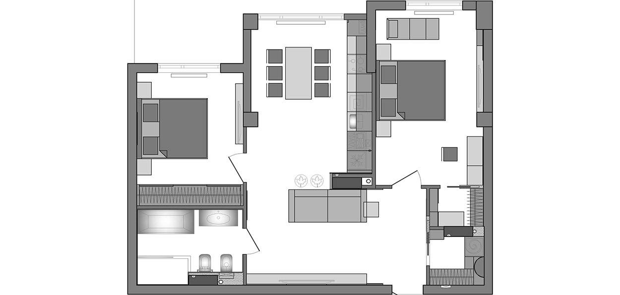 Apartment with an area of 80 square meters located in Chisinau Republic of Moldova. Interior design elaborated in contemporary style with pastel color range.