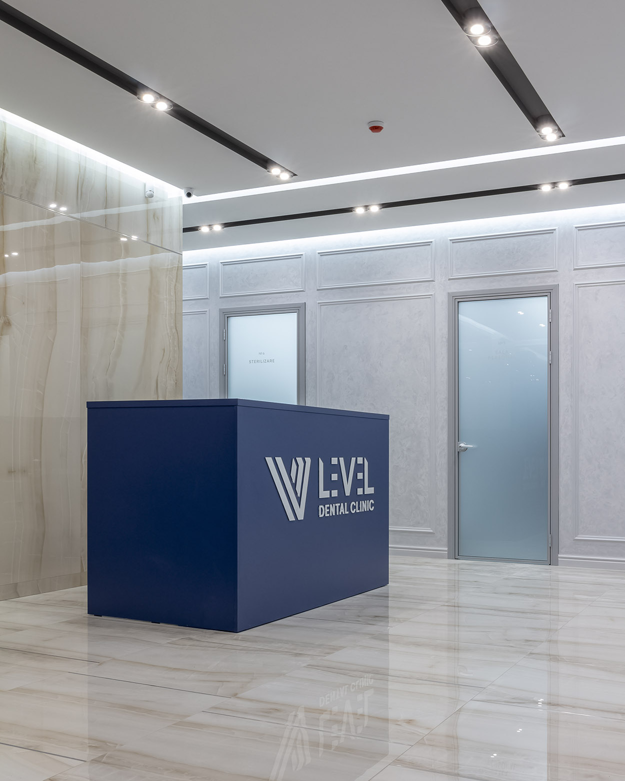 LEVEL DENTAL CLINIC este o clinică stomatologică situată in orașul Chisinau R. Moldova. Interiorul este proiectat in stilul contemporan in mare parte și accente din neoclasic. Clinica are o suprafață de 165 m.p. cu trei cabinete de lucru. Designul interior are la bază accentul culoarea albastru diplomat, culoarea ce predomină și in brandbook-ul companiei. Clinica este dotată cu echipamente moderne ce corespunde standardelor internaționale.