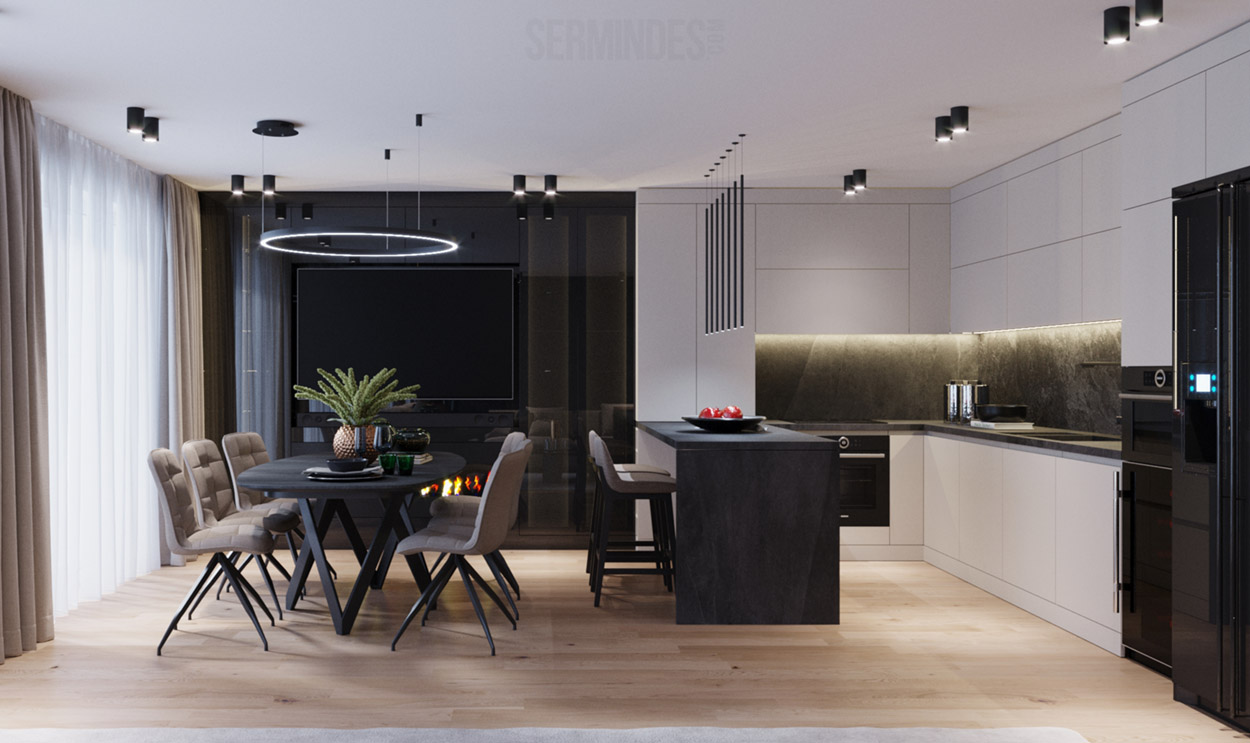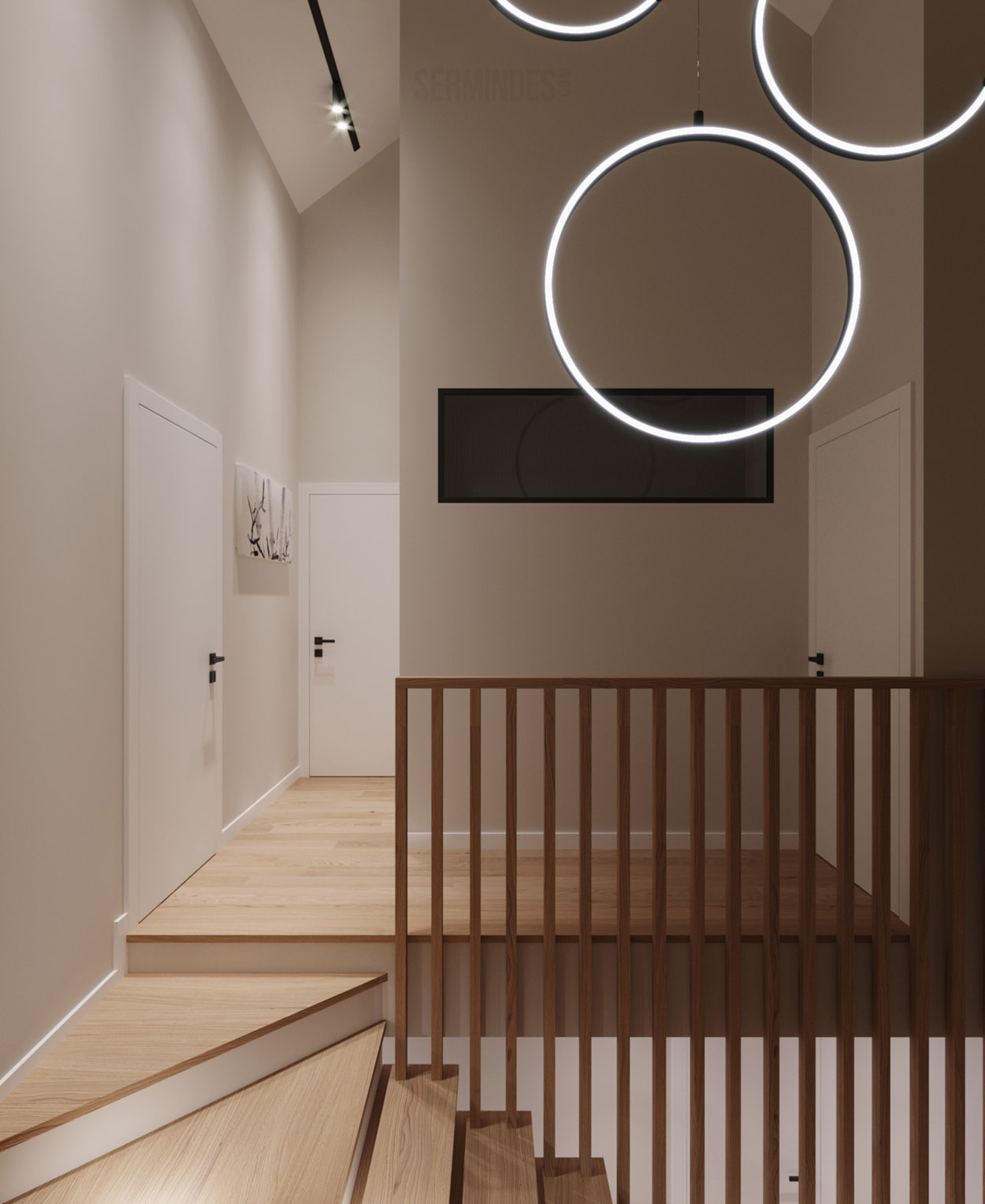 Design interior al unei case de locuit ce se află in Luxembourg. Casa cu două nivele alcătuită din 3 dormitoare, doua băi, salonul cu sugragerie si bucatarie unite. Locuința este amenajata in stil contemporan.
