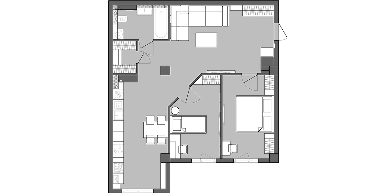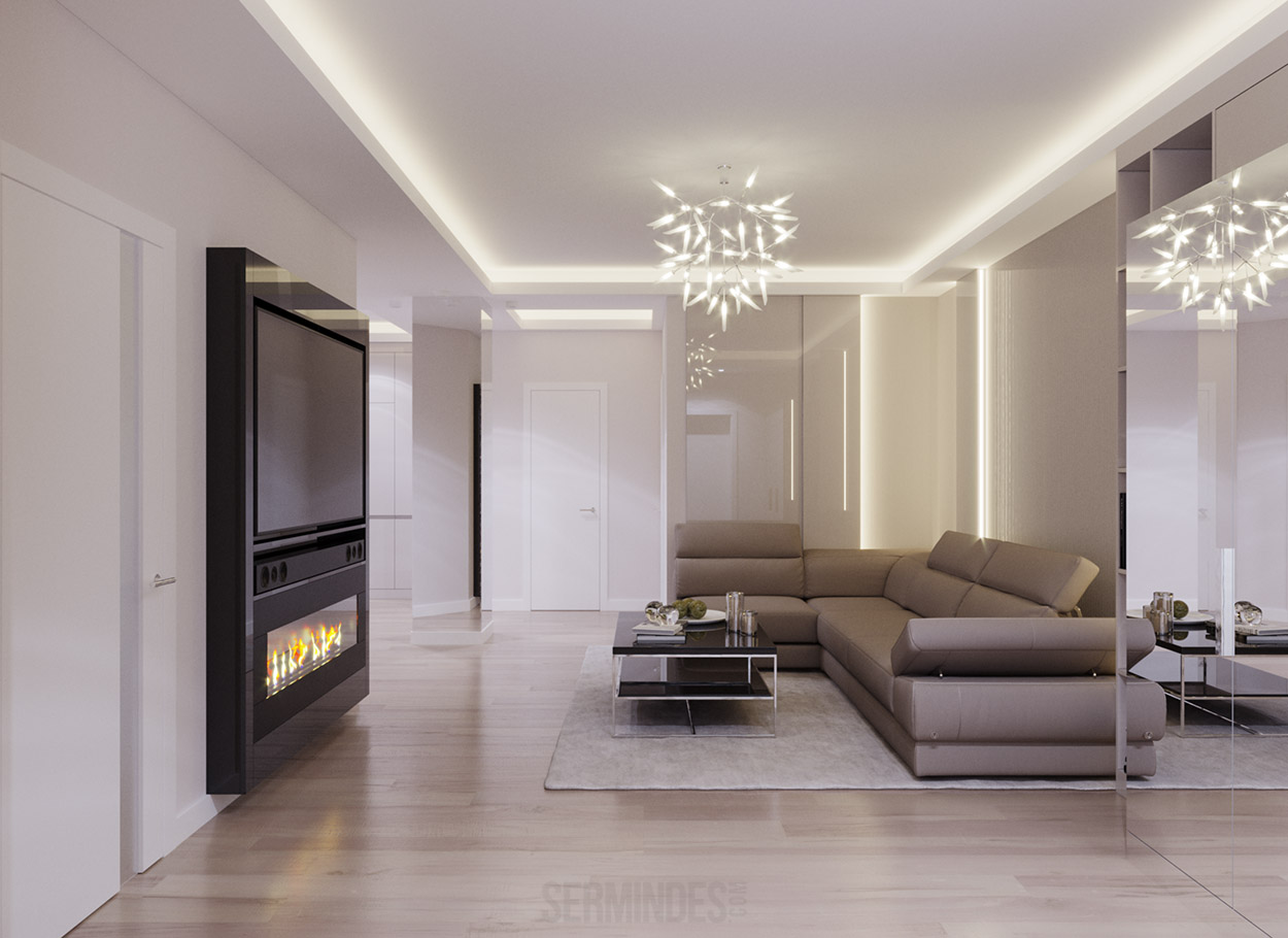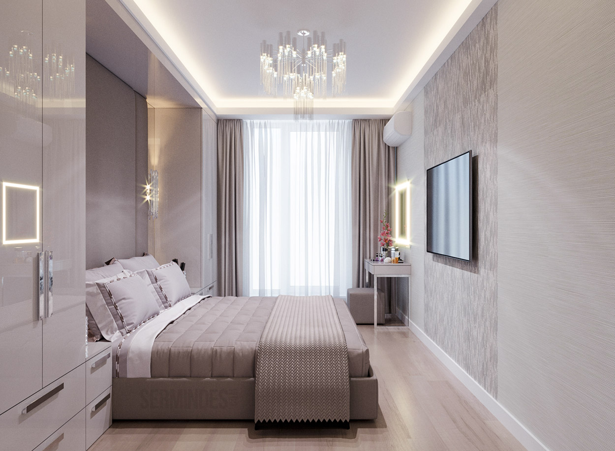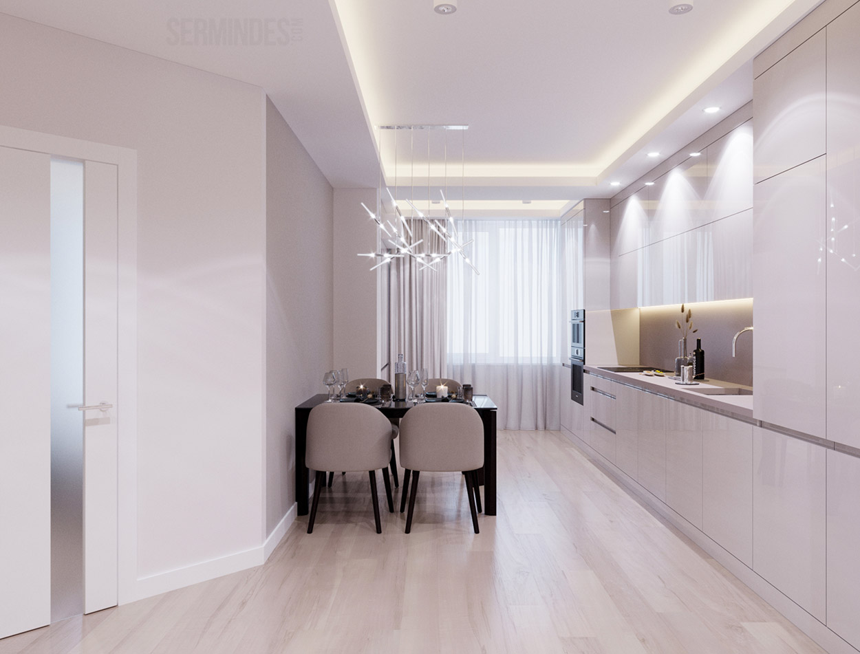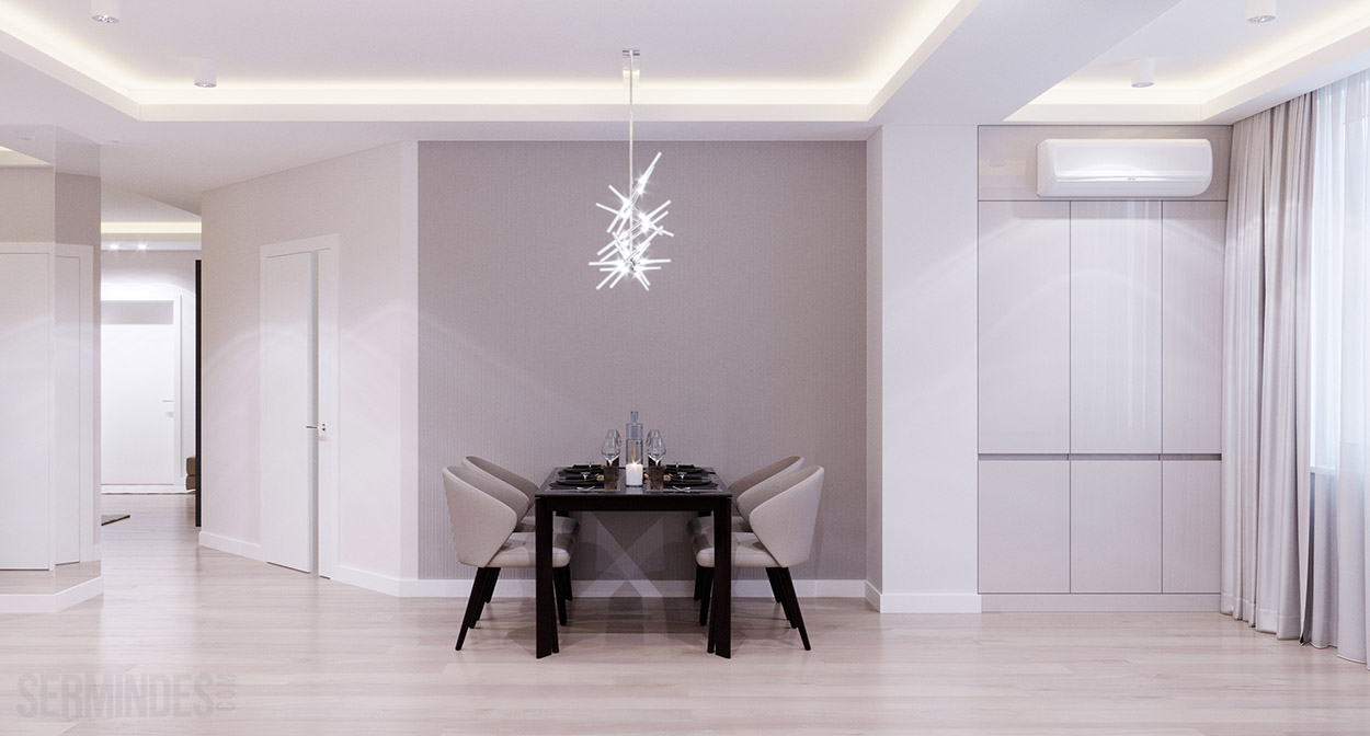 Design interior al unui apartament elaborat in stil contemporan, cu o suprafata de 81 metri patrati. Apartamentul are 2 dormitoare, bucataria unita cu salonul, garderoba aparte si o baie. Apartamentul se afla in orasul Chisinau sectorul centru.