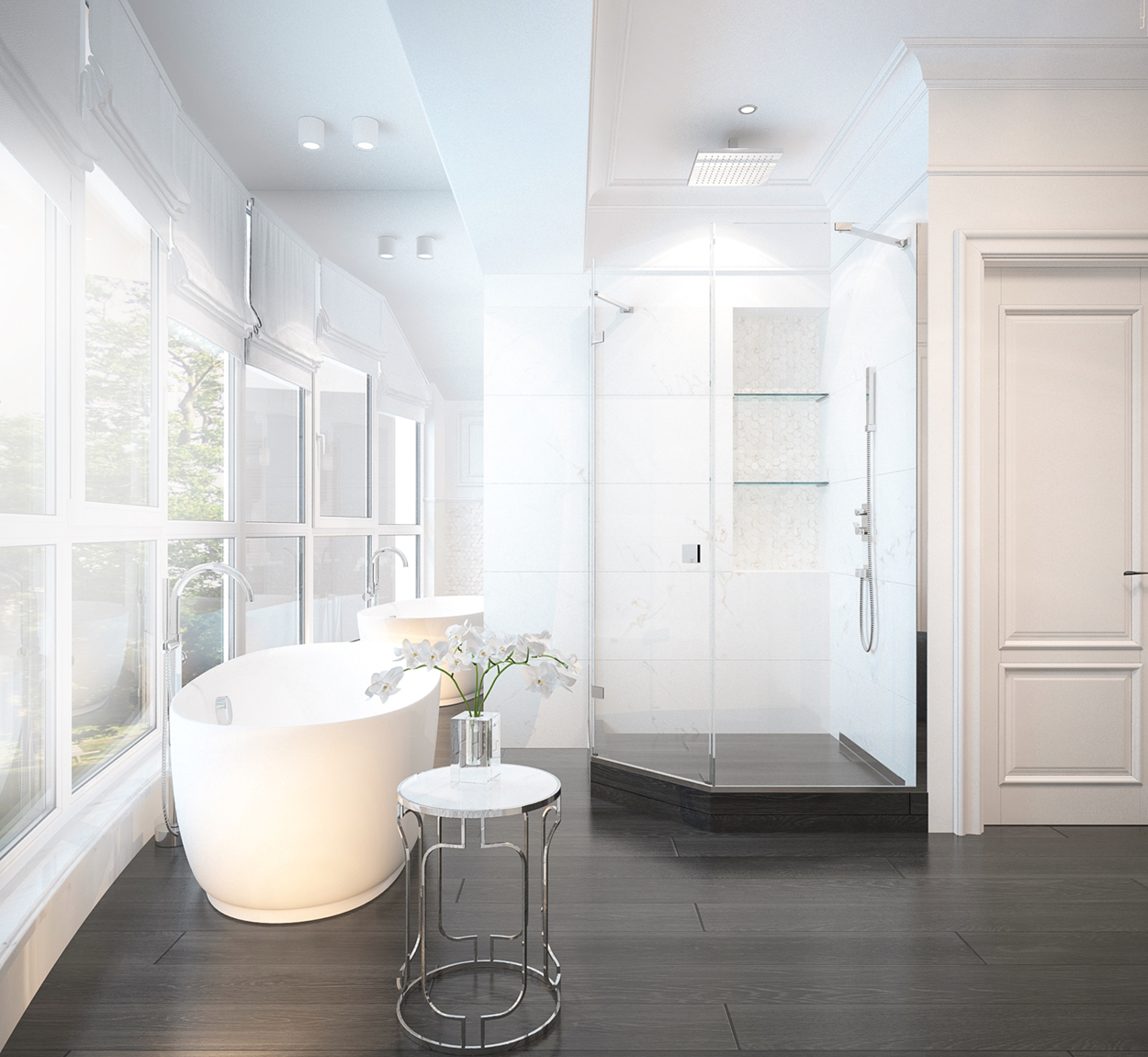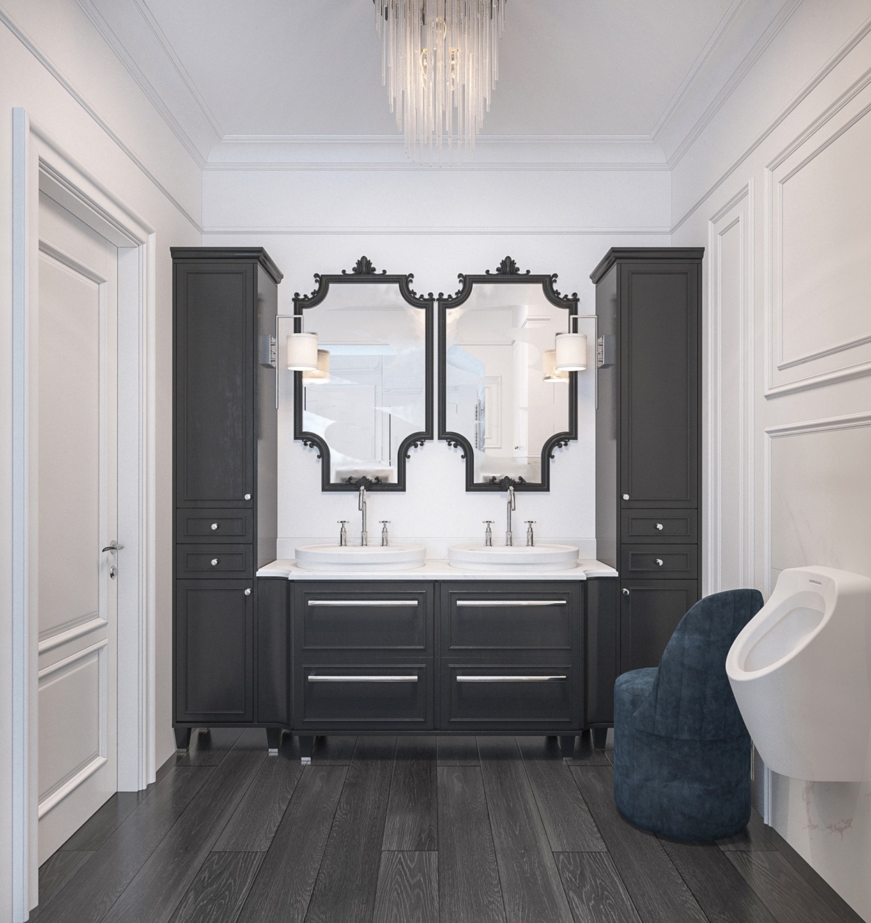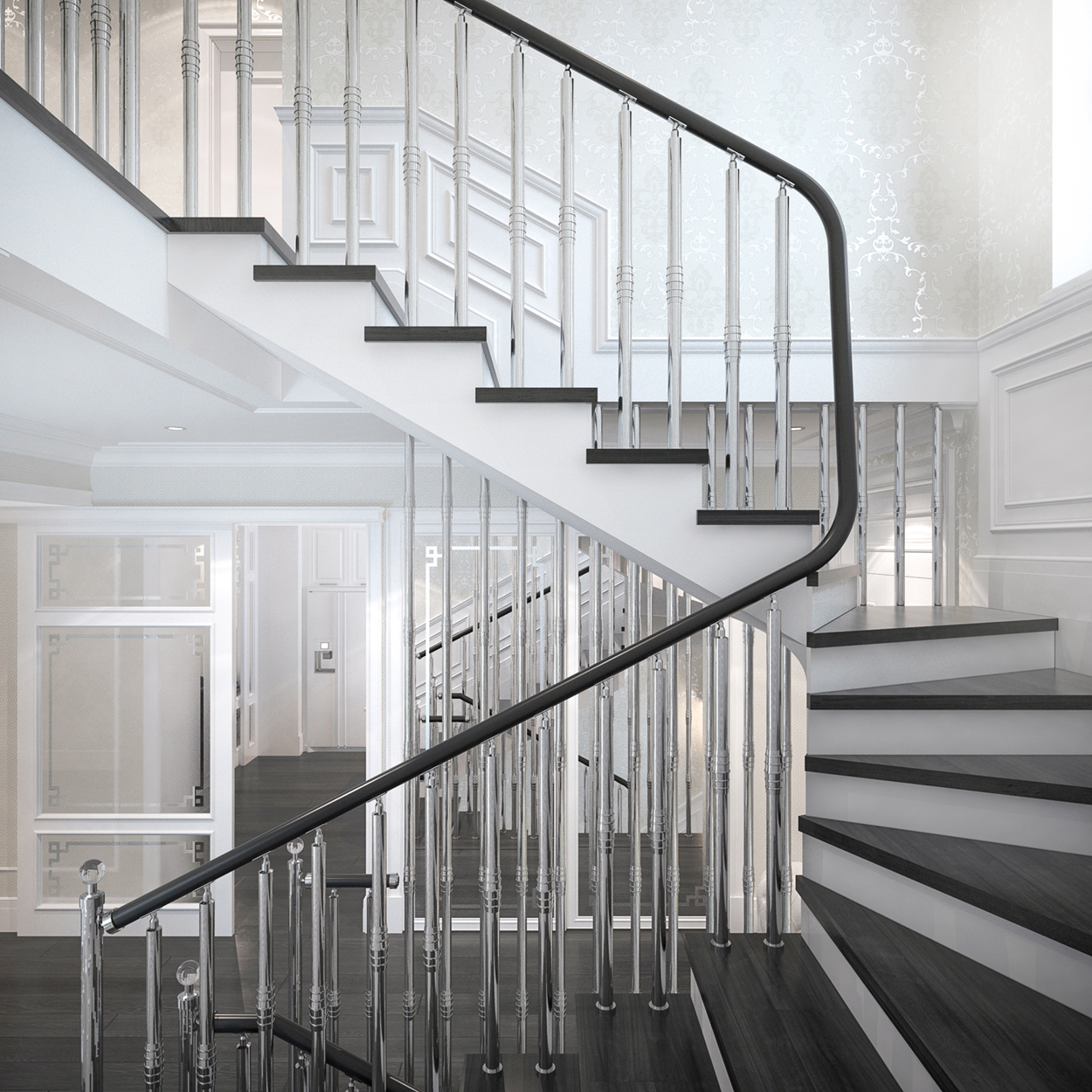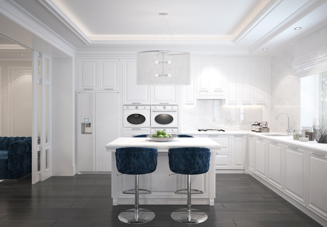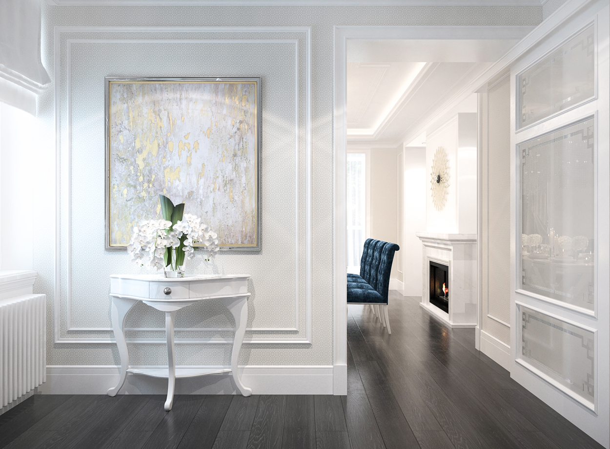 Design interior al unui townhouse format din patru nivele, subsol, demisol, parter, etaj, mansarda. Casa este compusă din 4 dormitoare, 4 băi. Salon, sufragerie, bucătărie, toate aparte. Amenajarea interioară sa optat pentru stilul clasic. Locuința se află in Chișinău, sector Răşcani.