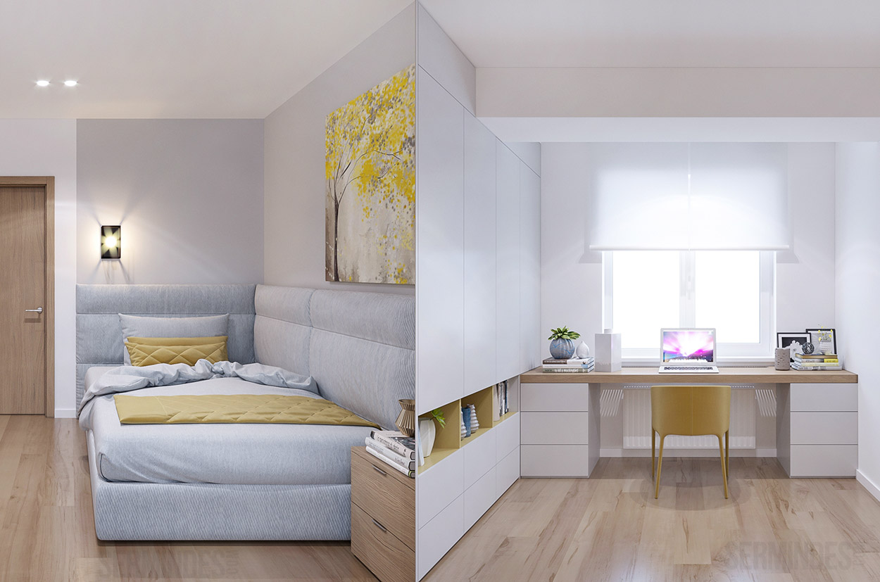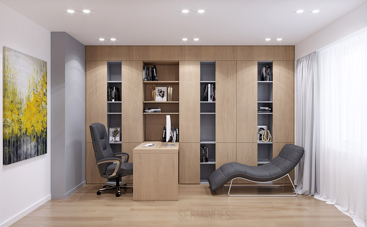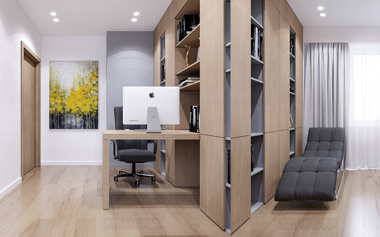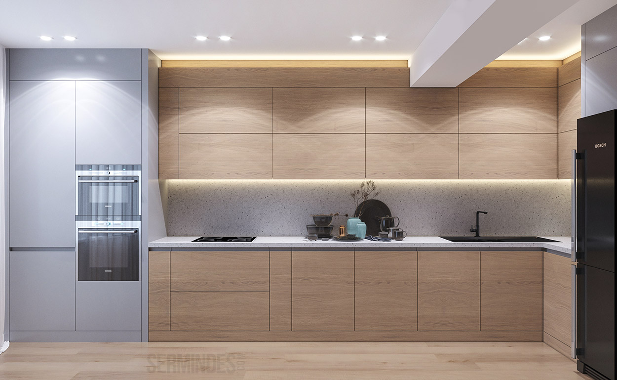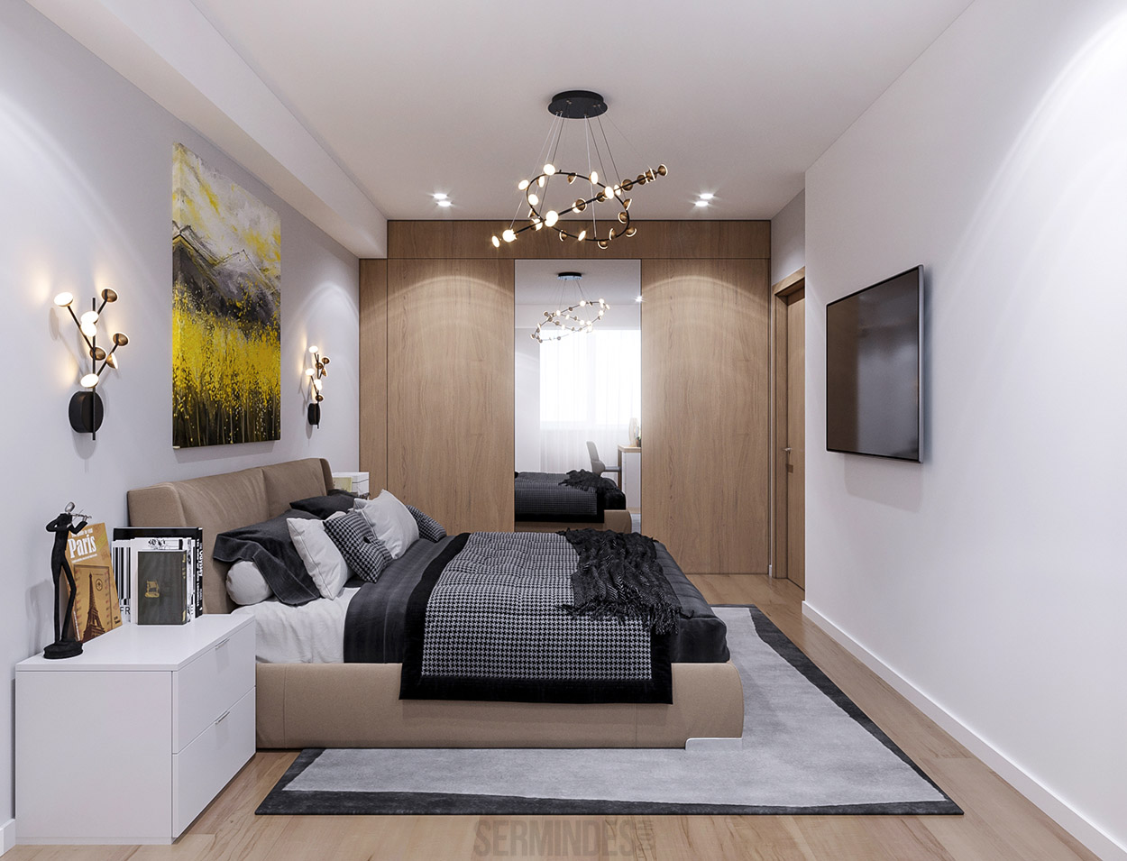 Design interior al unui apartament cu o suprafata de 124 metri patrati. Conceptul a fost elaborat in stil contemporan-minimalist. Materilalele principale, folosite la acest interior, sunt lemnul stejar, gresie-marmura, vopseaua alba si gri.