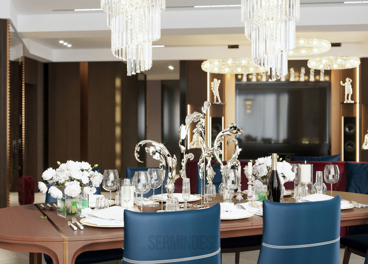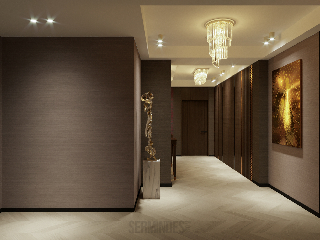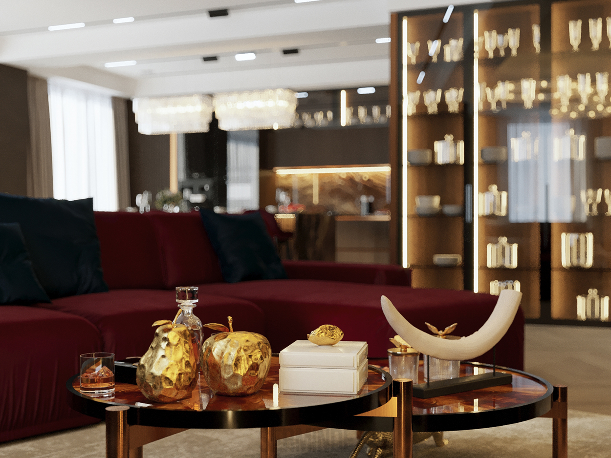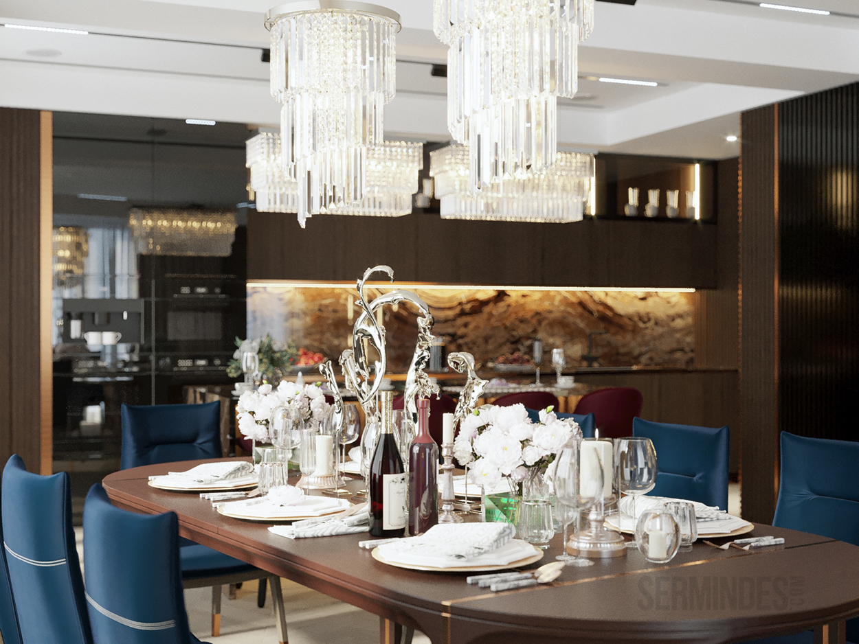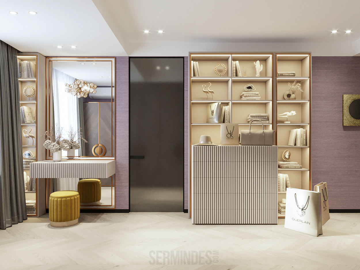Дизайн интерьера квартиры в комплексе ОАЗИС площадью 250 кв. Выполнены в стилях Contemporary Art Deco - экстравагантно, элегантно, благородно, с характером. Шеврон, елочка, латексные принты часто встречаются в интерьерах в стиле ар-деко. Богат элементами декора, цветами, геометрией.