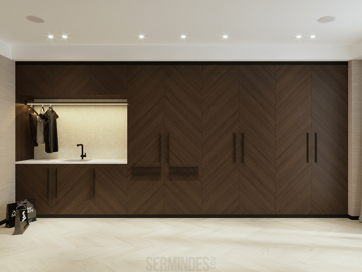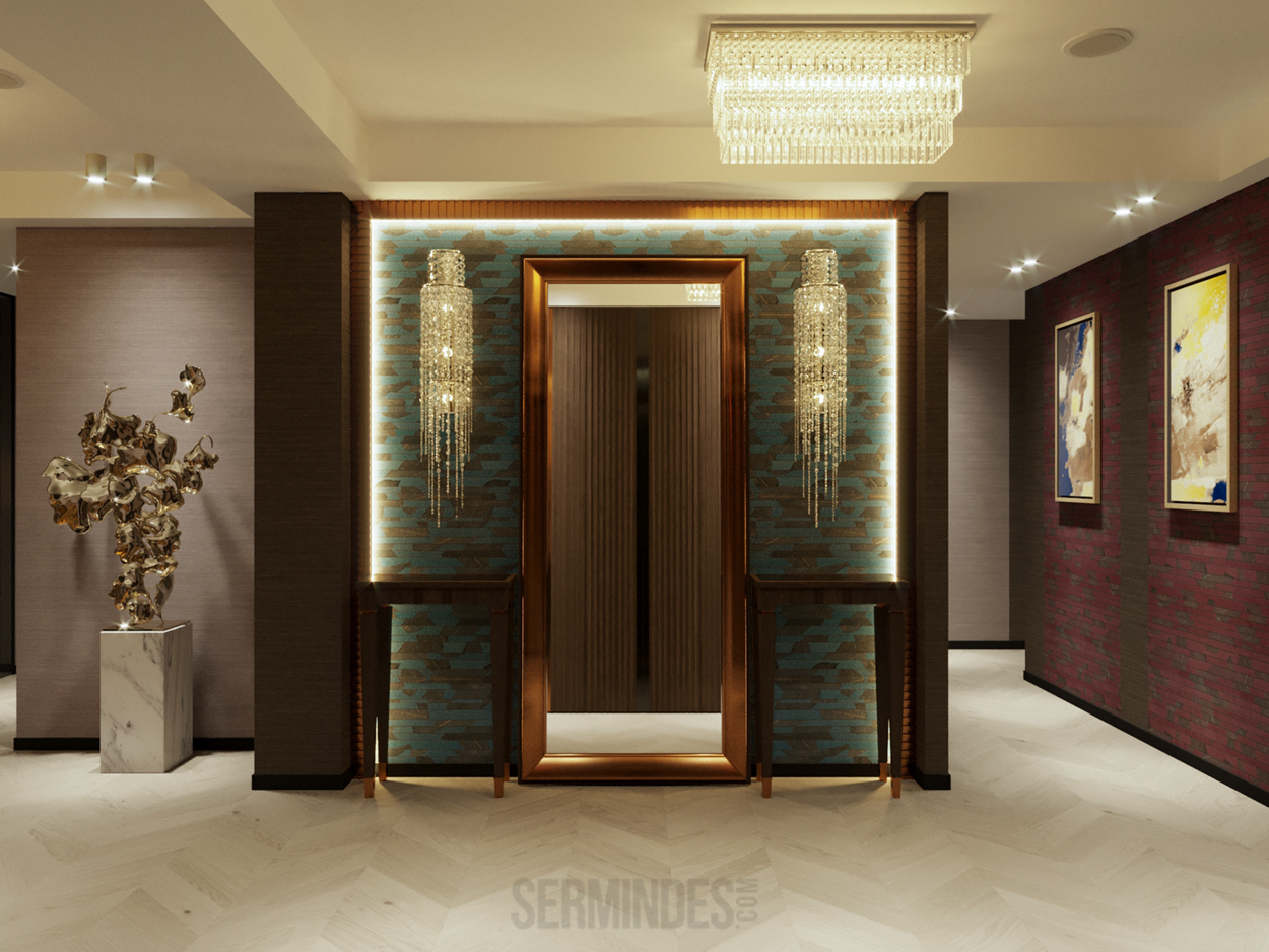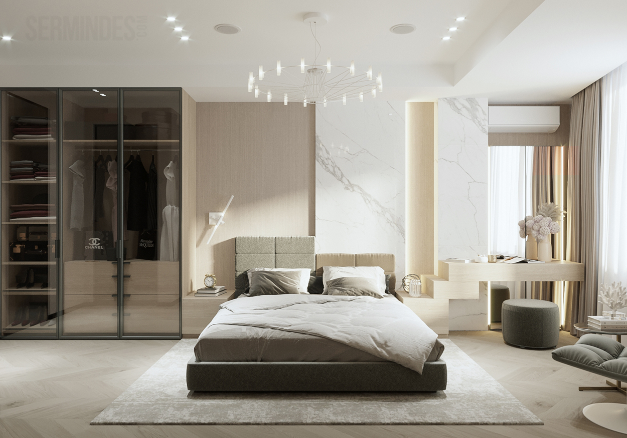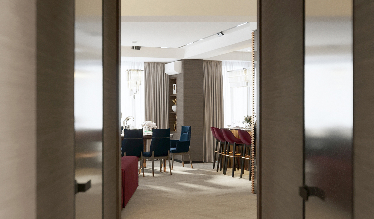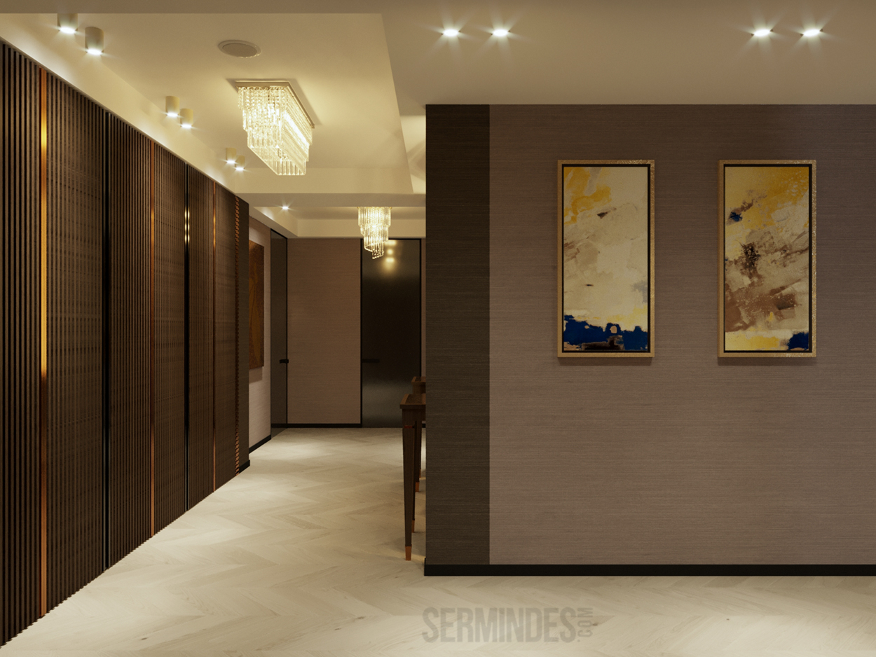 Дизайн интерьера квартиры в комплексе ОАЗИС площадью 250 кв. Выполнены в стилях Contemporary Art Deco - экстравагантно, элегантно, благородно, с характером. Шеврон, елочка, латексные принты часто встречаются в интерьерах в стиле ар-деко. Богат элементами декора, цветами, геометрией.
