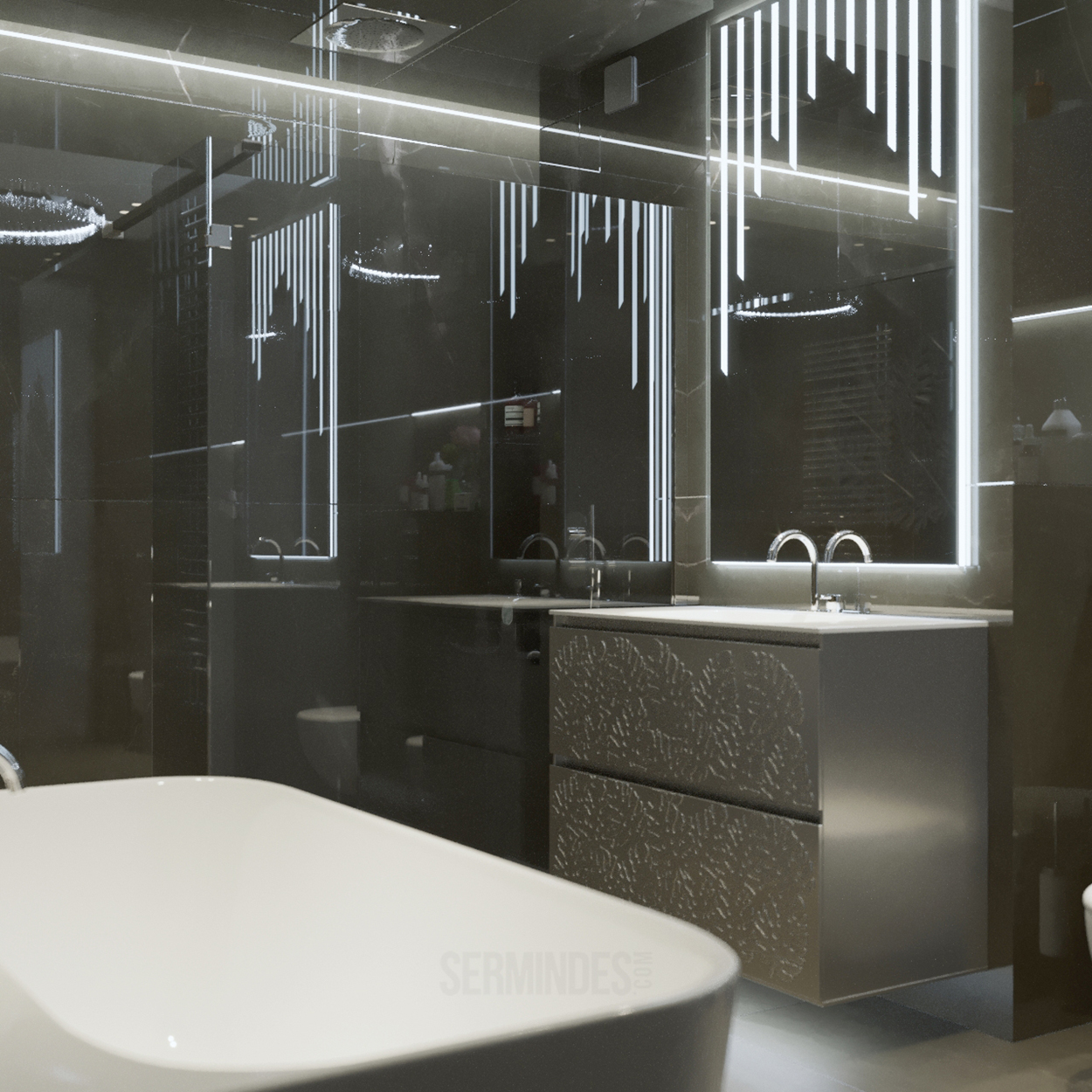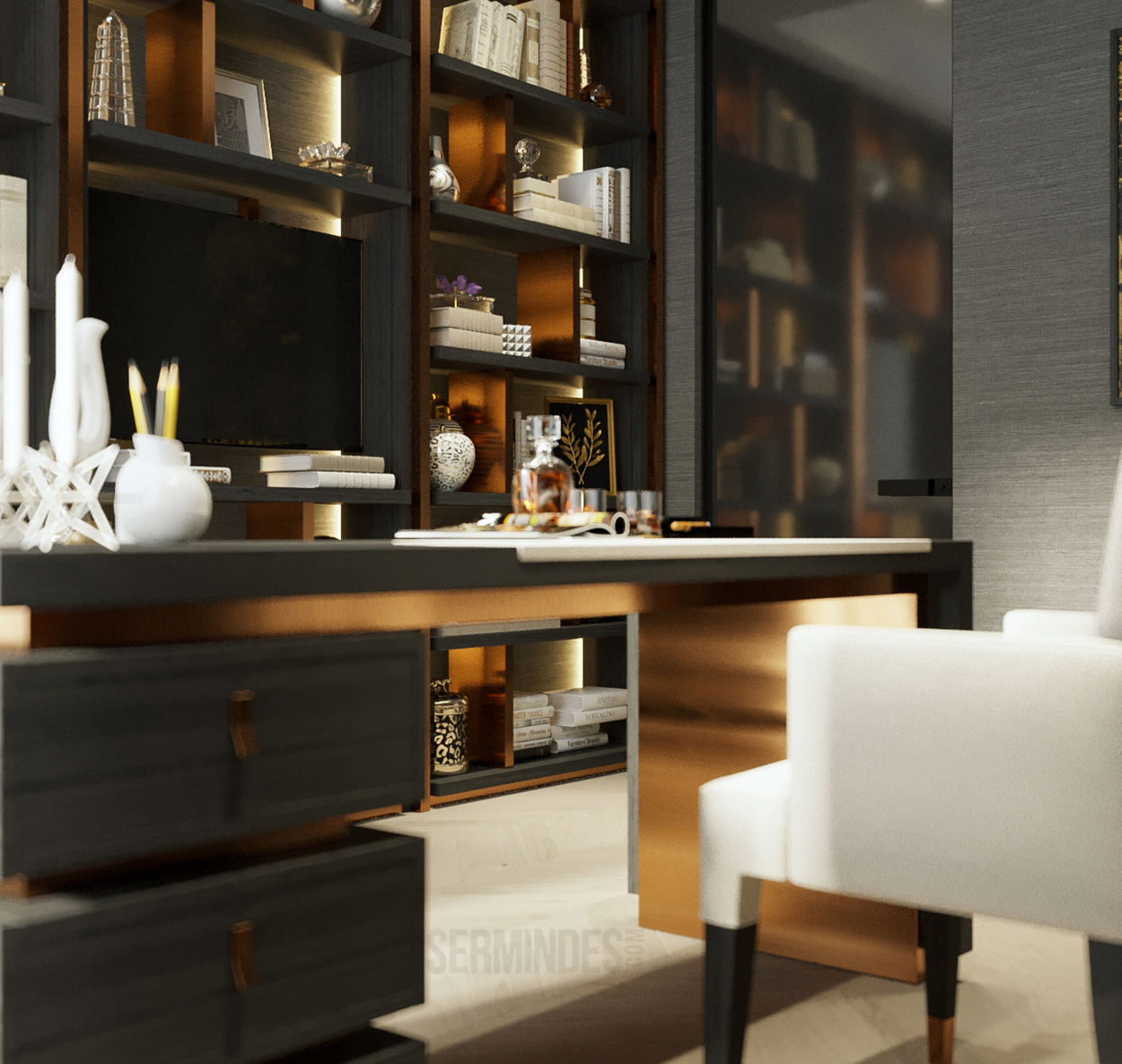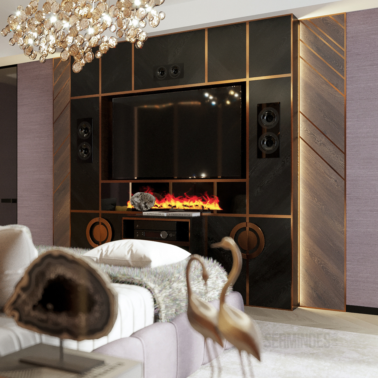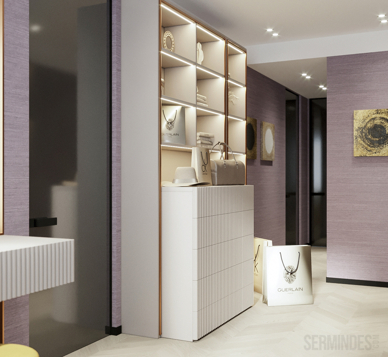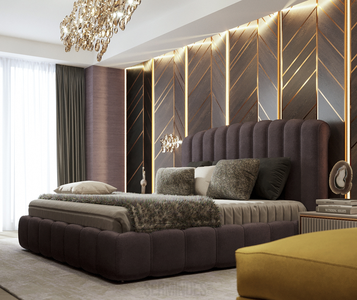 Дизайн интерьера квартиры в комплексе ОАЗИС площадью 250 кв. Выполнены в стилях Contemporary Art Deco - экстравагантно, элегантно, благородно, с характером. Шеврон, елочка, латексные принты часто встречаются в интерьерах в стиле ар-деко. Богат элементами декора, цветами, геометрией.