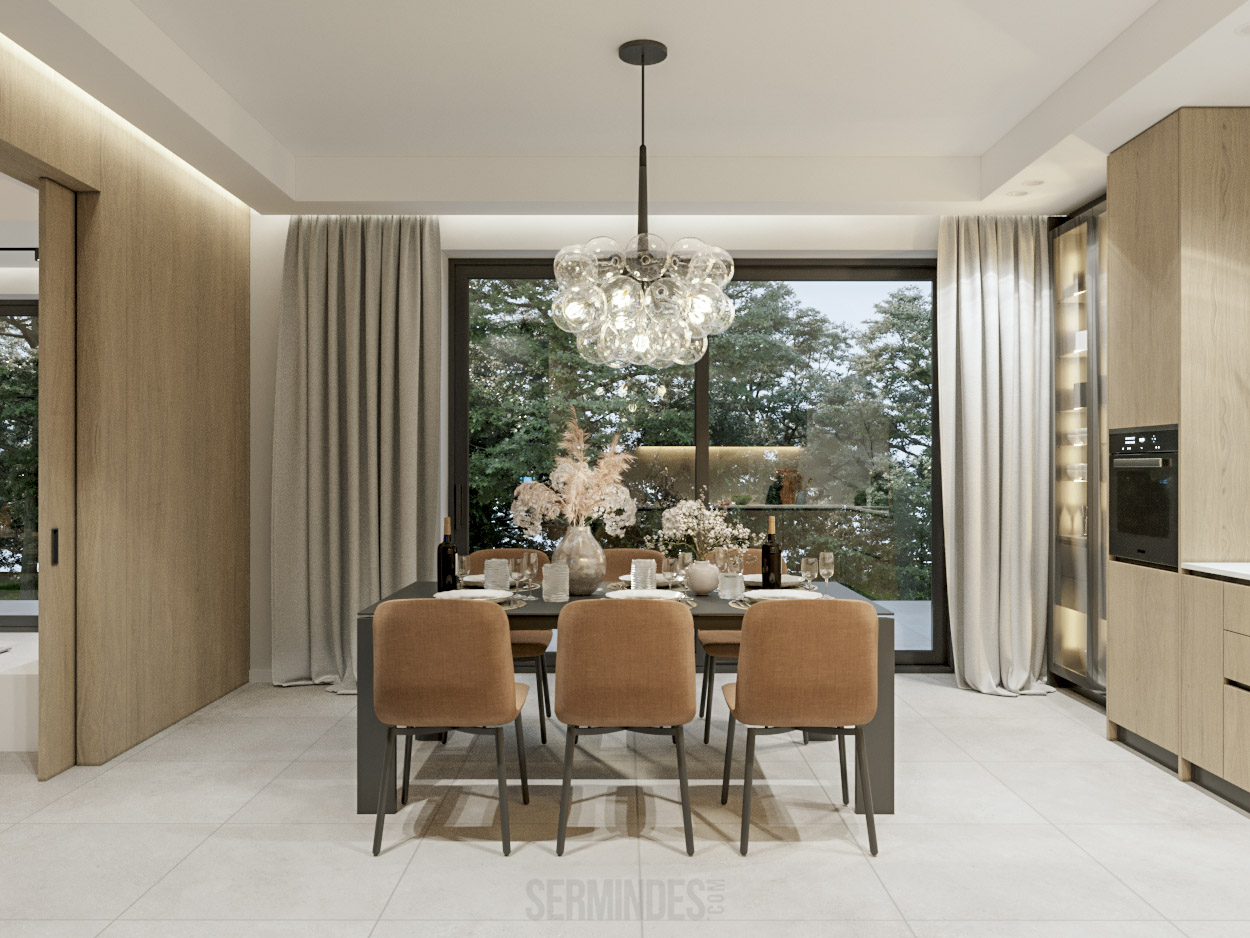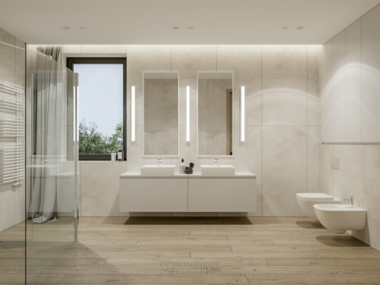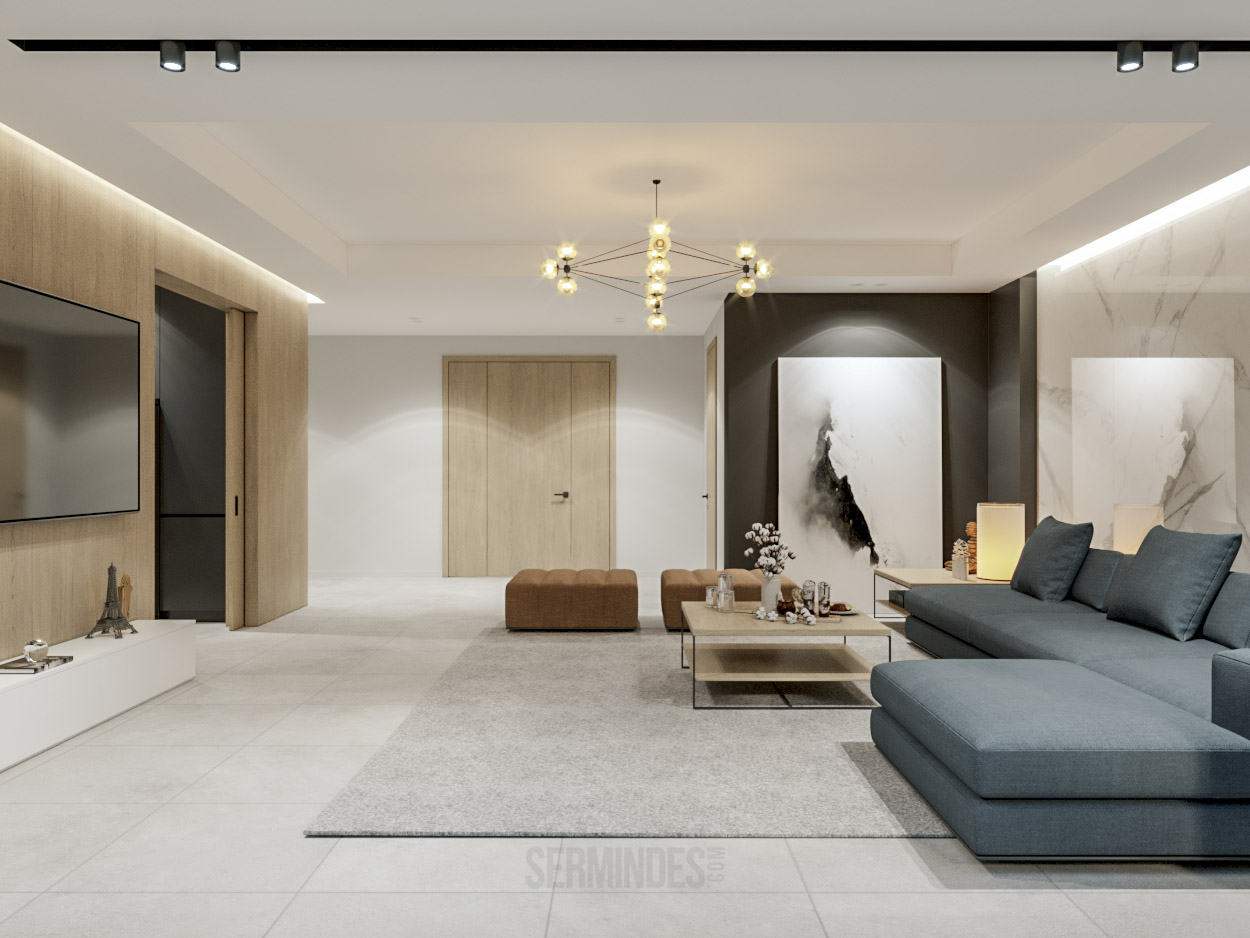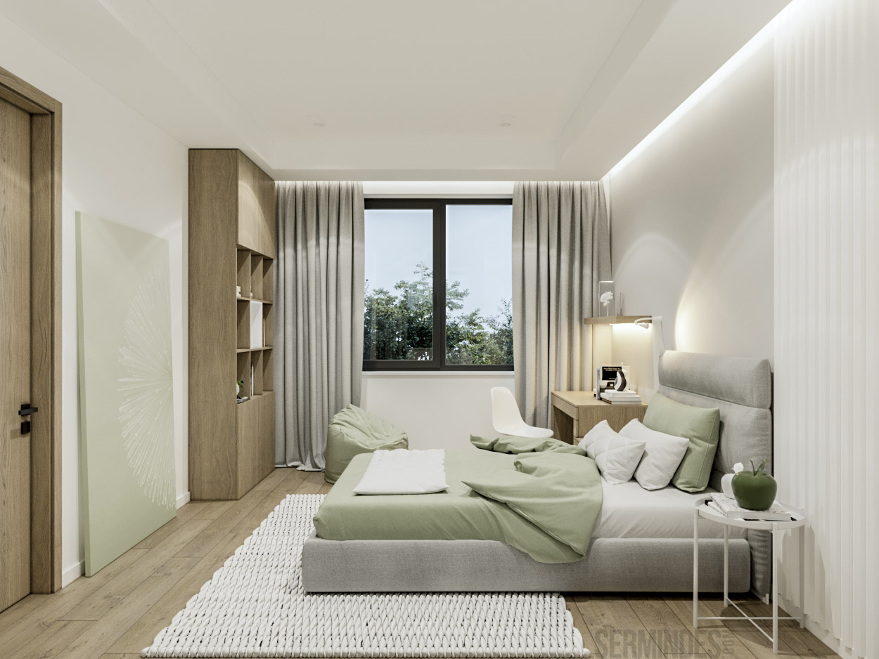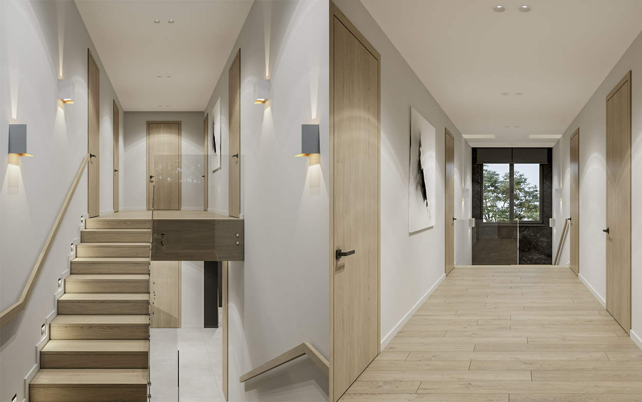 Дизайн интерьера дома. Расположен в Кишиневе, Республика Молдова. Дом состоит из цокольного и первого этажа, с просторной гостиной с выходом на террасу, тремя спальнями, кабинетом, тремя санузлами, кухней-гостиной. Интерьер выполнен в минималистично-современном стиле с простыми формами, иногда с акцентами. Базовые текстуры — дерево, теплый бетон и мрамор, остальные — просто краска от белого до антрацита. Достигнута цель большого пространства, с крупным зонированием в качестве акцента-контраста. Дизайн интерьера Пояна Домняска.