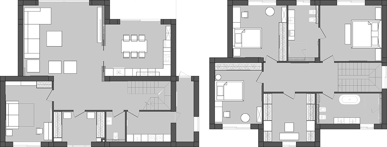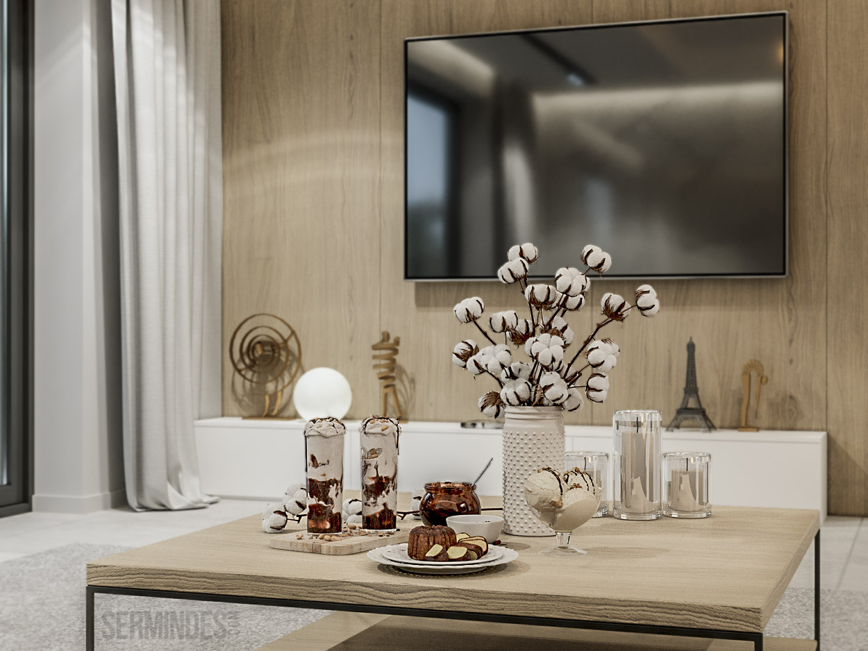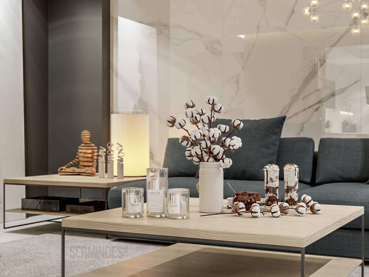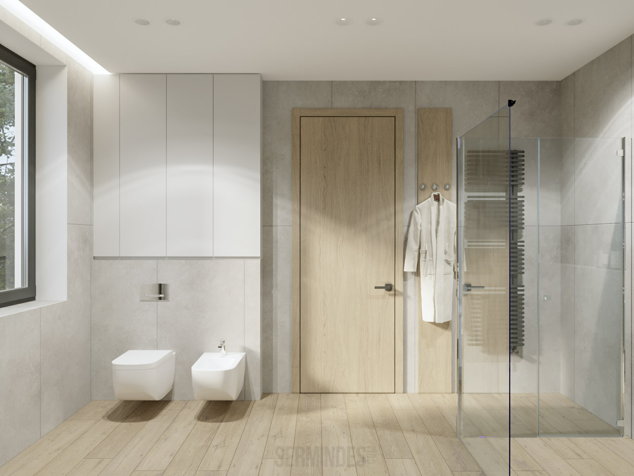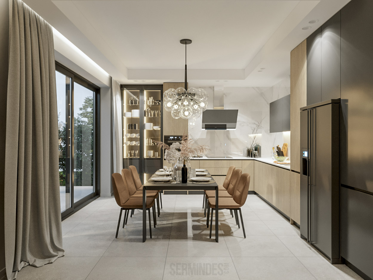 Дизайн интерьера дома. Расположен в Кишиневе, Республика Молдова. Дом состоит из цокольного и первого этажа, с просторной гостиной с выходом на террасу, тремя спальнями, кабинетом, тремя санузлами, кухней-гостиной. Интерьер выполнен в минималистично-современном стиле с простыми формами, иногда с акцентами. Базовые текстуры — дерево, теплый бетон и мрамор, остальные — просто краска от белого до антрацита. Достигнута цель большого пространства, с крупным зонированием в качестве акцента-контраста. Дизайн интерьера Пояна Домняска.