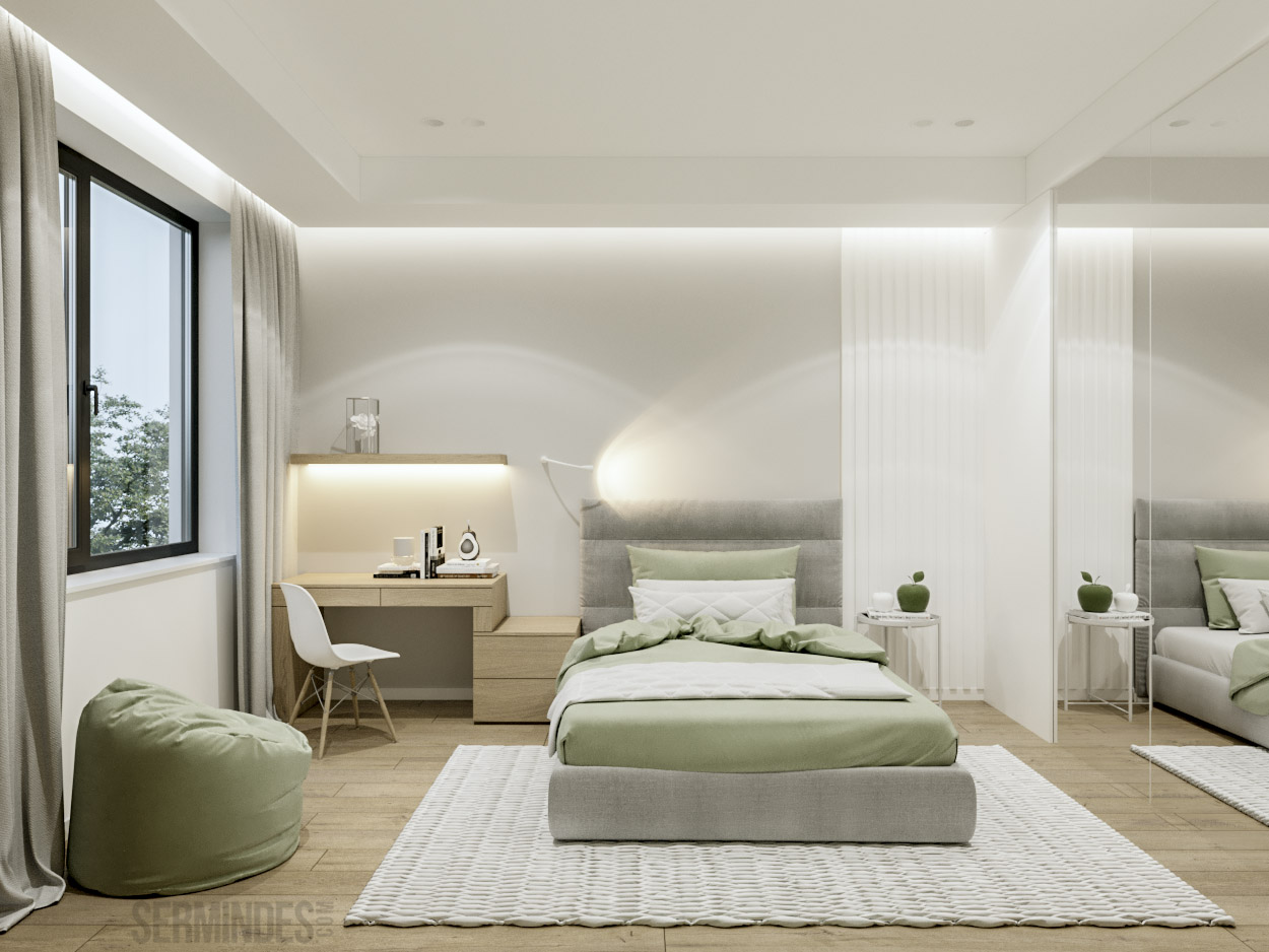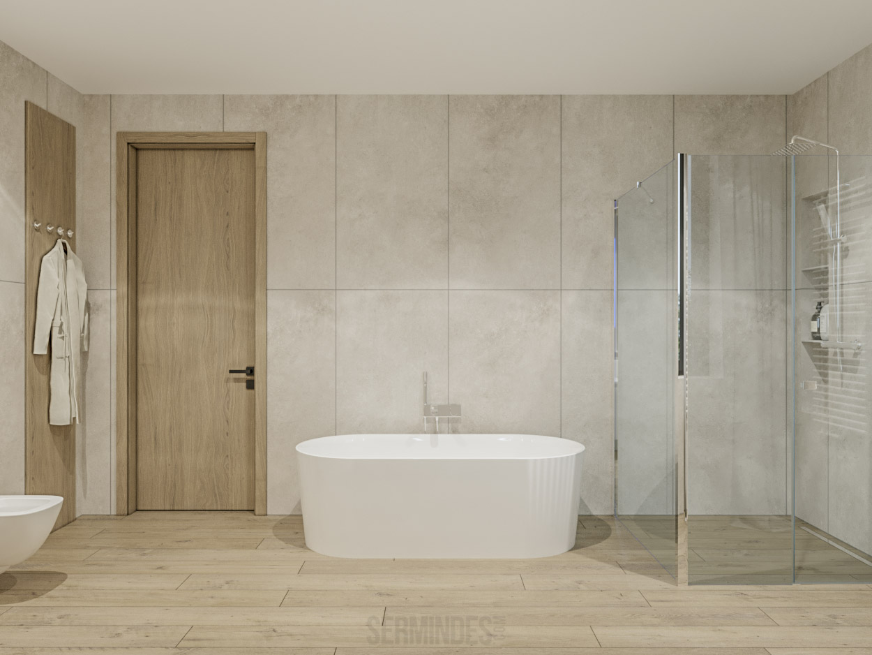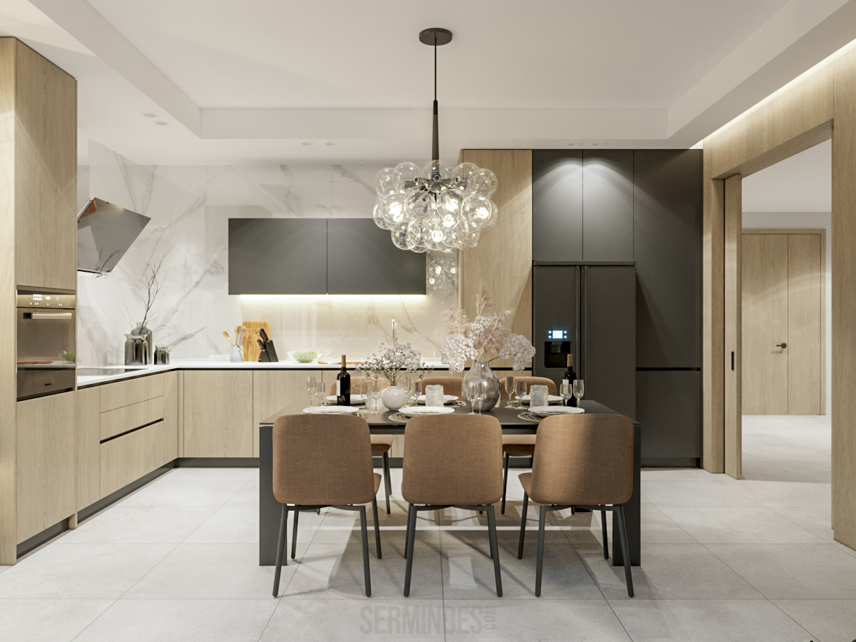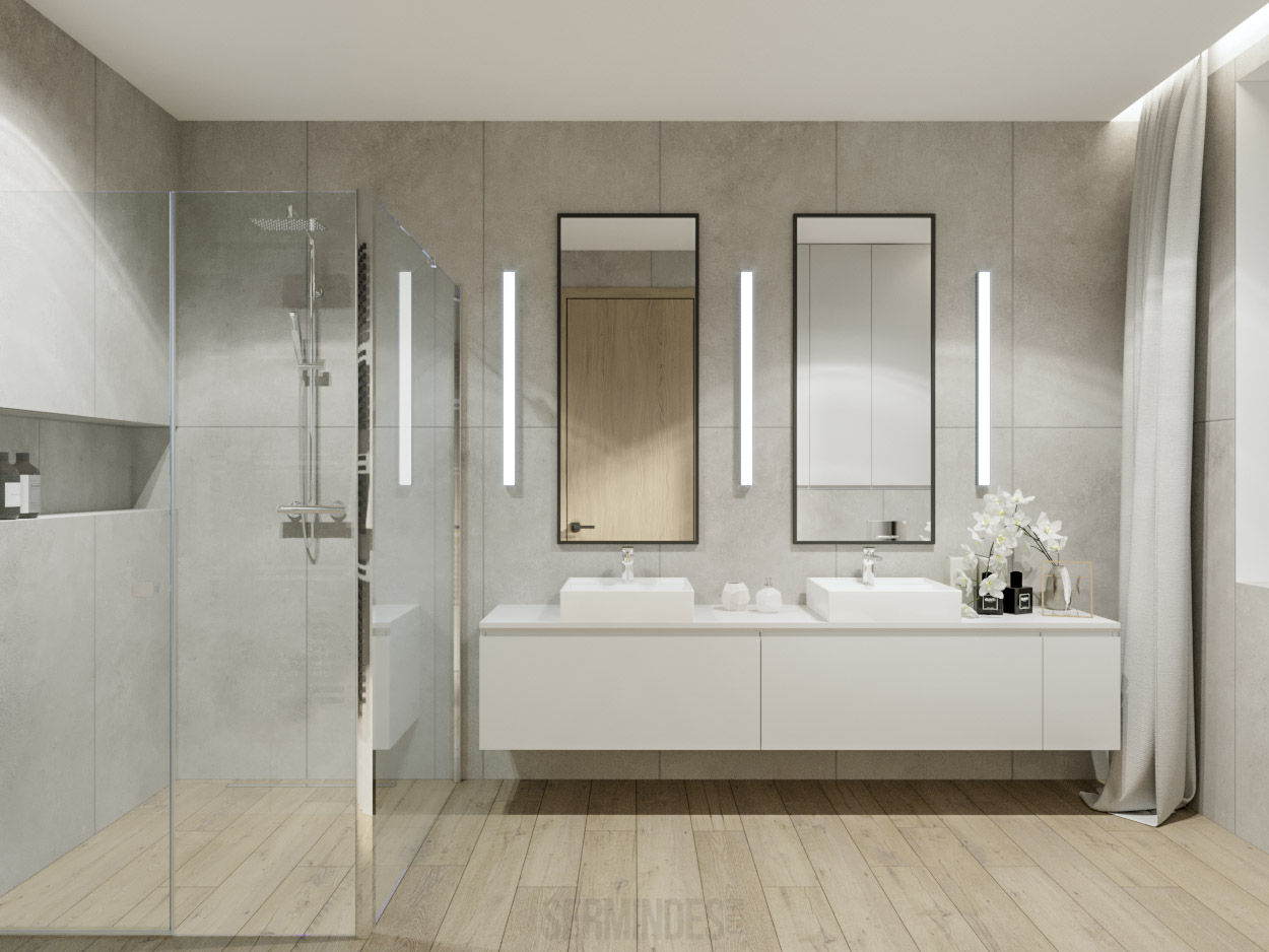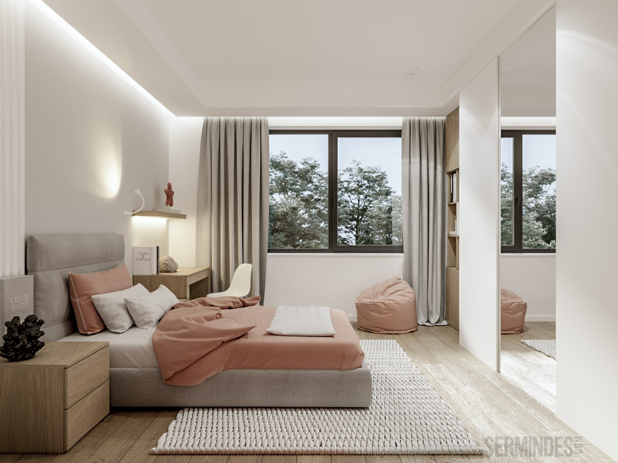 Дизайн интерьера дома. Расположен в Кишиневе, Республика Молдова. Дом состоит из цокольного и первого этажа, с просторной гостиной с выходом на террасу, тремя спальнями, кабинетом, тремя санузлами, кухней-гостиной. Интерьер выполнен в минималистично-современном стиле с простыми формами, иногда с акцентами. Базовые текстуры — дерево, теплый бетон и мрамор, остальные — просто краска от белого до антрацита. Достигнута цель большого пространства, с крупным зонированием в качестве акцента-контраста. Дизайн интерьера Пояна Домняска.