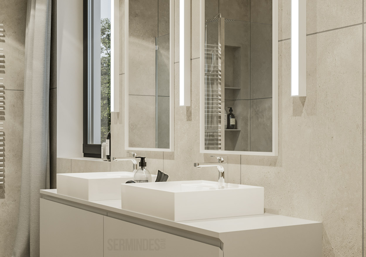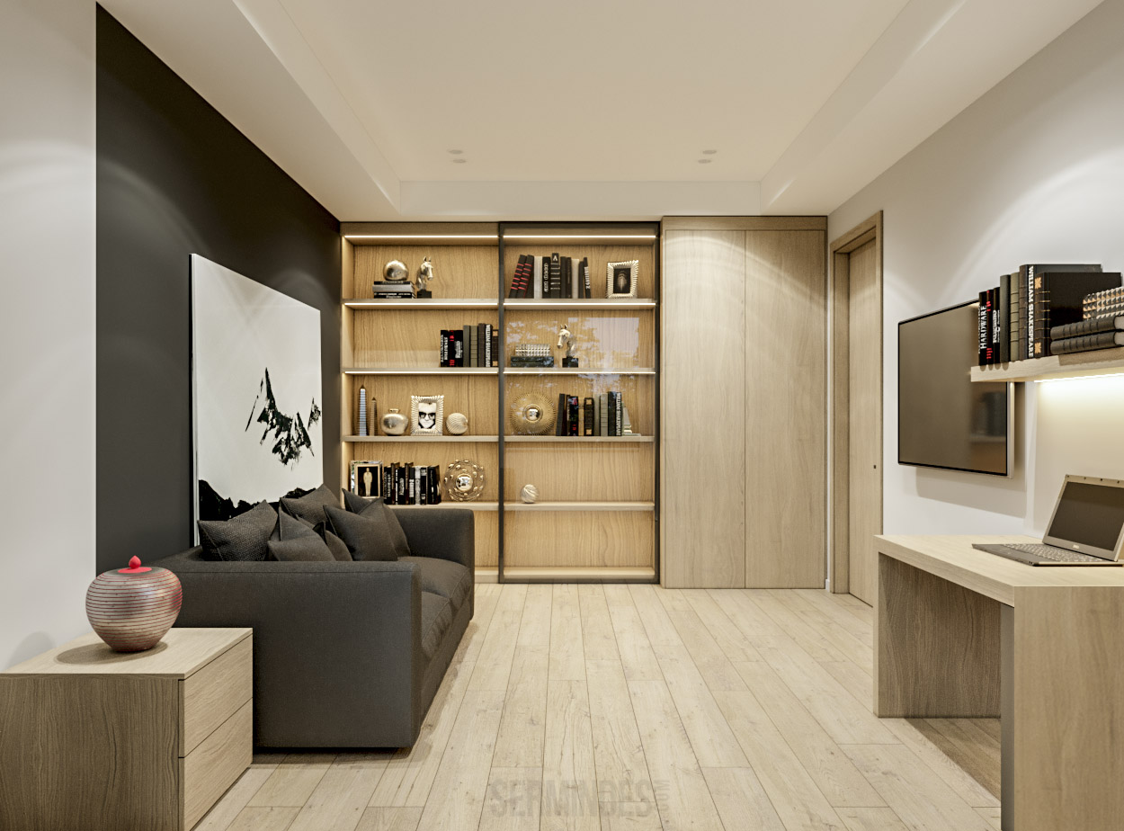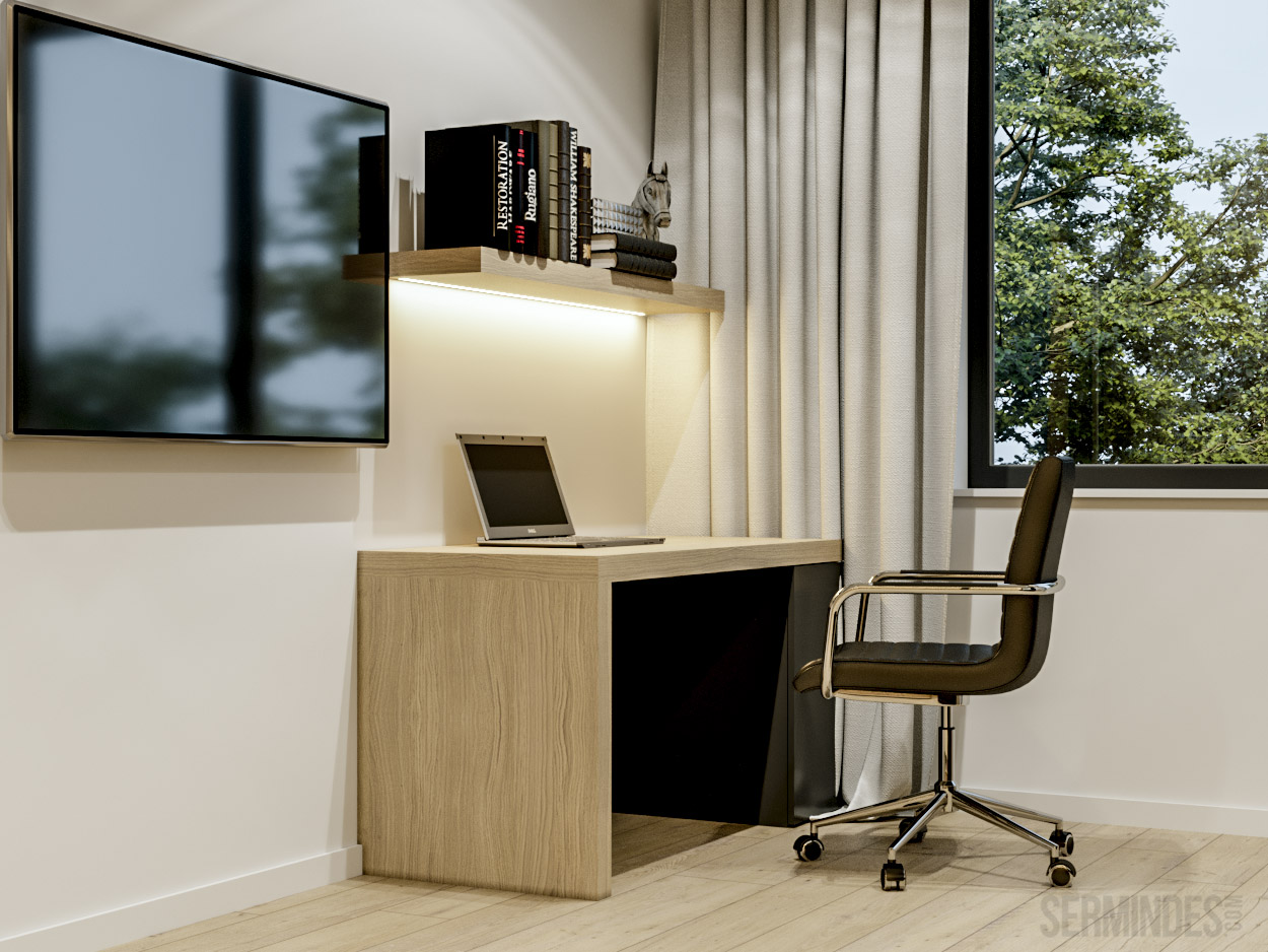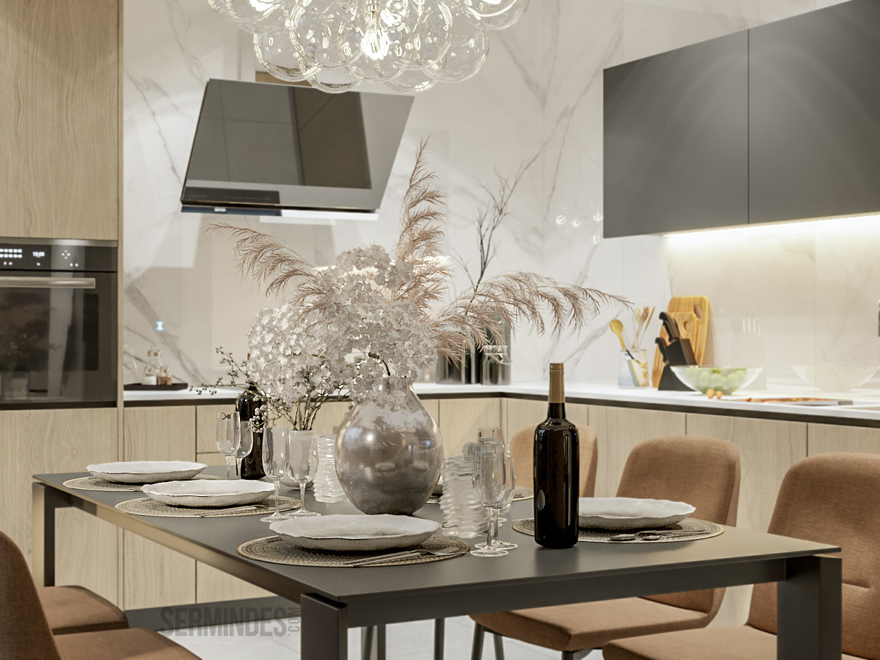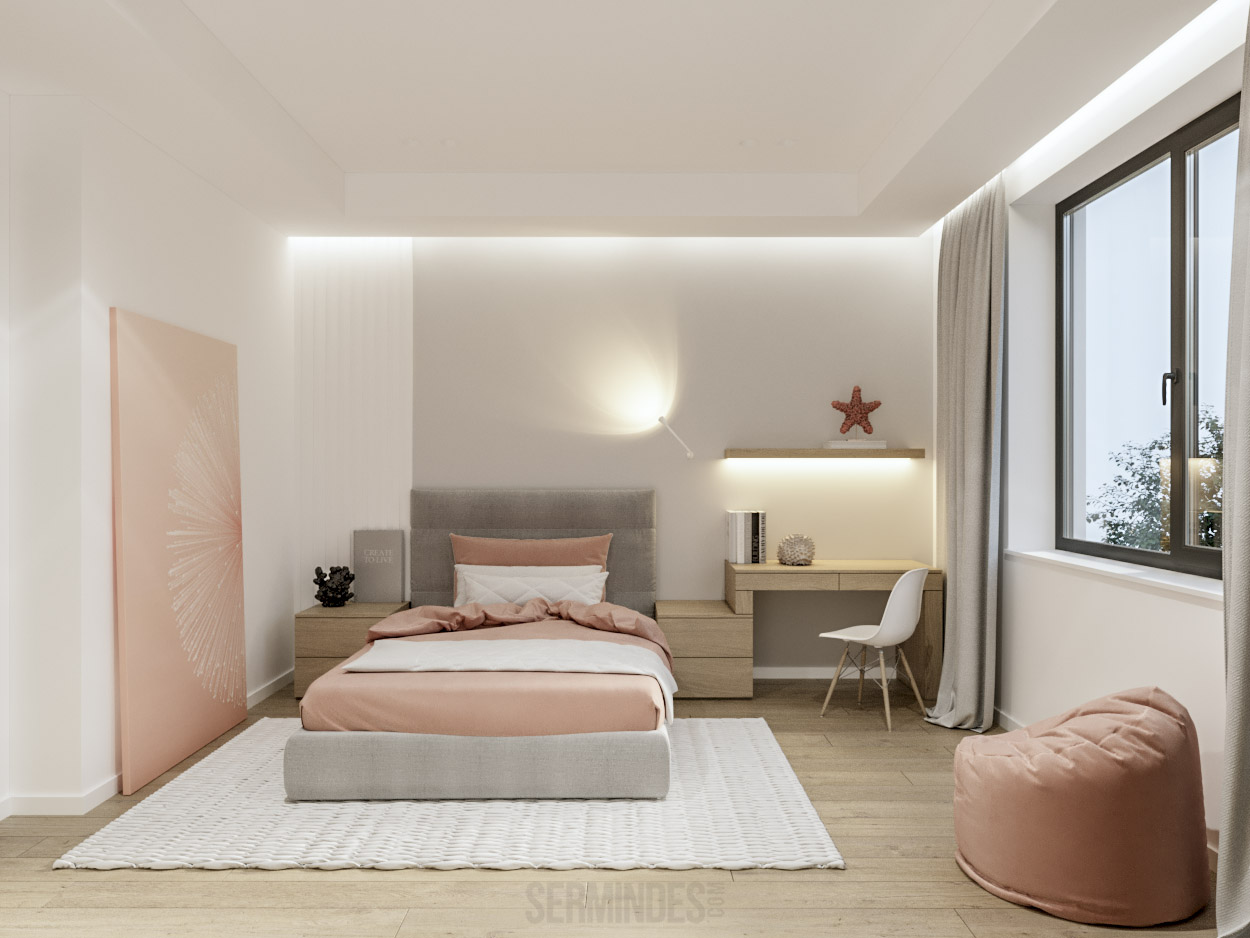 Дизайн интерьера дома. Расположен в Кишиневе, Республика Молдова. Дом состоит из цокольного и первого этажа, с просторной гостиной с выходом на террасу, тремя спальнями, кабинетом, тремя санузлами, кухней-гостиной. Интерьер выполнен в минималистично-современном стиле с простыми формами, иногда с акцентами. Базовые текстуры — дерево, теплый бетон и мрамор, остальные — просто краска от белого до антрацита. Достигнута цель большого пространства, с крупным зонированием в качестве акцента-контраста. Дизайн интерьера Пояна Домняска.