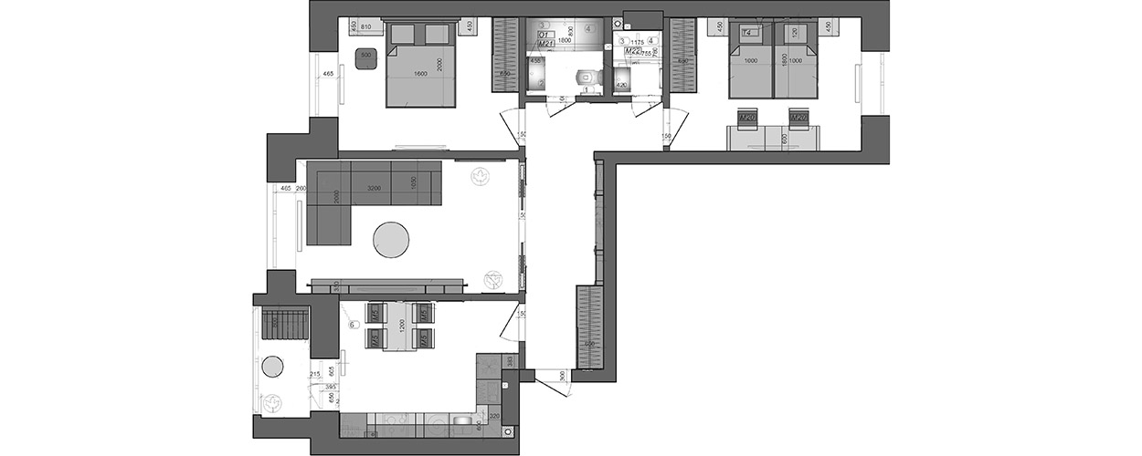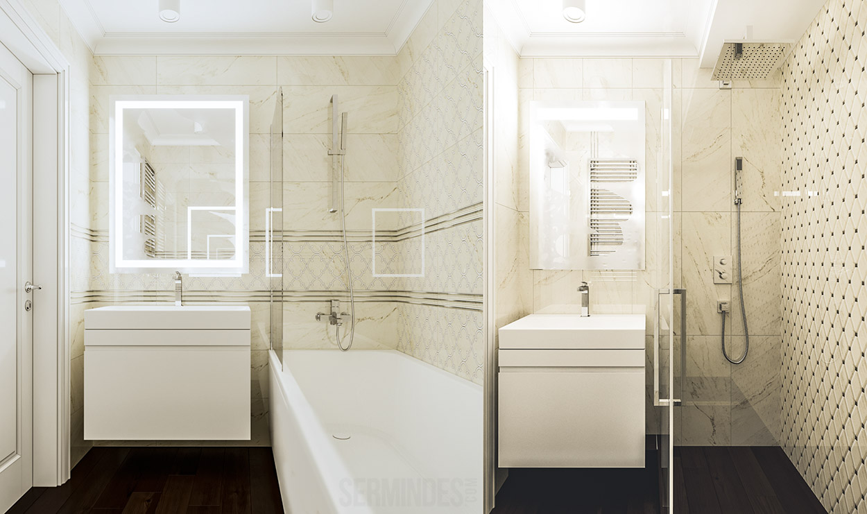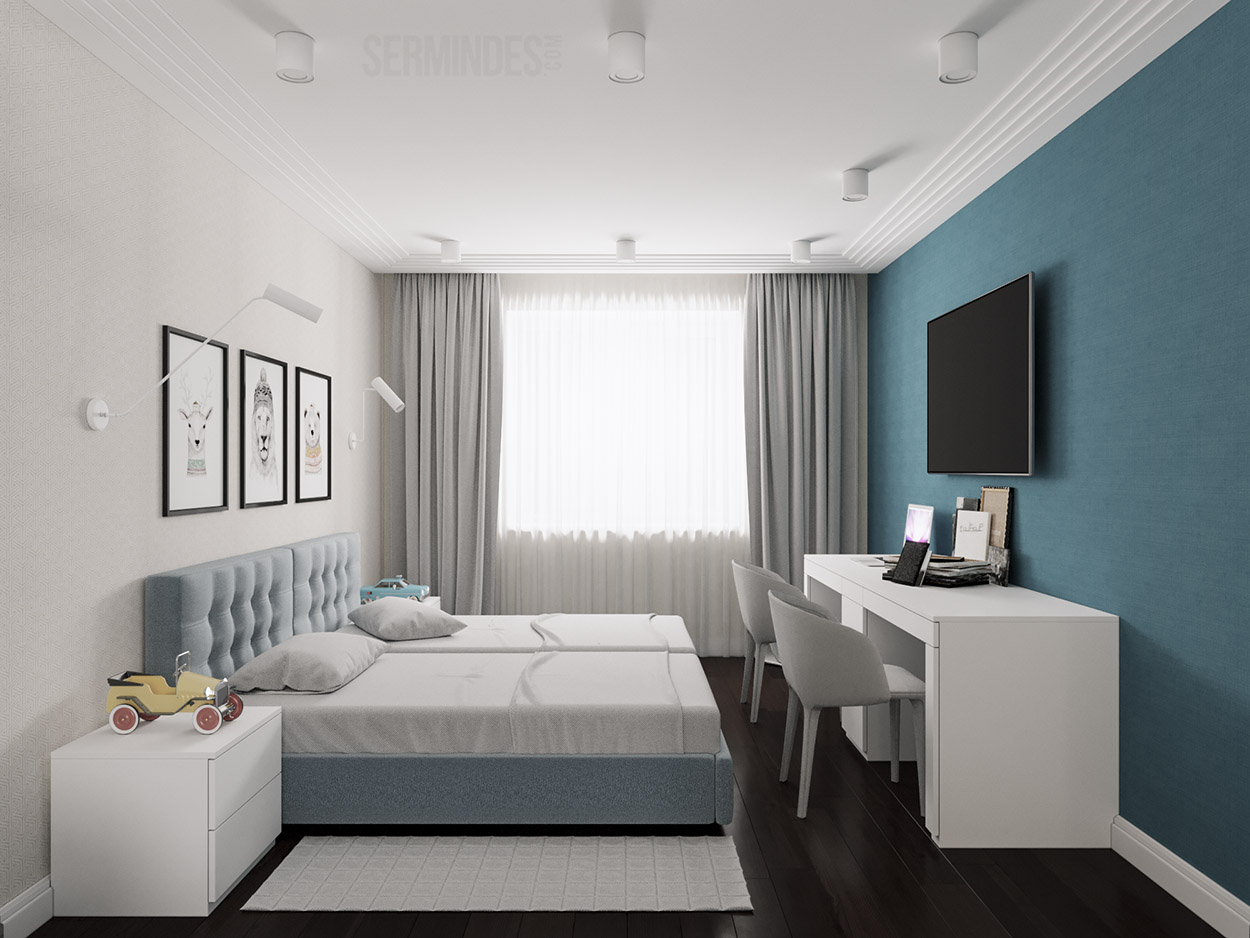 Квартира площадью 95 кв.м. Дизайн интерьера выполнен в современном стиле с использованием пастельных и контрастных цветов.