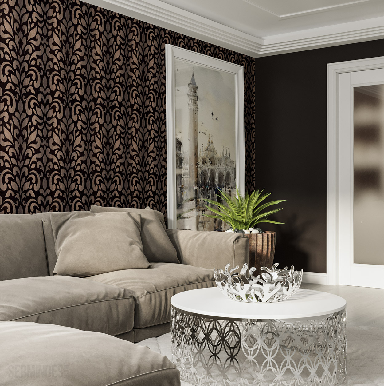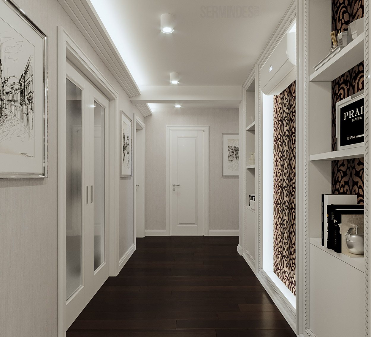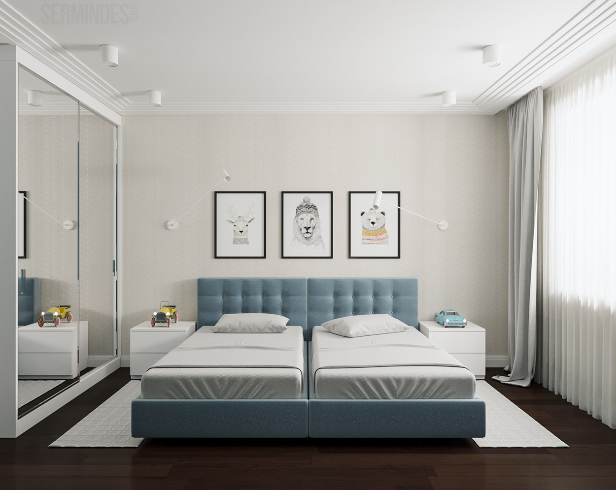 Квартира площадью 95 кв.м. Дизайн интерьера выполнен в современном стиле с использованием пастельных и контрастных цветов.