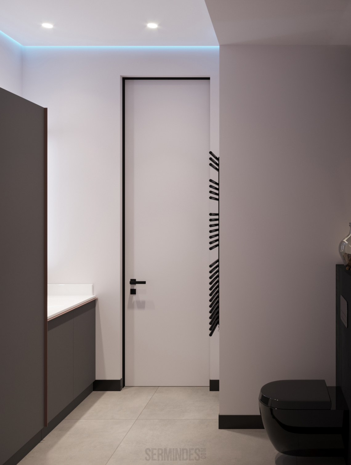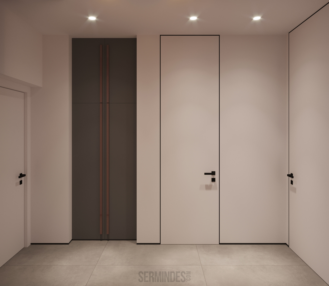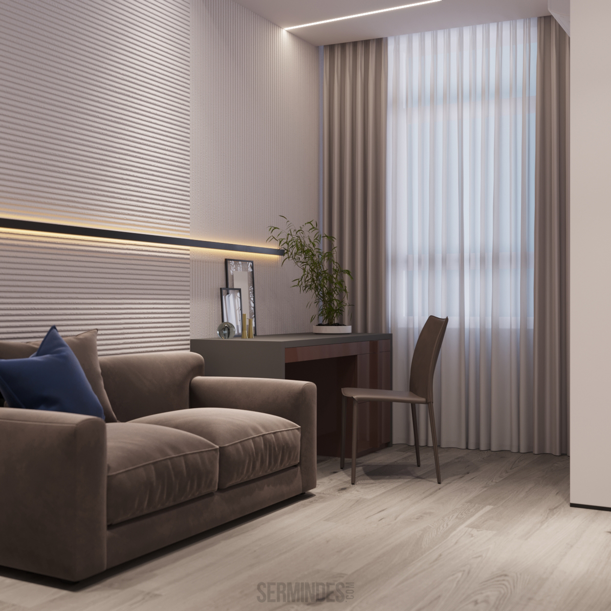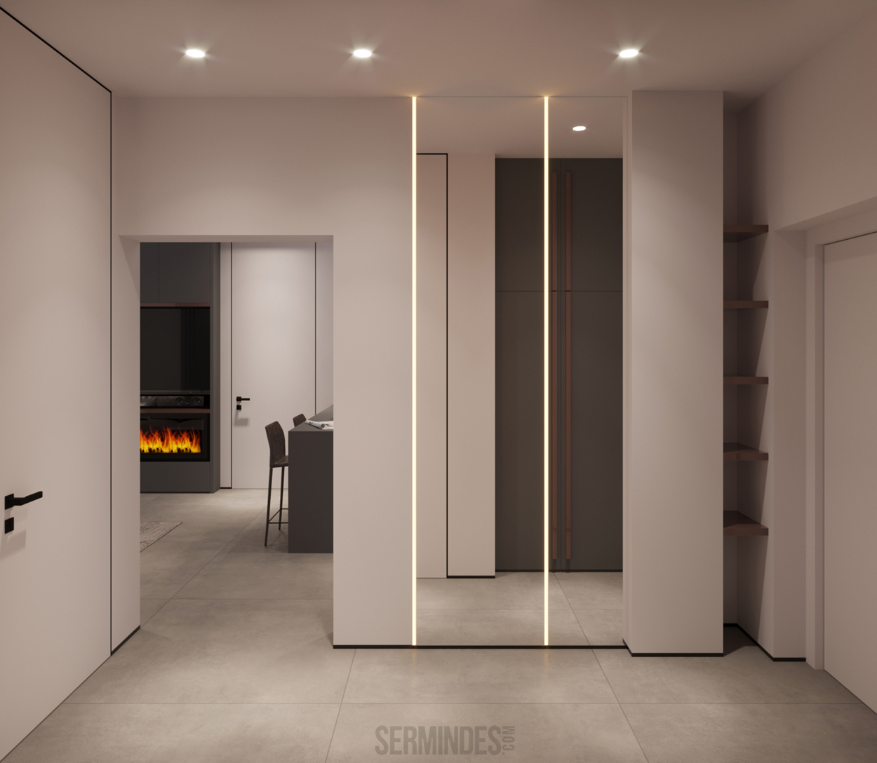 Комплексный дизайн интерьера Оазис. Внутренняя планировка квартиры площадью 71 м.кв. Дизайн интерьера выполнен в стиле модерн-минимализм, монохромная цветовая граница и контраст.