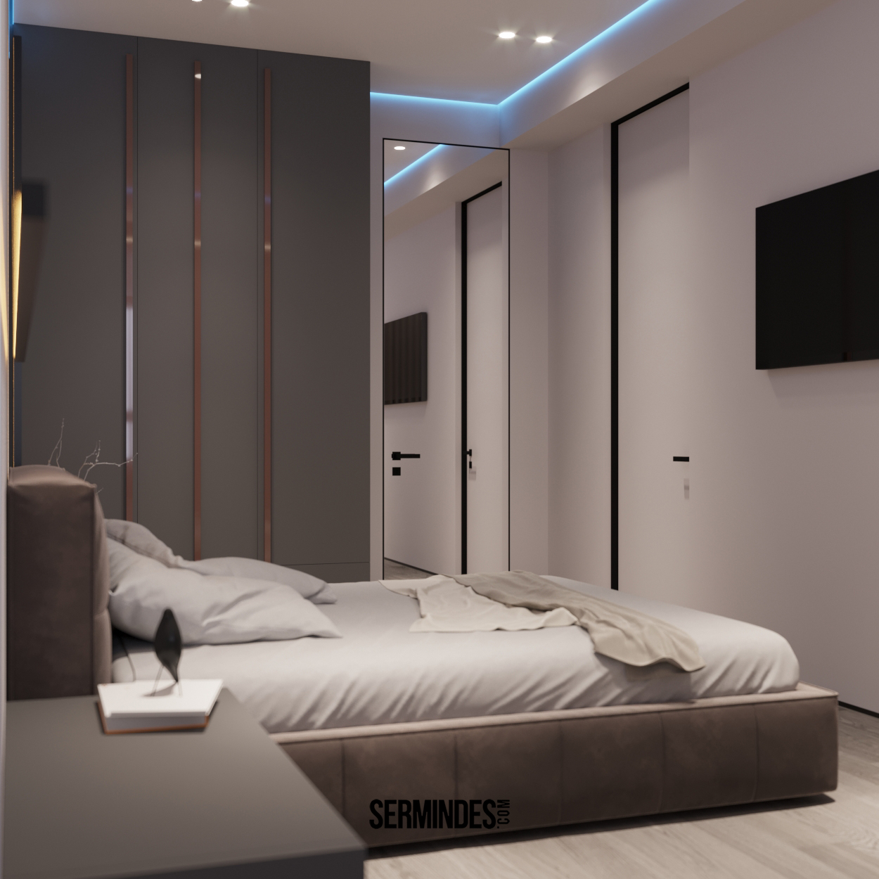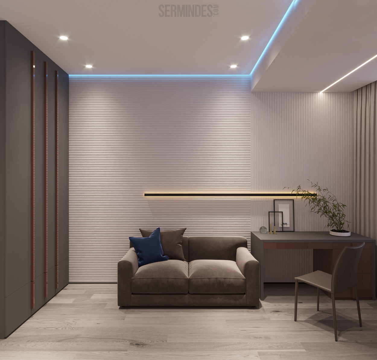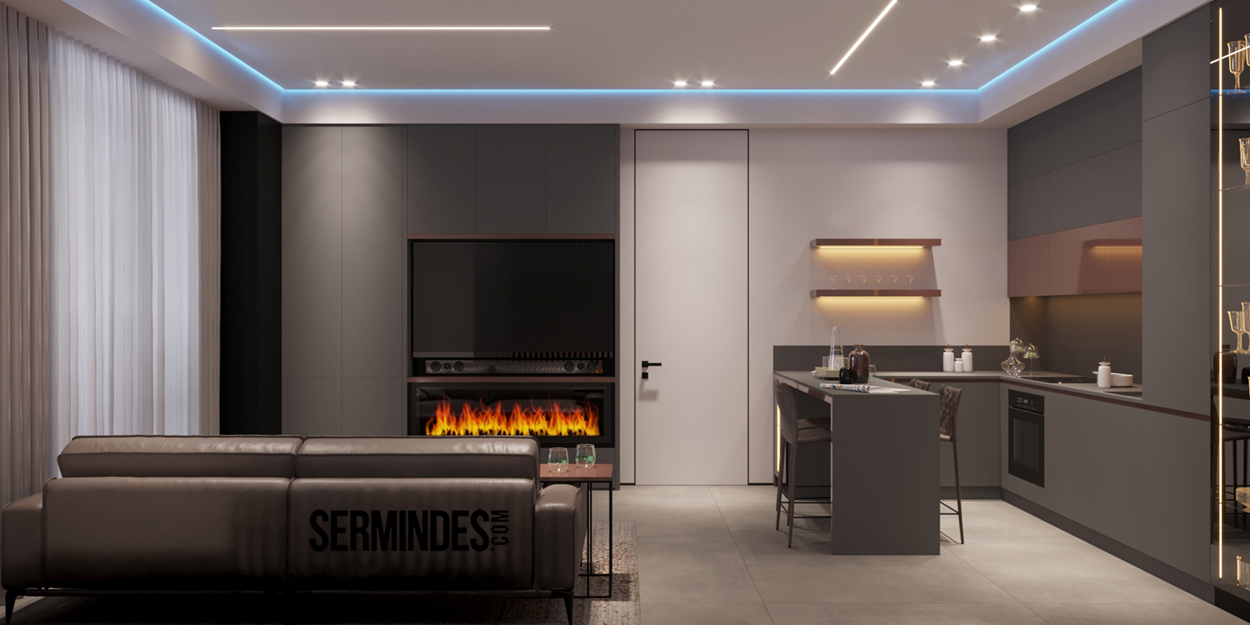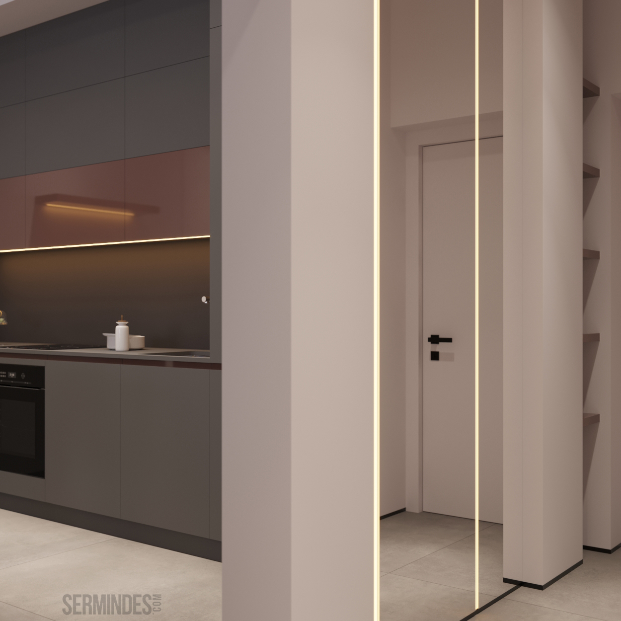 Комплексный дизайн интерьера Оазис. Внутренняя планировка квартиры площадью 71 м.кв. Дизайн интерьера выполнен в стиле модерн-минимализм, монохромная цветовая граница и контраст.