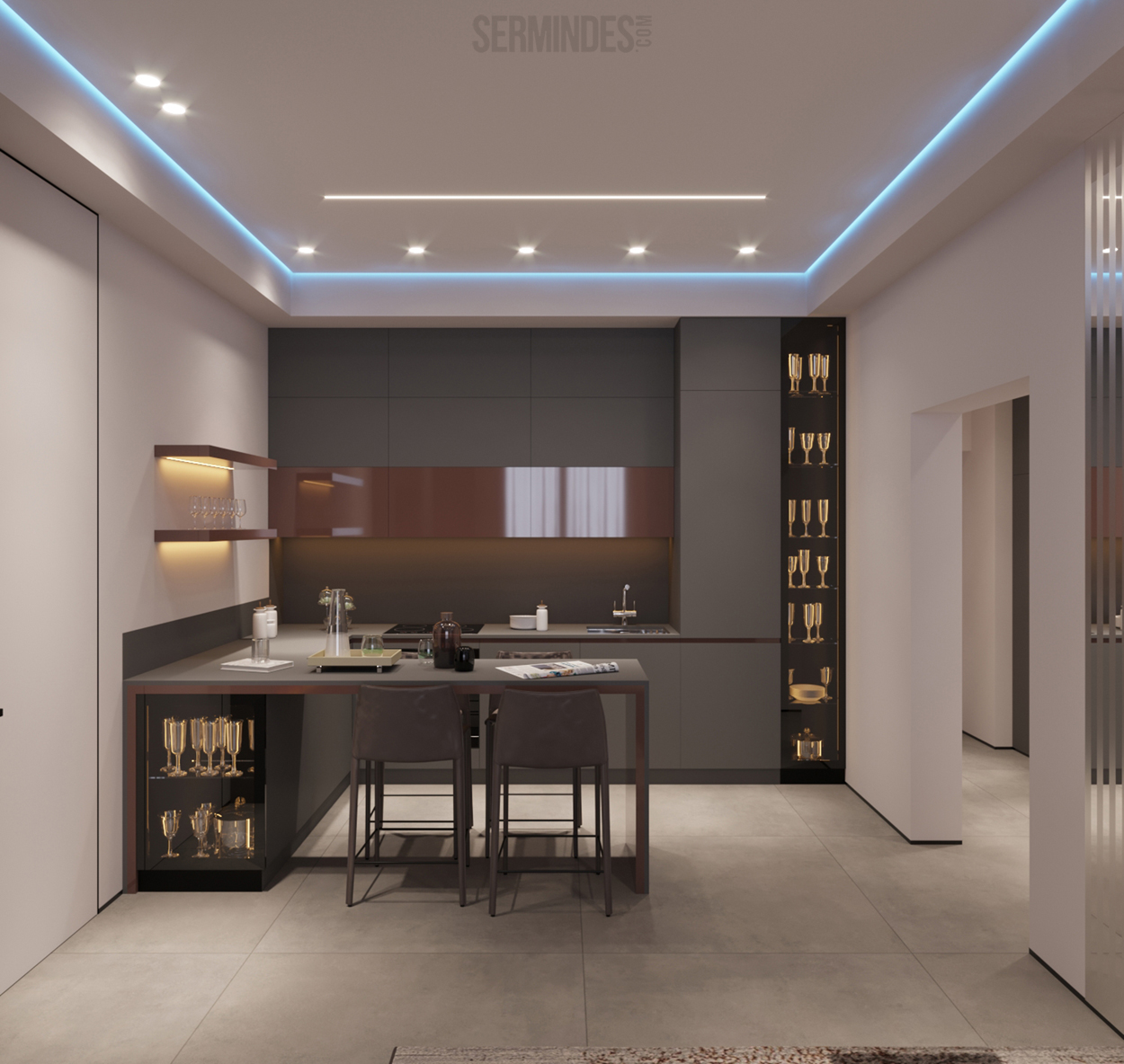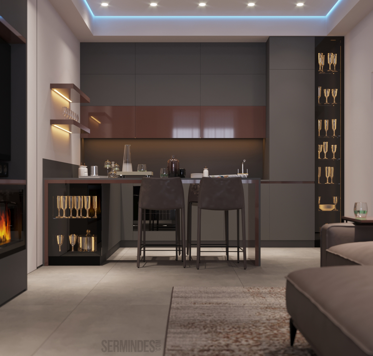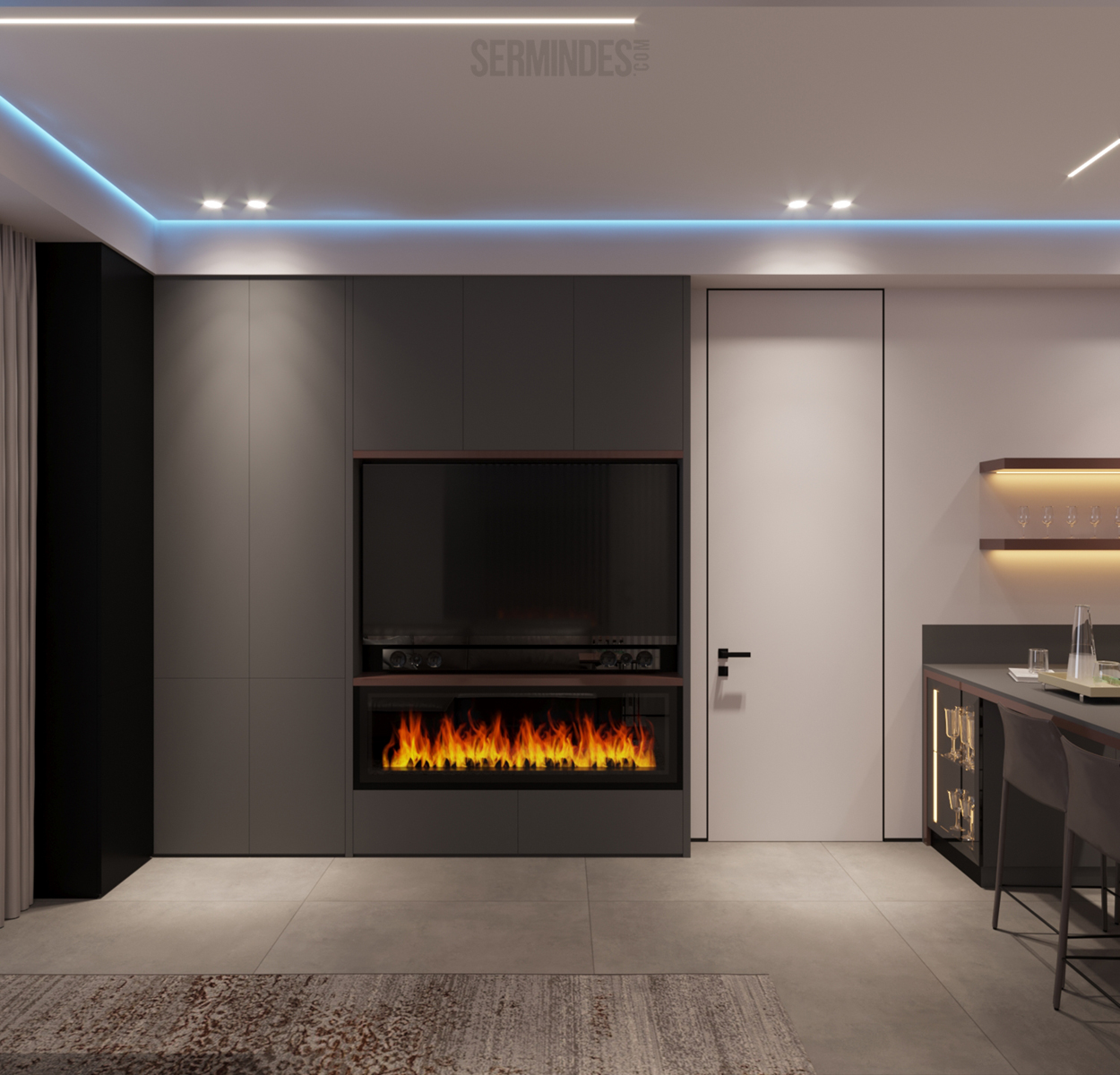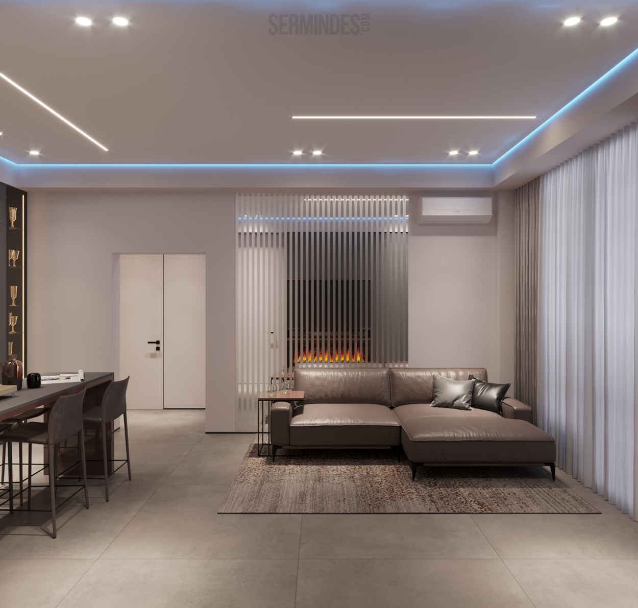 Комплексный дизайн интерьера Оазис. Внутренняя планировка квартиры площадью 71 м.кв. Дизайн интерьера выполнен в стиле модерн-минимализм, монохромная цветовая граница и контраст.