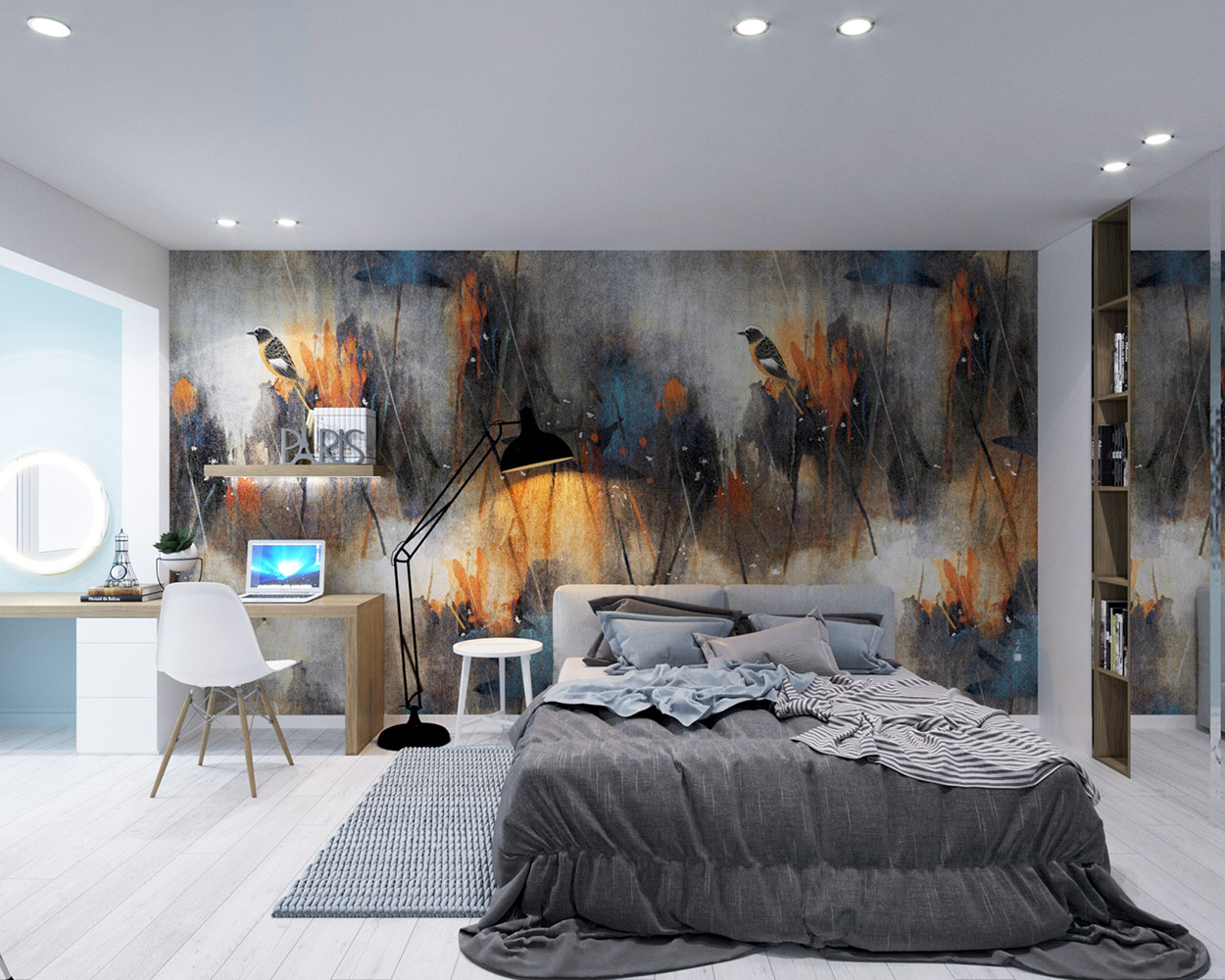 В идеале в минималистических проектах, цвет стен — белый. Однако посдение тенденции в дизайне интерьера позволяют их окрашивать в пастельные тона, сочетая с другим теплым цветом, но не более 2-х-3-х стен.