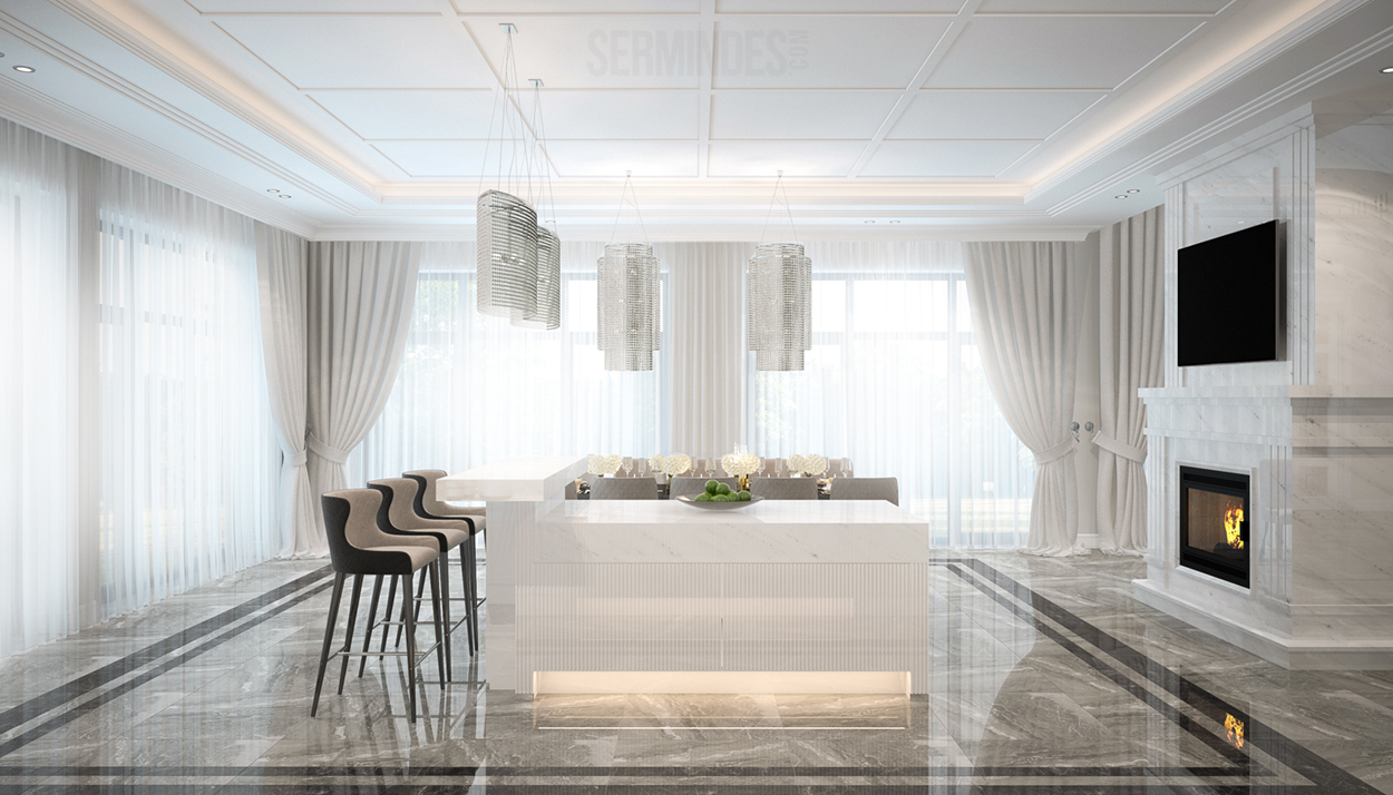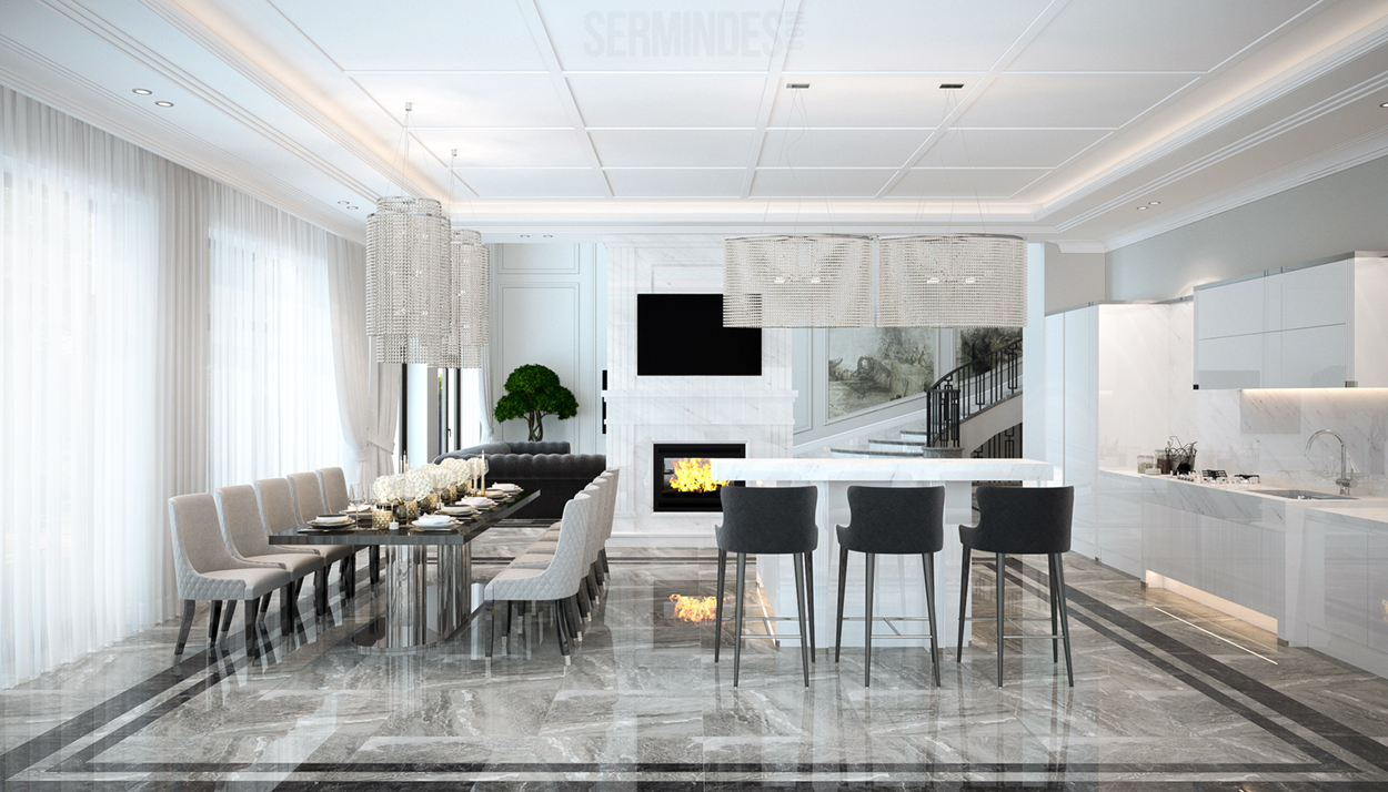 Дизайн интерьера жилой виллы площадью более 1000м. Вилла расположена недалеко от города Москва, Россия.